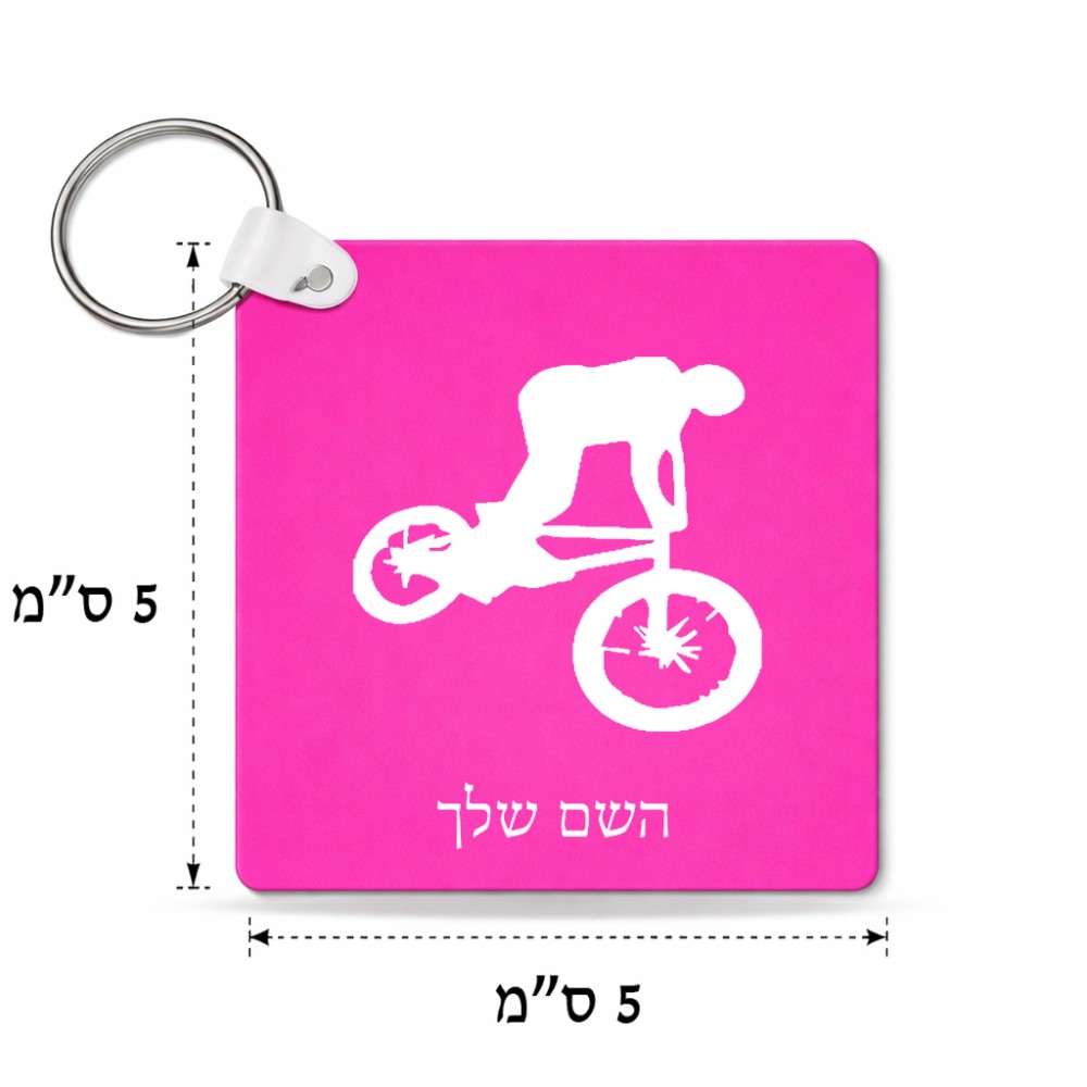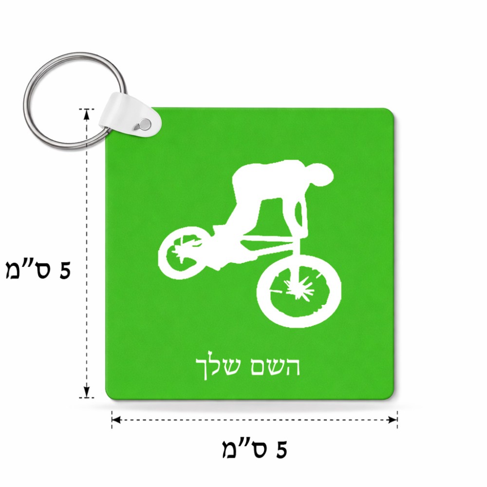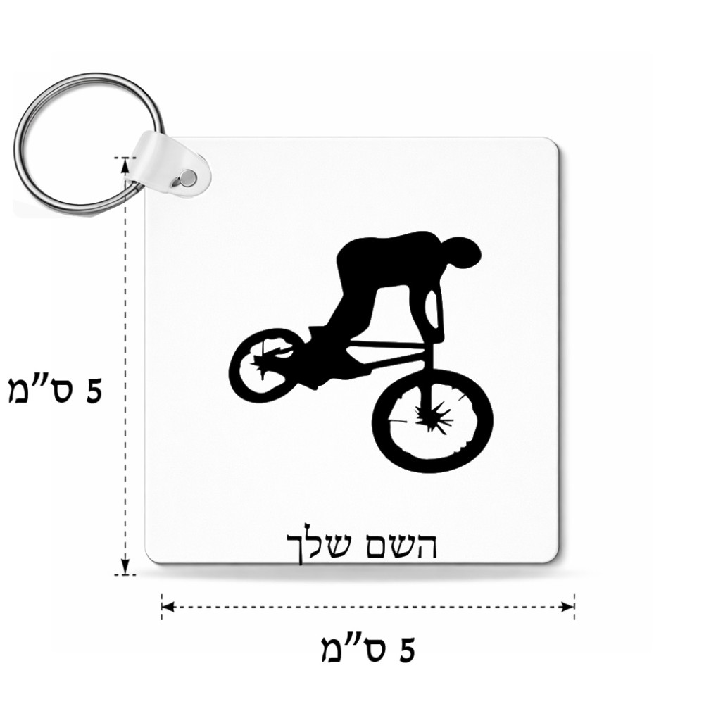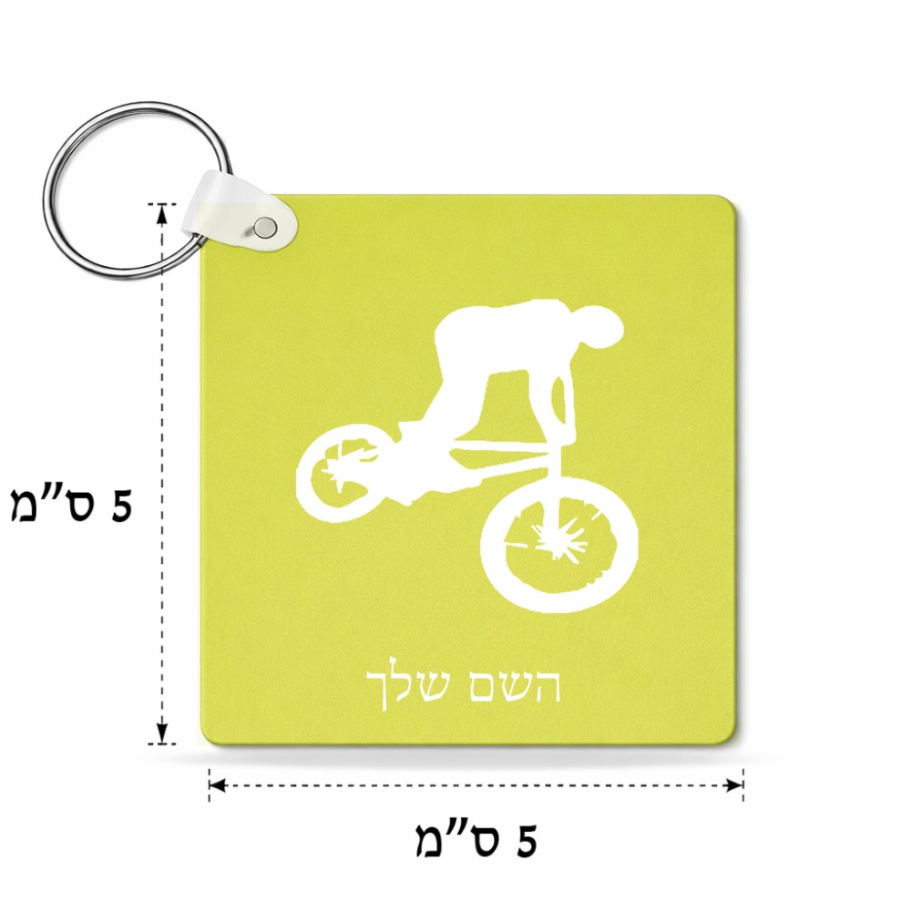 מחזיק מפתחות בצורת ריבוע בעיצוב אישי עם השם שלך בעיצוב רוכב אופניים גודל המחזיק 5 × 5 ס"מ. את השם המבוקש ניתן לציין בהזמנה, אם לא צויין אנחנו ניצור קשר לבירור.