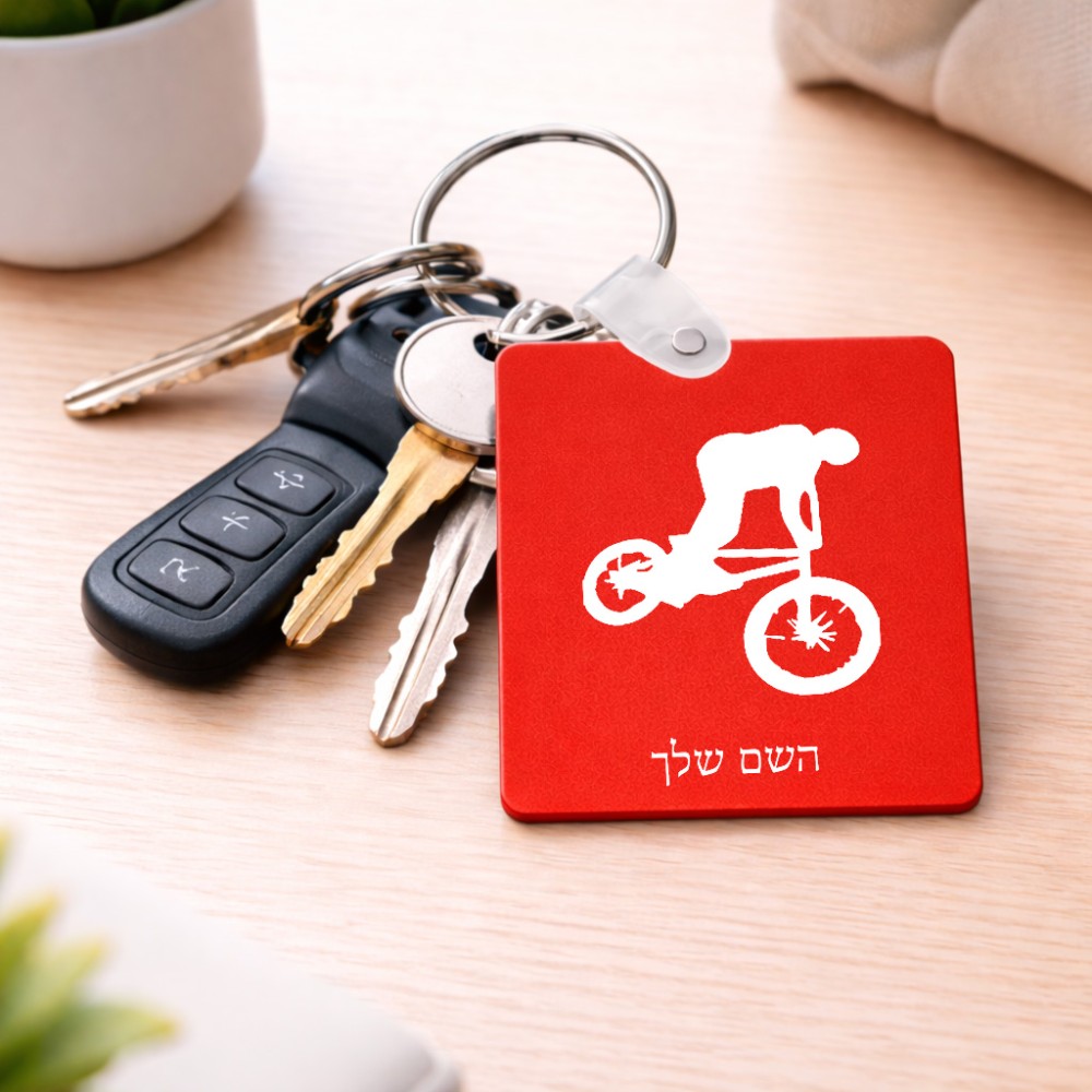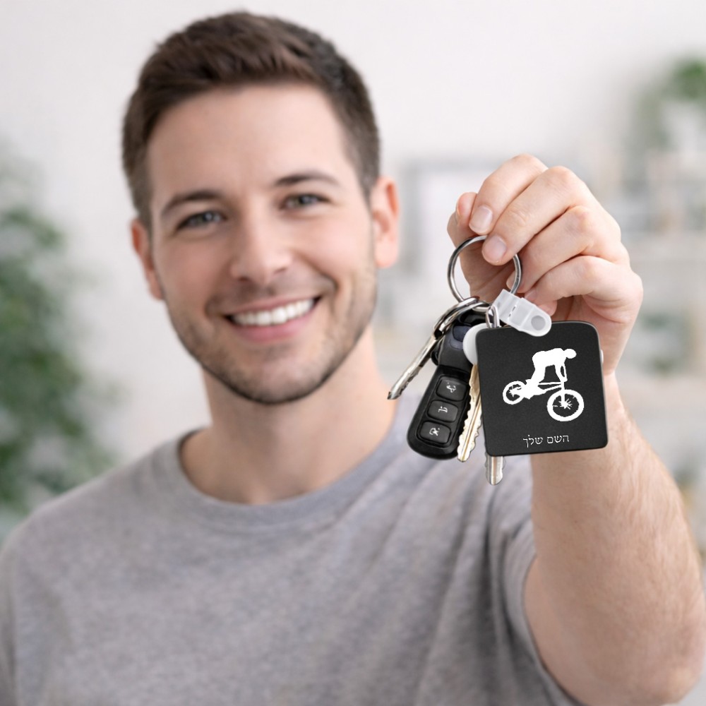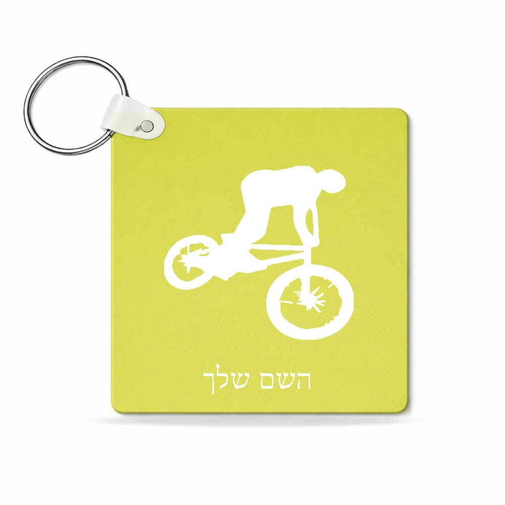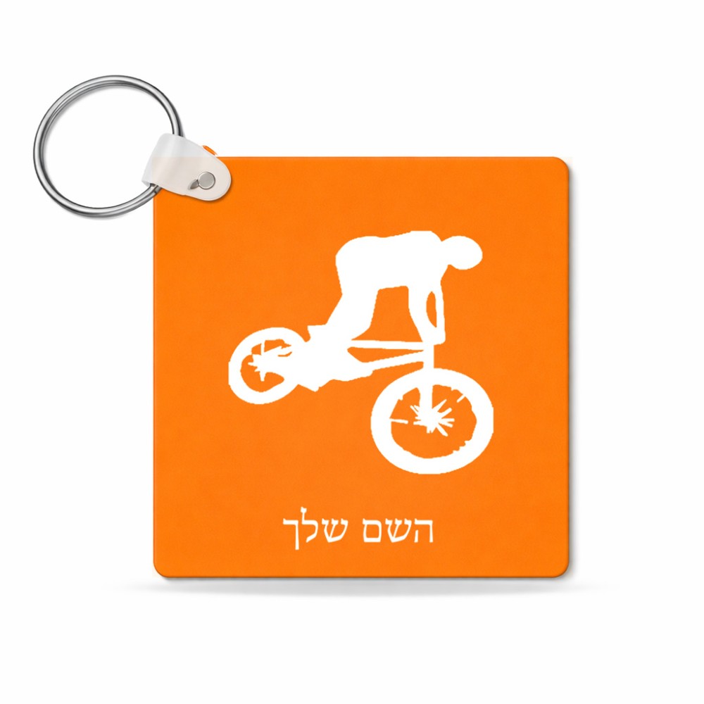 מחזיק מפתחות בצורת ריבוע בעיצוב אישי עם השם שלך בעיצוב רוכב אופניים גודל המחזיק 5 × 5 ס"מ. את השם המבוקש ניתן לציין בהזמנה, אם לא צויין אנחנו ניצור קשר לבירור.