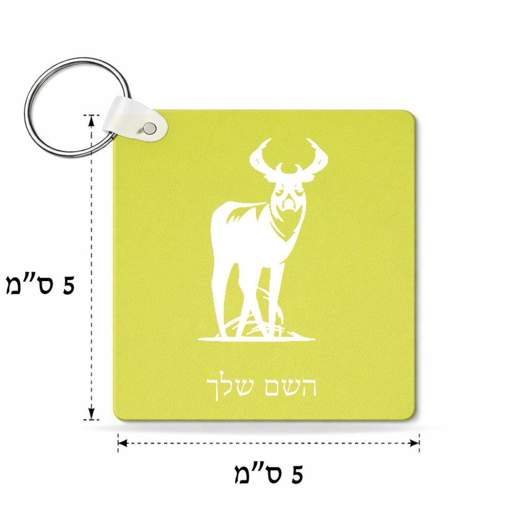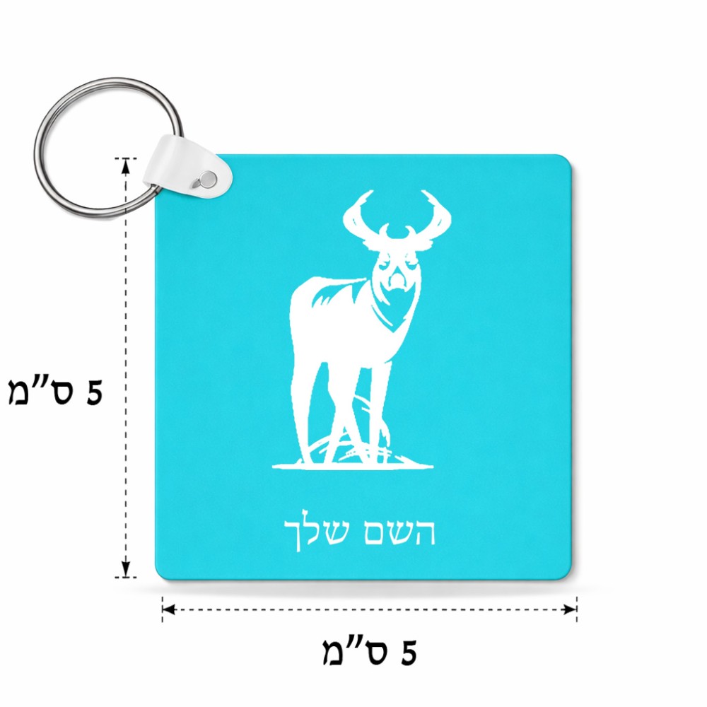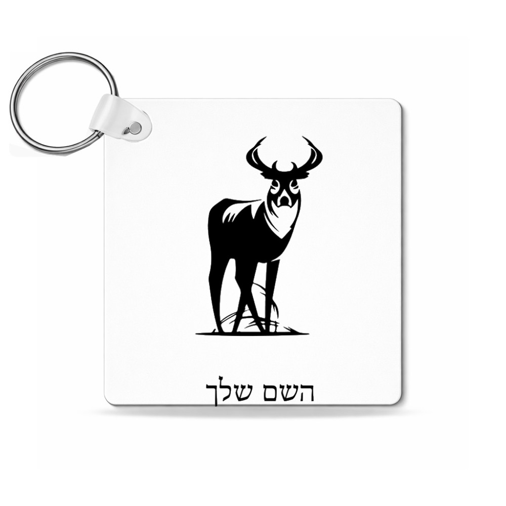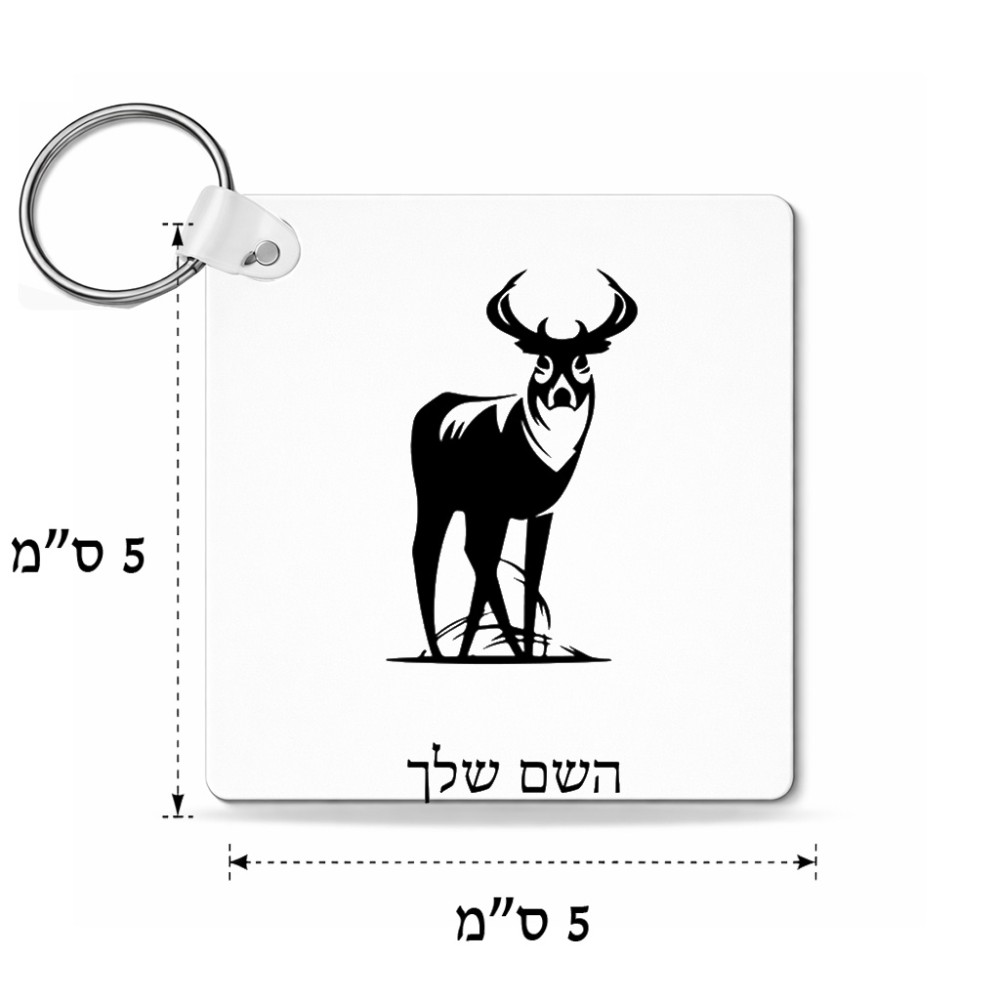 מחזיק מפתחות בצורת ריבוע בעיצוב אישי עם השם שלך בעיצוב צבי גודל המחזיק 5 × 5 ס"מ. את השם המבוקש ניתן לציין בהזמנה, אם לא צויין אנחנו ניצור קשר לבירור.