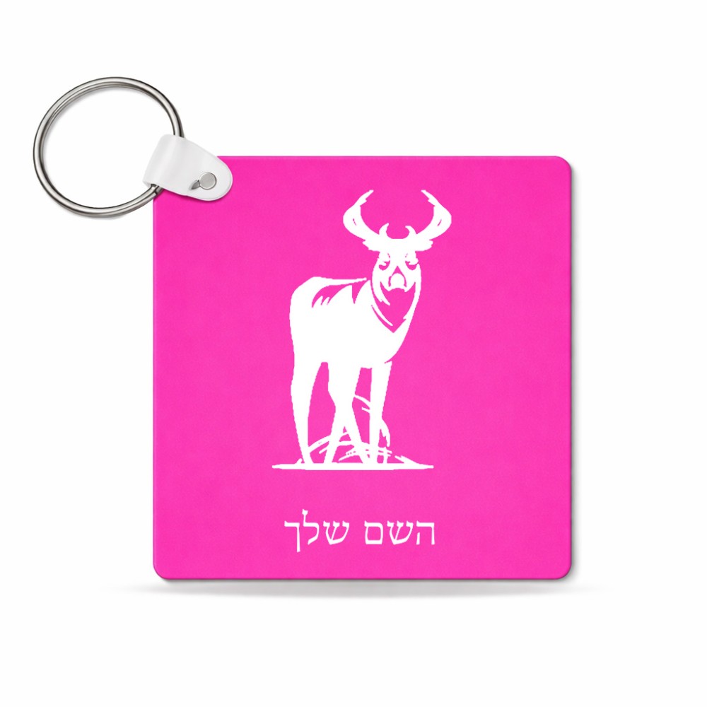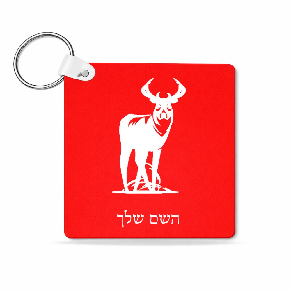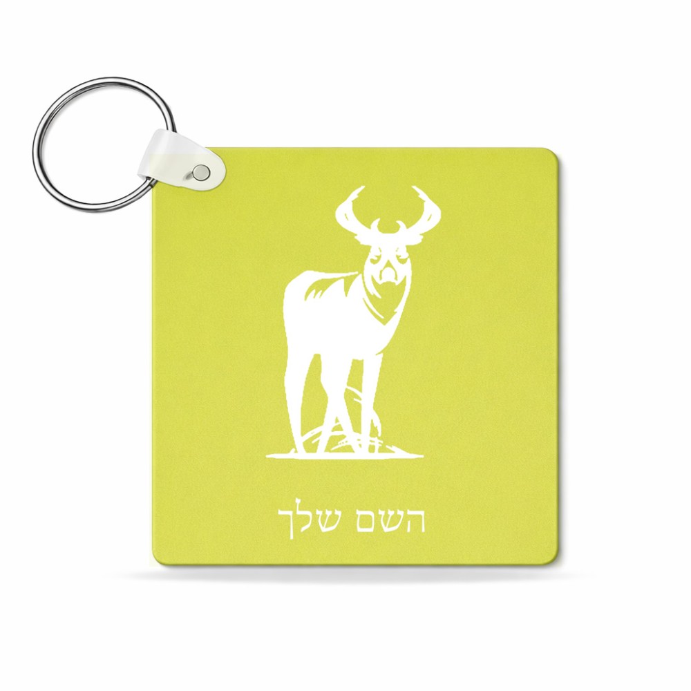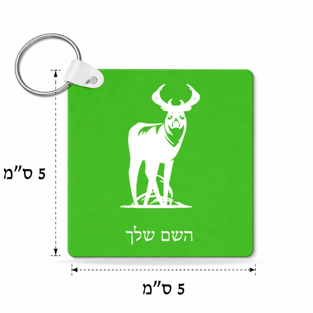 מחזיק מפתחות בצורת ריבוע בעיצוב אישי עם השם שלך בעיצוב צבי גודל המחזיק 5 × 5 ס"מ. את השם המבוקש ניתן לציין בהזמנה, אם לא צויין אנחנו ניצור קשר לבירור.