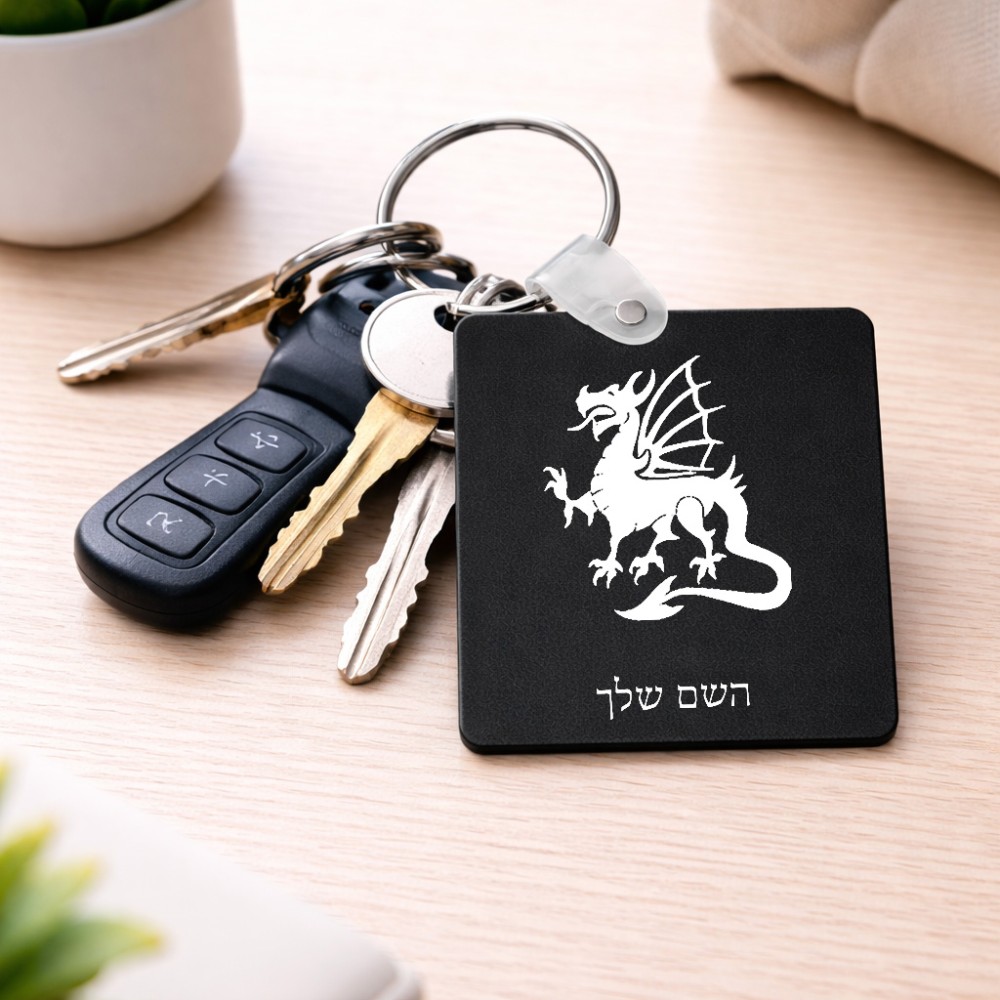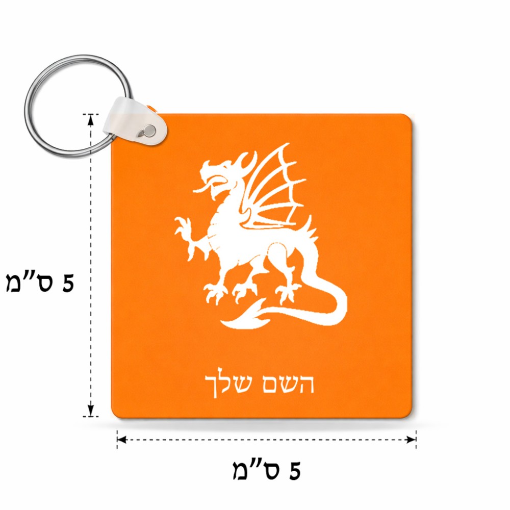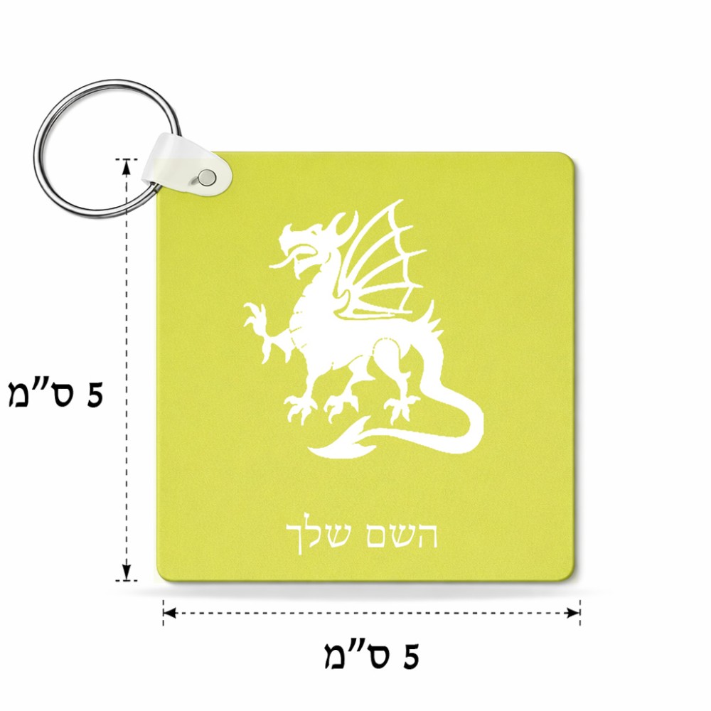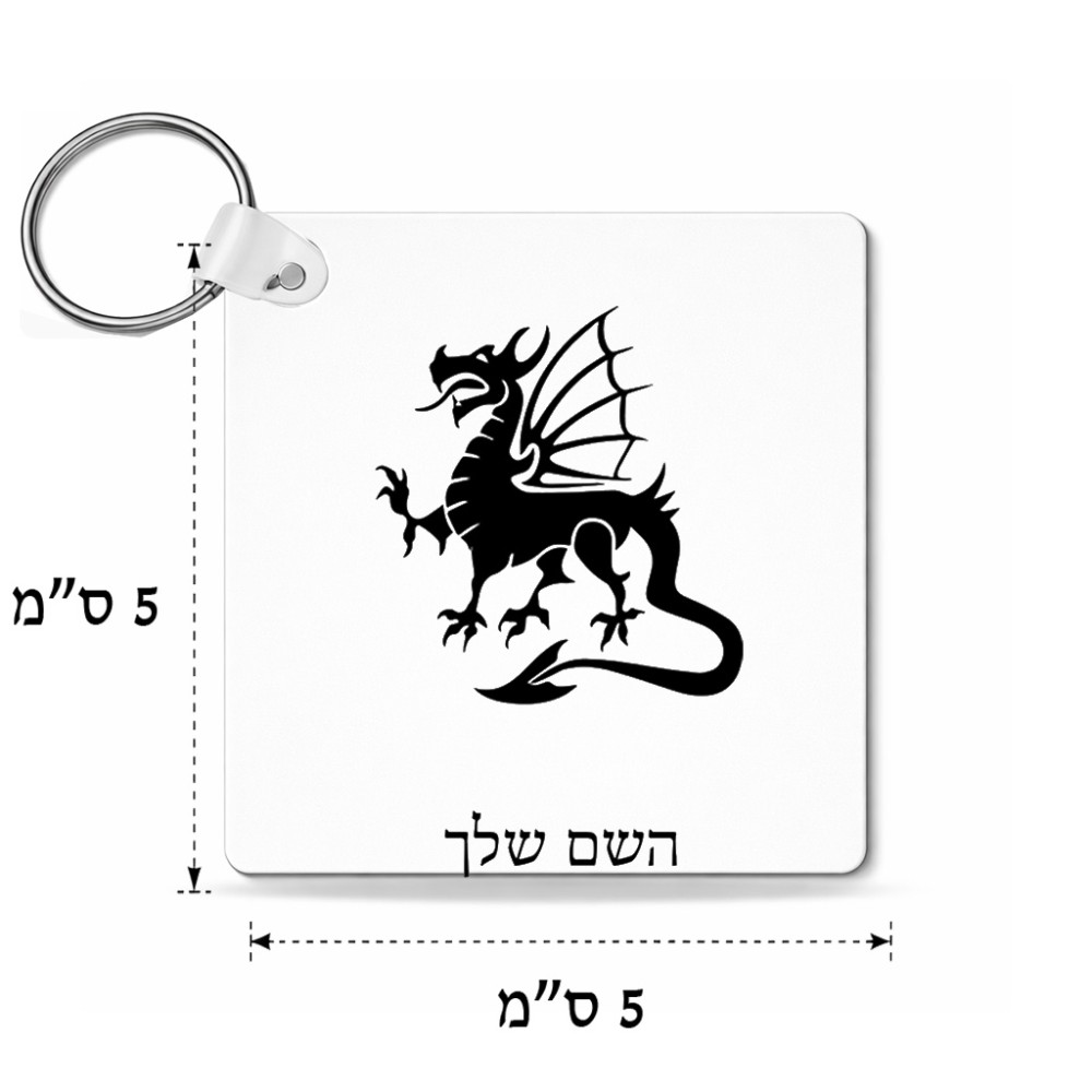 מחזיק מפתחות בצורת ריבוע בעיצוב אישי עם השם שלך בעיצוב דרקון גודל המחזיק 5 × 5 ס"מ. את השם המבוקש ניתן לציין בהזמנה, אם לא צויין אנחנו ניצור קשר לבירור.
