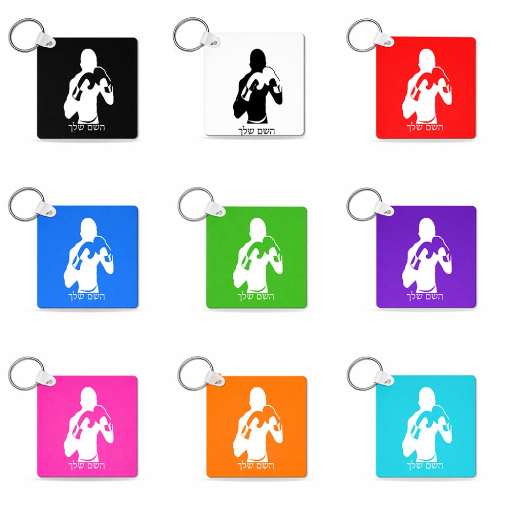 מחזיק מפתחות בצורת ריבוע בעיצוב אישי עם השם שלך בעיצוב אגרוף גודל המחזיק 5 × 5 ס"מ