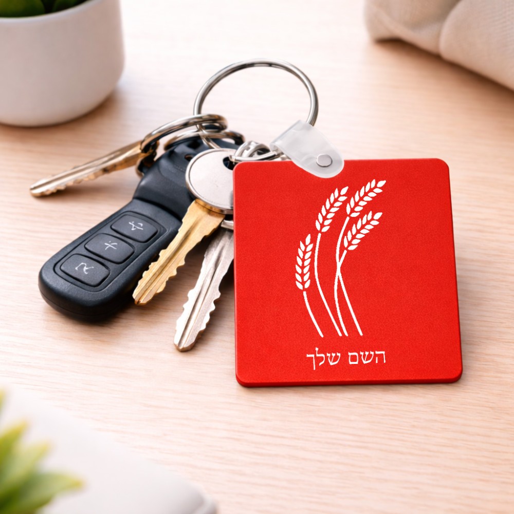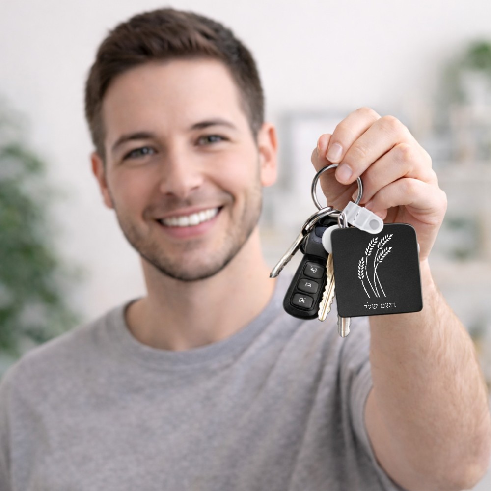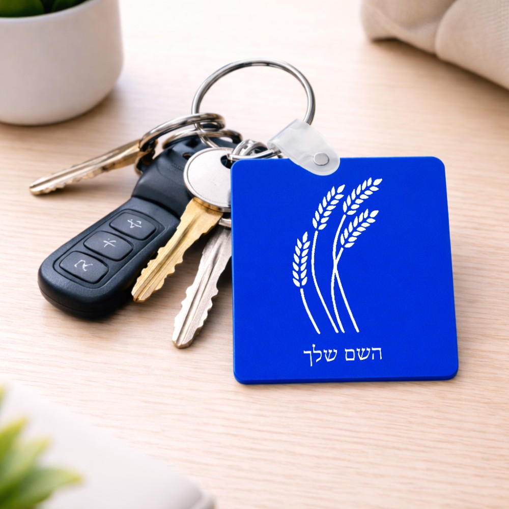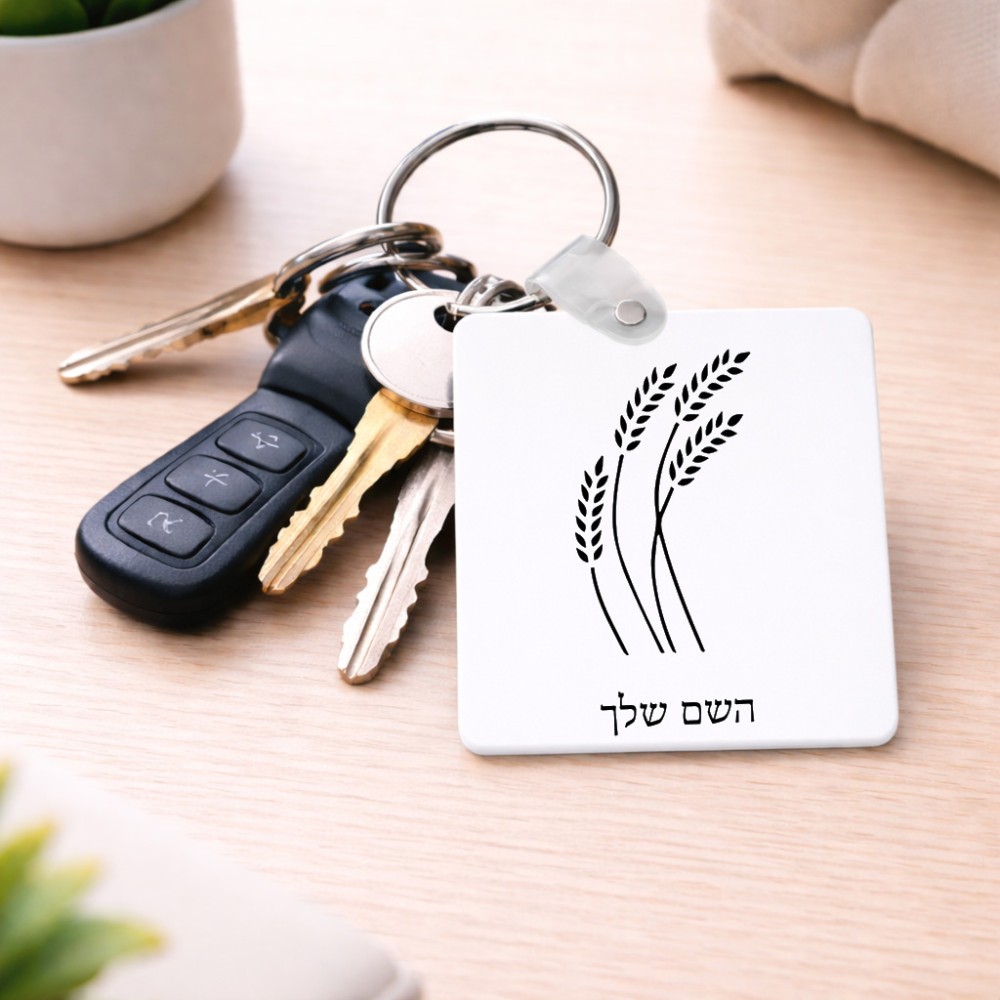 מחזיק מפתחות בצורת ריבוע בעיצוב אישי עם השם שלך בעיצוב חיטה גלית זהב גודל המחזיק 5 × 5 ס"מ. את השם המבוקש ניתן לציין בהזמנה, אם לא צויין אנחנו ניצור קשר לבירור.