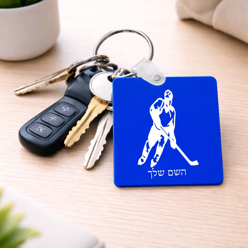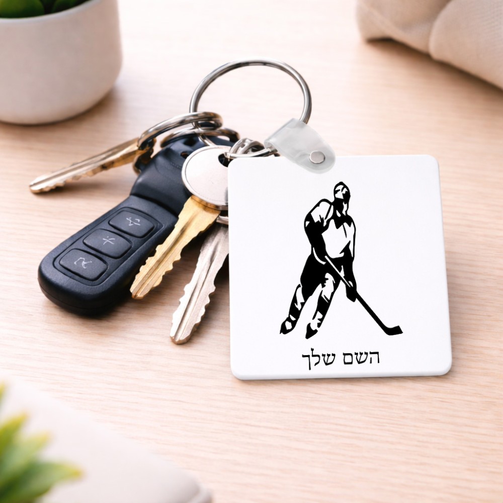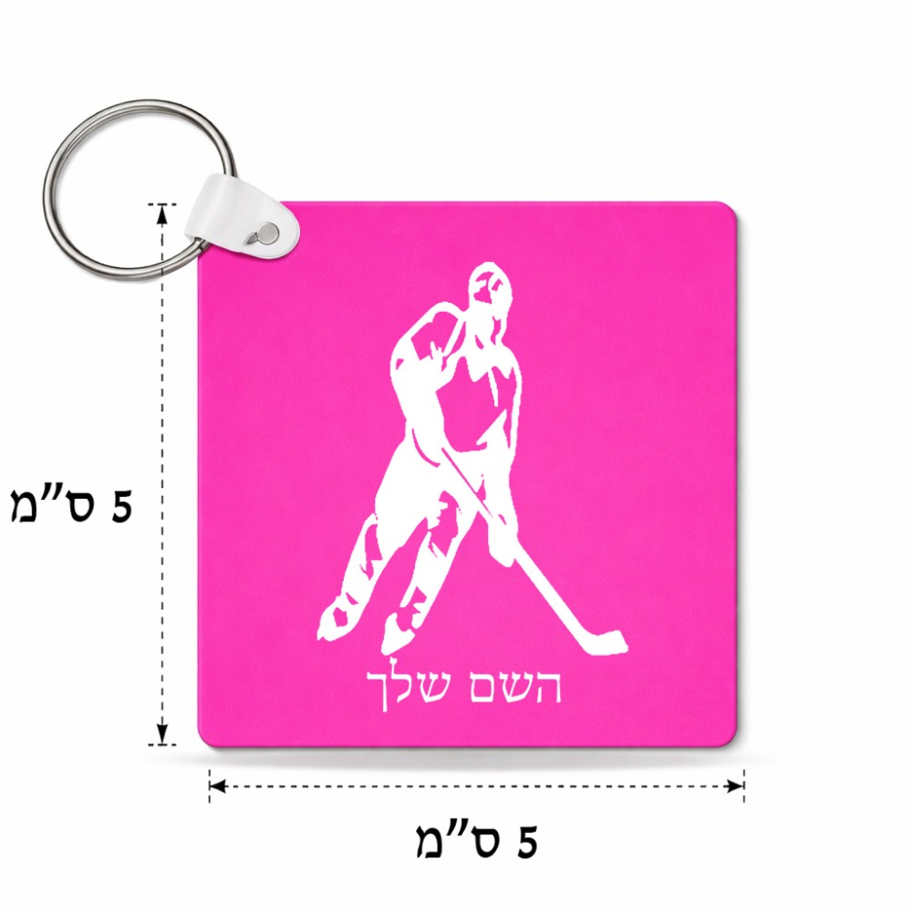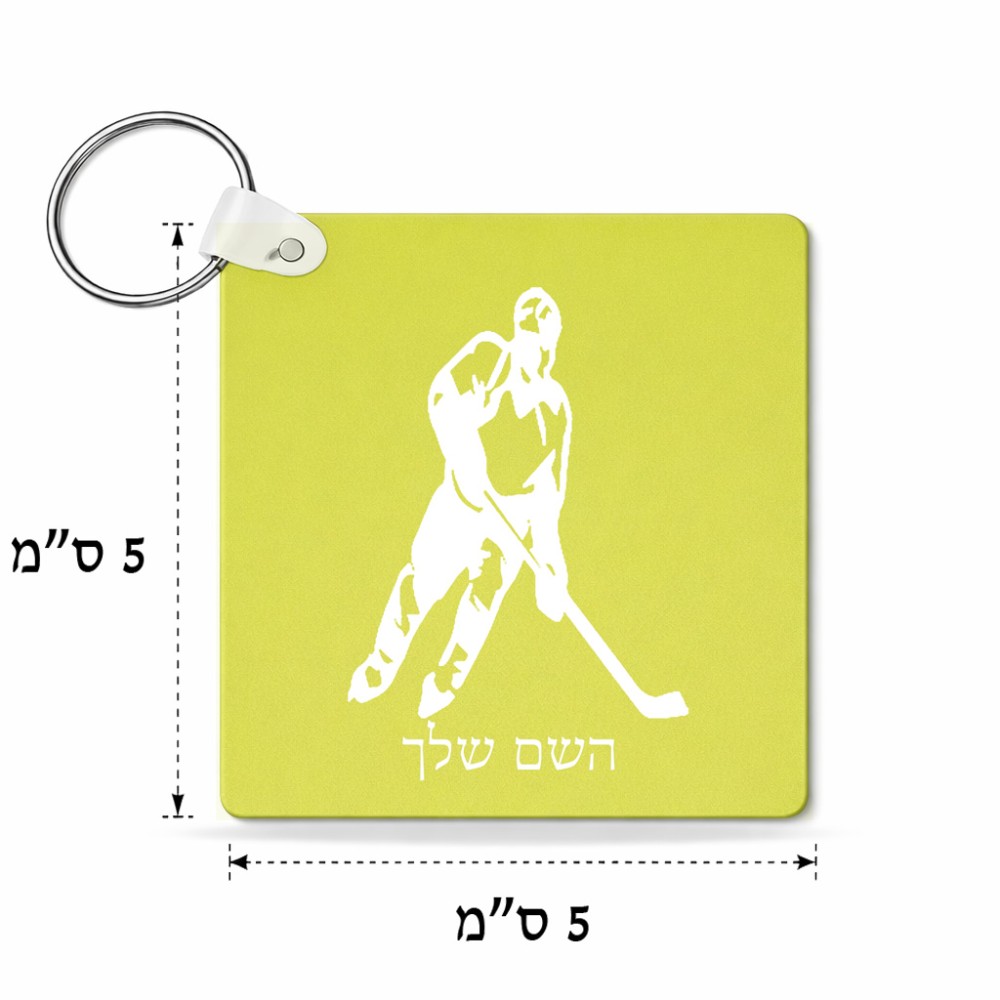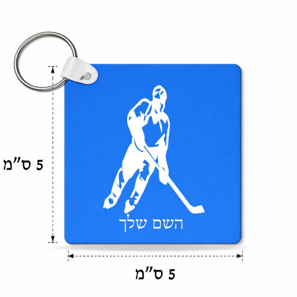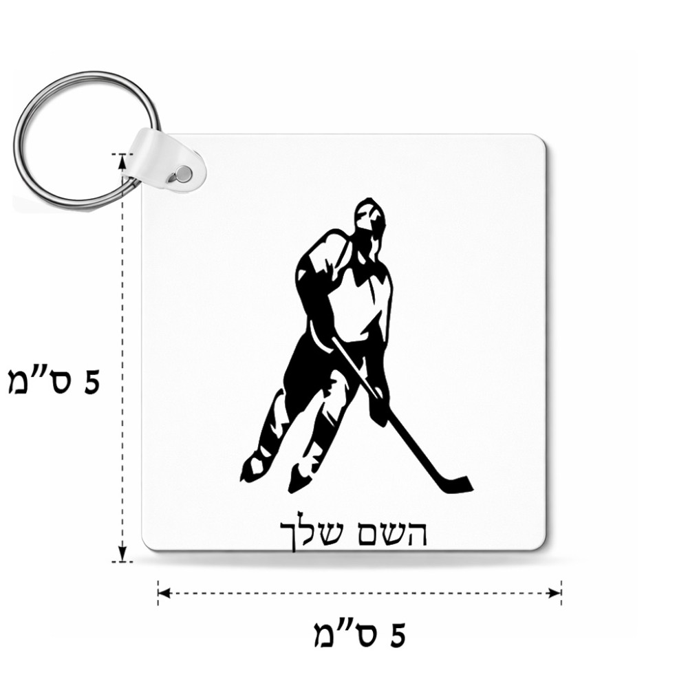 מחזיק מפתחות בצורת ריבוע בעיצוב אישי עם השם שלך בעיצוב שחקן הוקי גודל המחזיק 5 × 5 ס"מ. את השם המבוקש ניתן לציין בהזמנה, אם לא צויין אנחנו ניצור קשר לבירור.