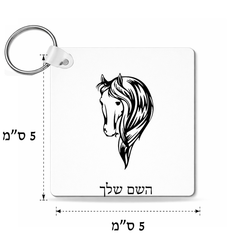 מחזיק מפתחות בצורת ריבוע בעיצוב אישי עם השם שלך בעיצוב ראש סוס גודל המחזיק 5 × 5 ס"מ. את השם המבוקש ניתן לציין בהזמנה, אם לא צויין אנחנו ניצור קשר לבירור.