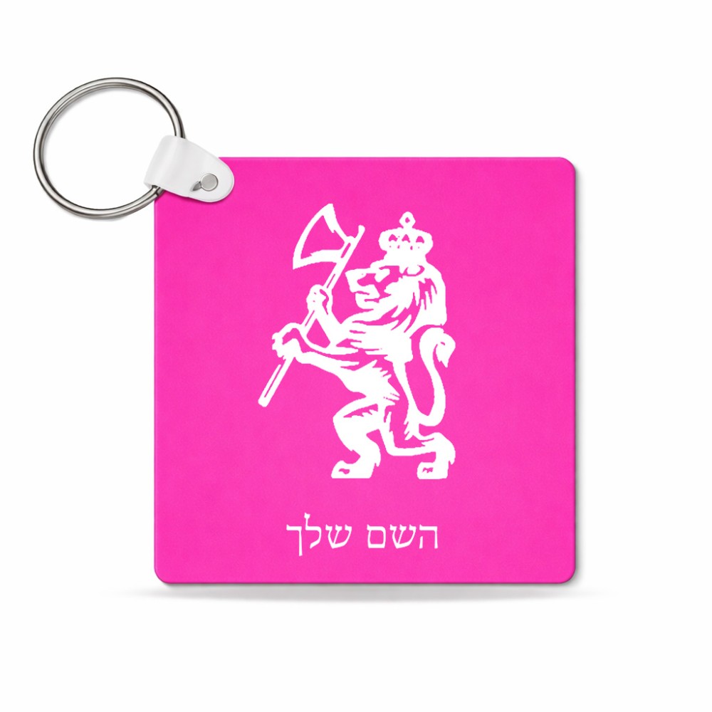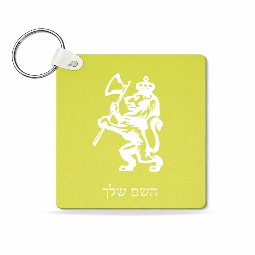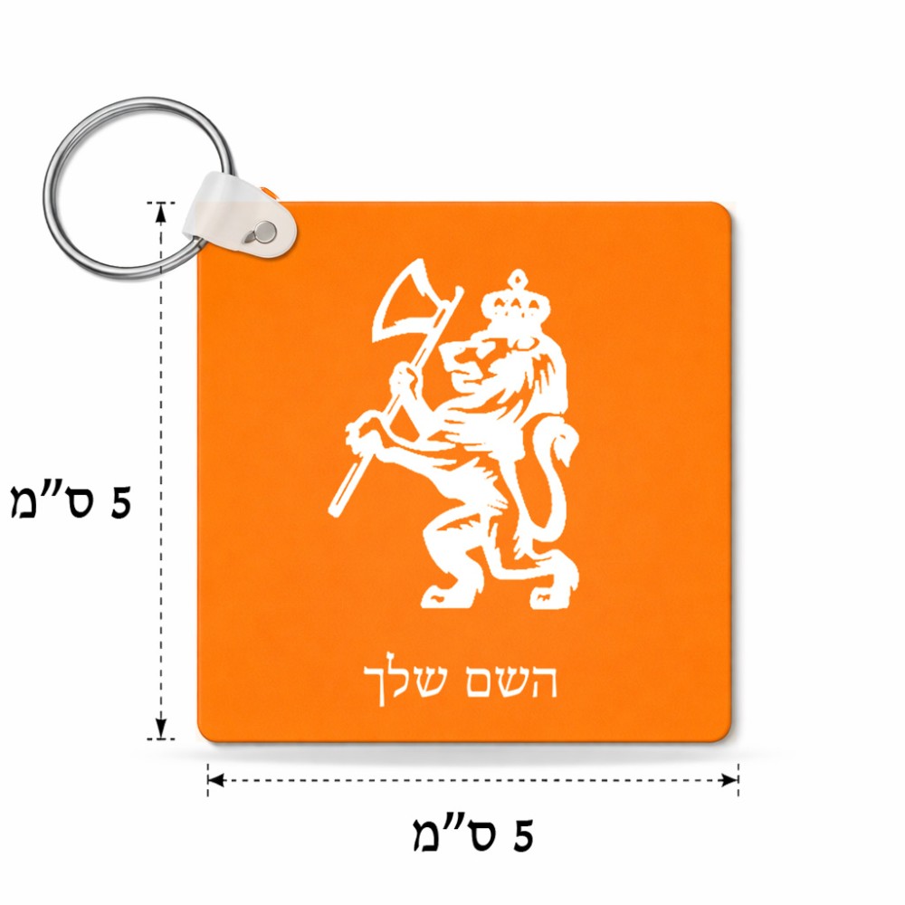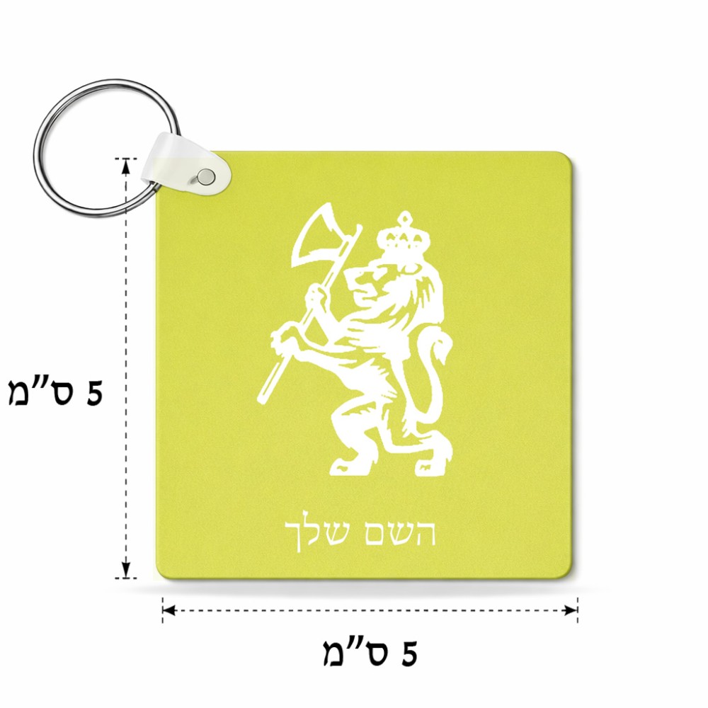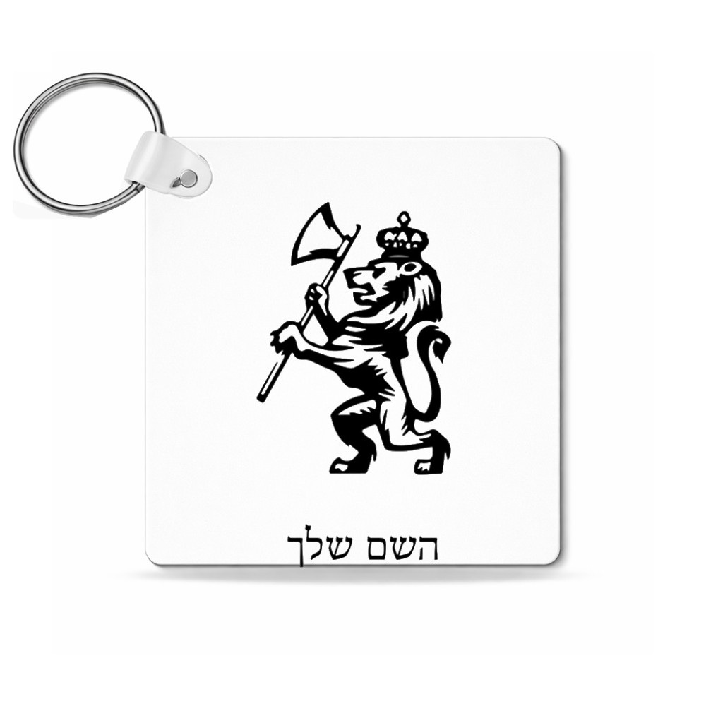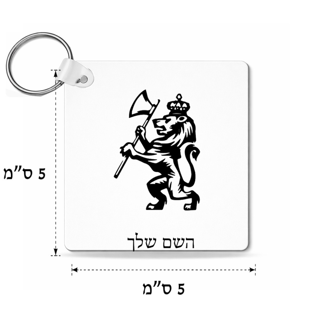 מחזיק מפתחות בצורת ריבוע בעיצוב אישי עם השם שלך בעיצוב אריה גודל המחזיק 5 × 5 ס"מ. את השם המבוקש ניתן לציין בהזמנה, אם לא צויין אנחנו ניצור קשר לבירור.