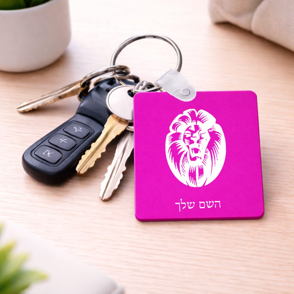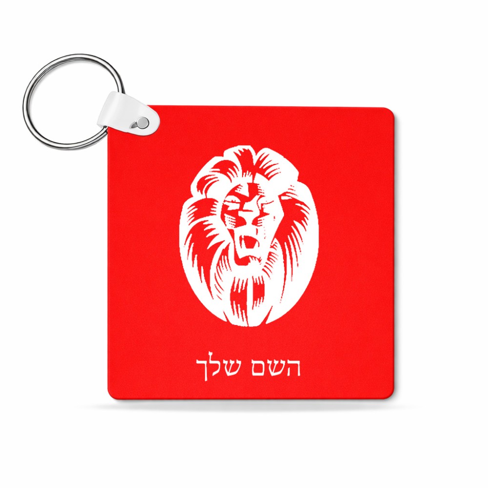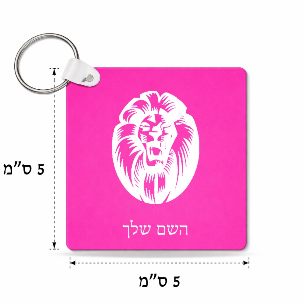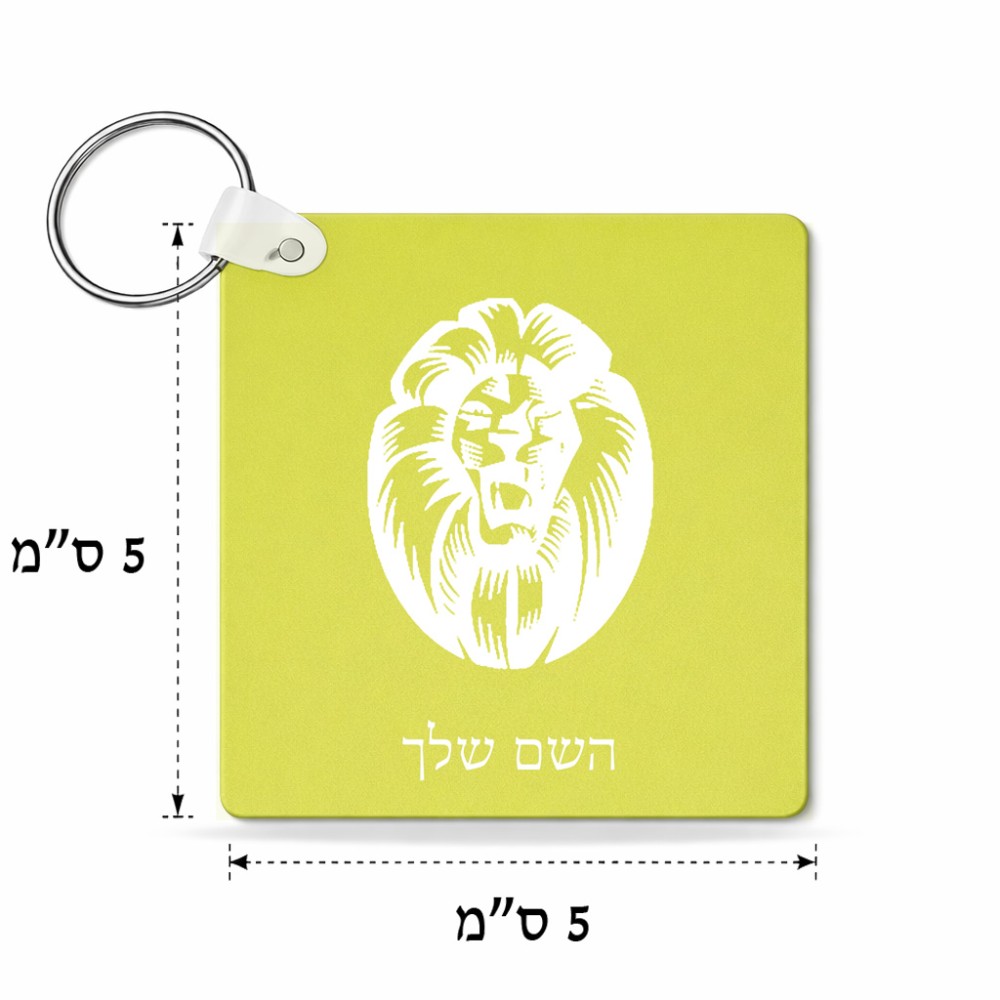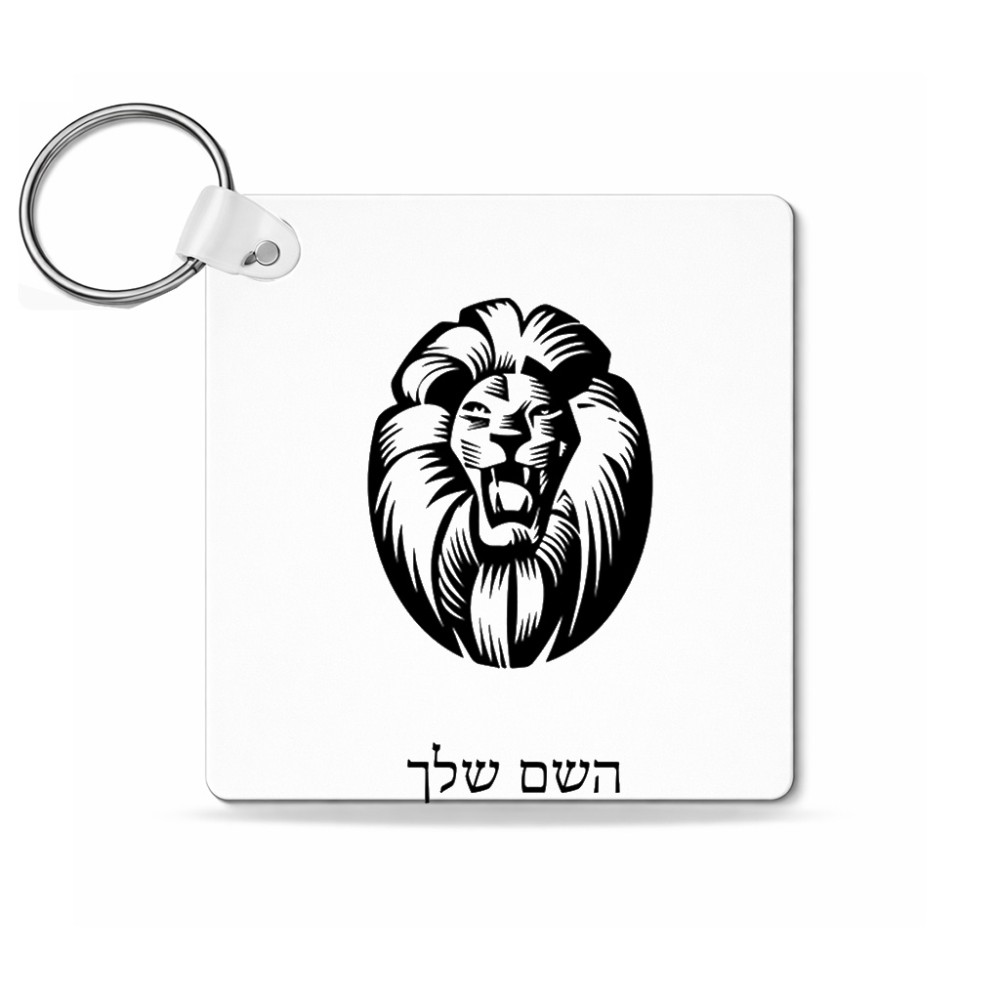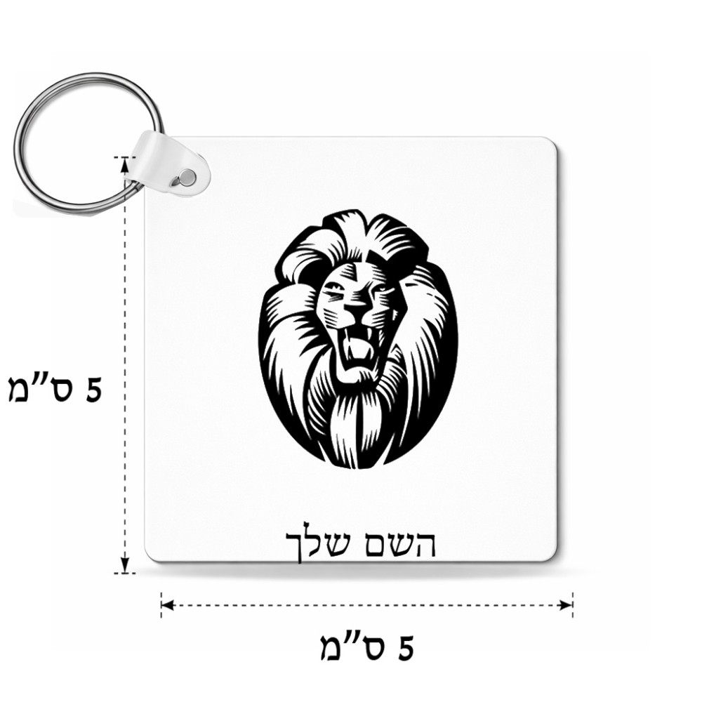 מחזיק מפתחות בצורת ריבוע בעיצוב אישי עם השם שלך בעיצוב פני אריה גודל המחזיק 5 × 5 ס"מ. את השם המבוקש ניתן לציין בהזמנה, אם לא צויין אנחנו ניצור קשר לבירור.