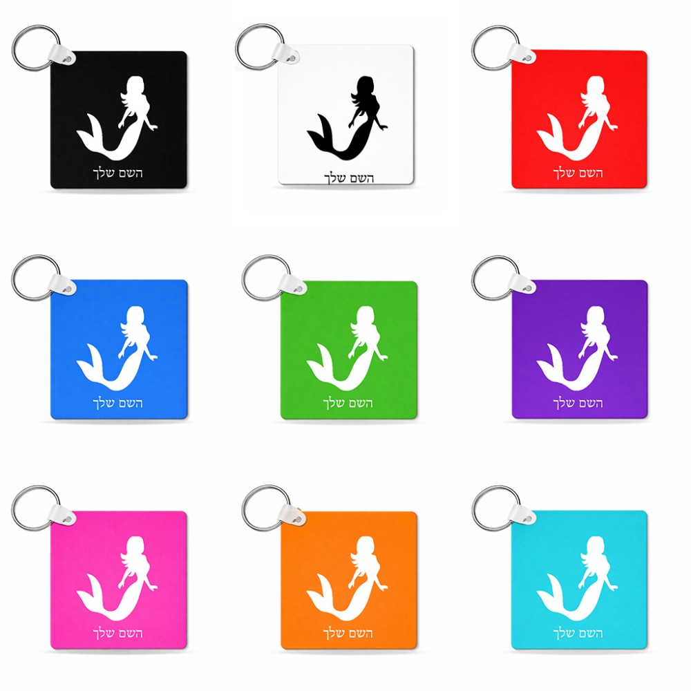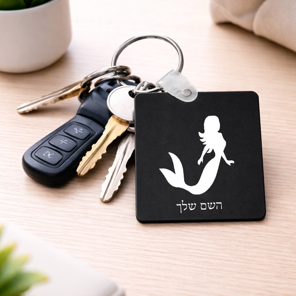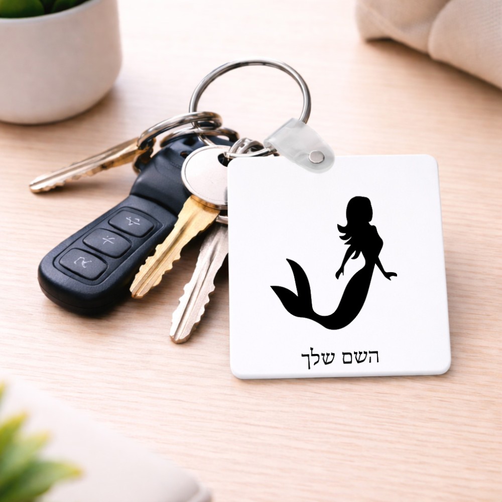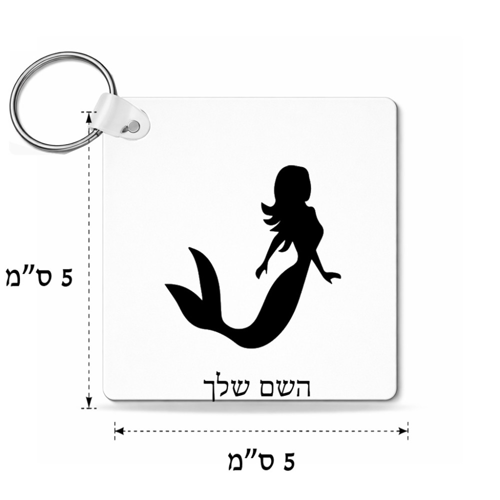 מחזיק מפתחות בצורת ריבוע בעיצוב אישי עם השם שלך בעיצוב בתולת ים - אישה גודל המחזיק 5 × 5 ס"מ. את השם המבוקש ניתן לציין בהזמנה, אם לא צויין אנחנו ניצור קשר לבירור.