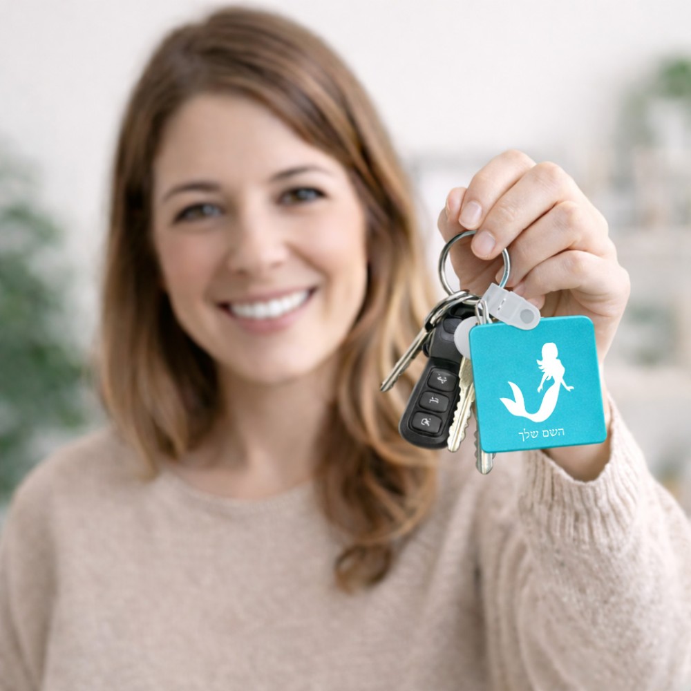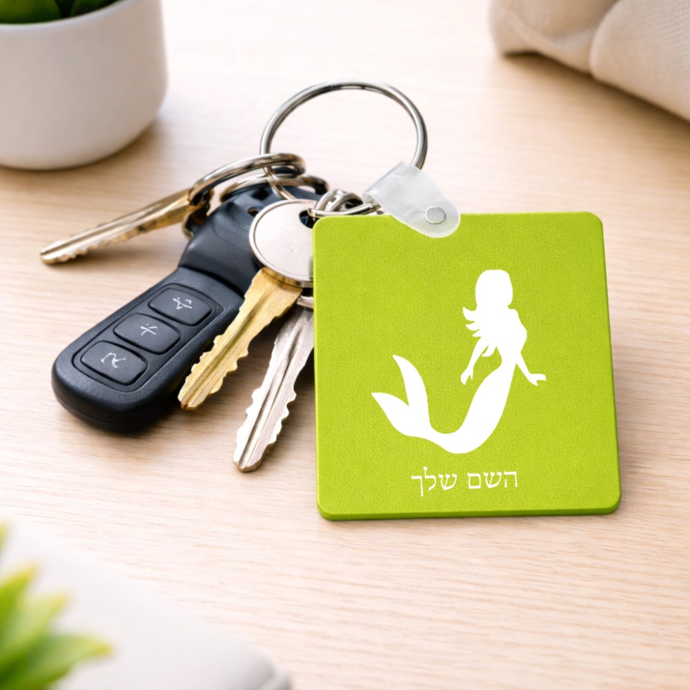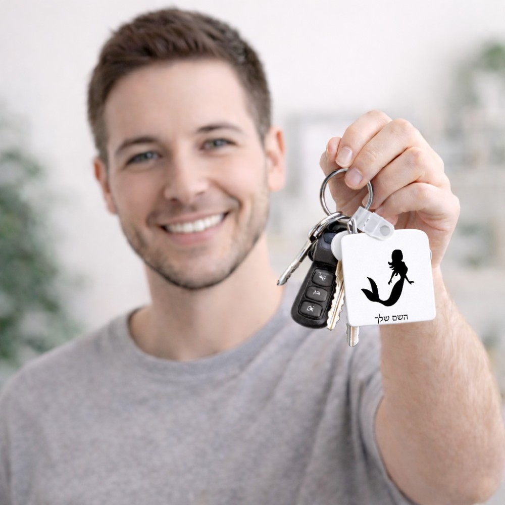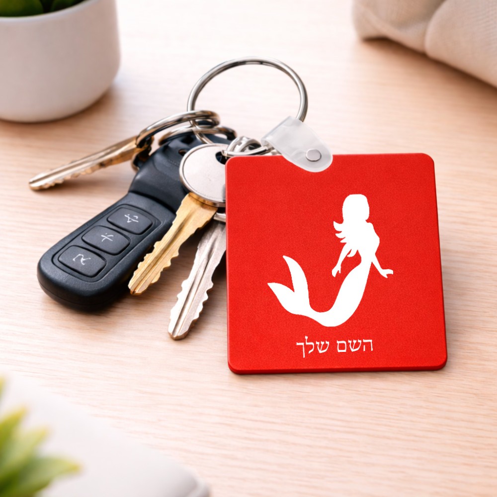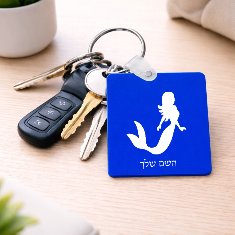מחזיק מפתחות בצורת ריבוע בעיצוב אישי עם השם שלך בעיצוב בתולת ים - אישה גודל המחזיק 5 × 5 ס"מ. את השם המבוקש ניתן לציין בהזמנה, אם לא צויין אנחנו ניצור קשר לבירור.