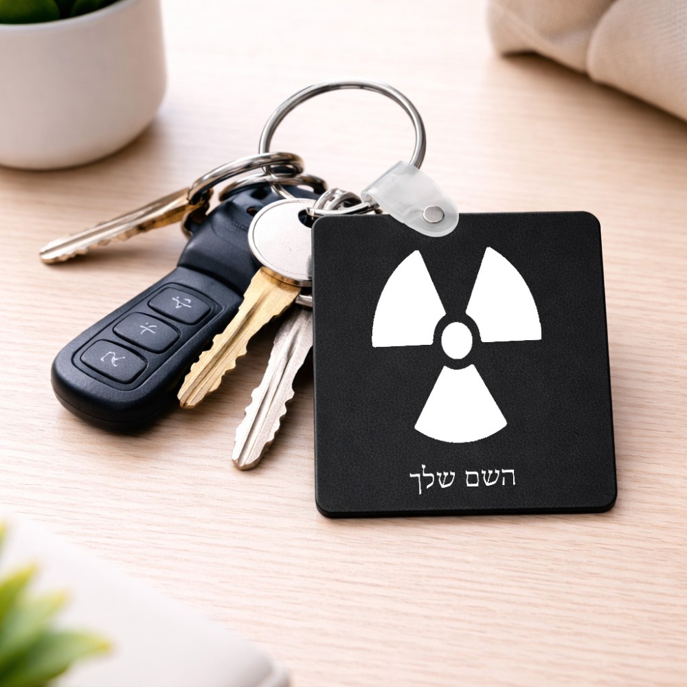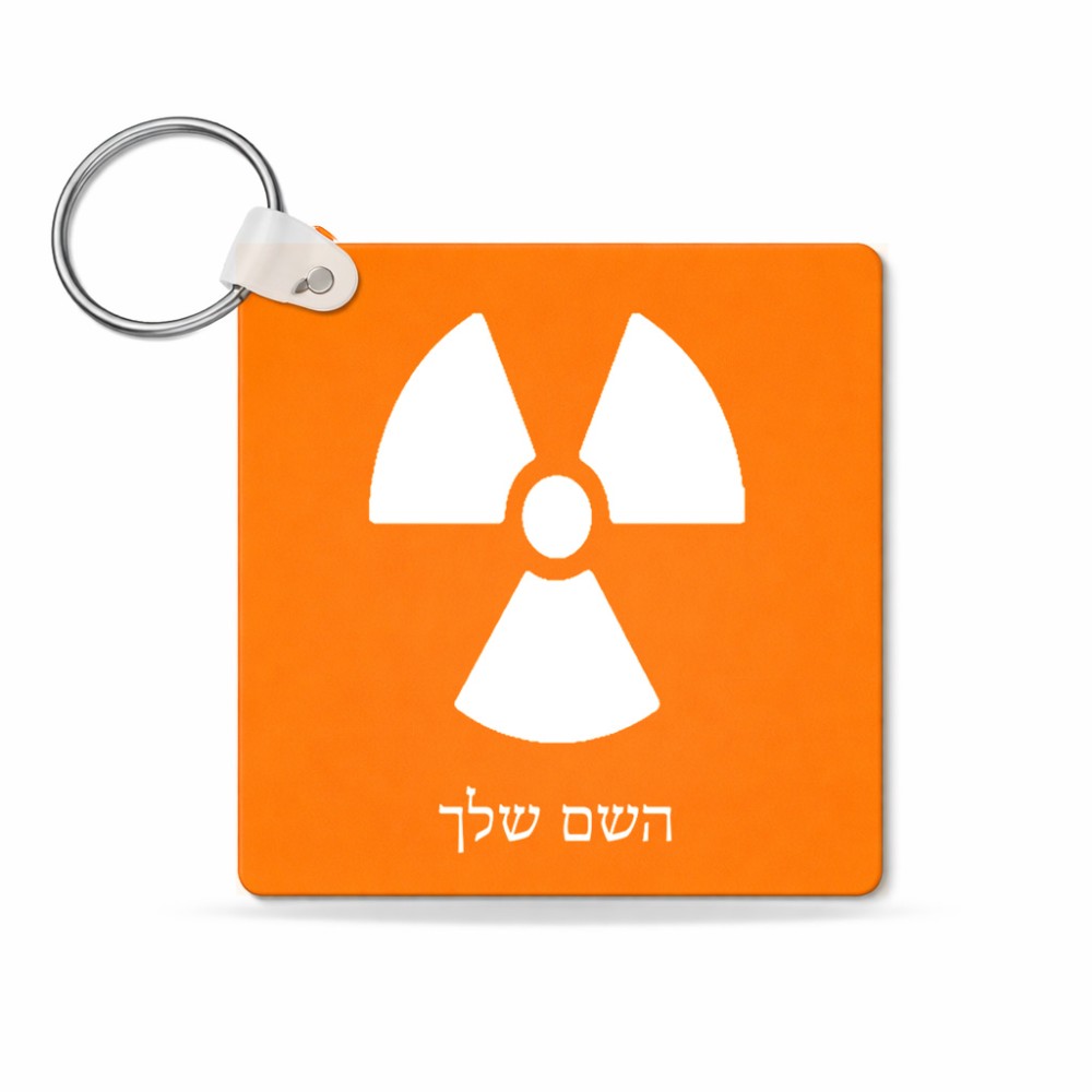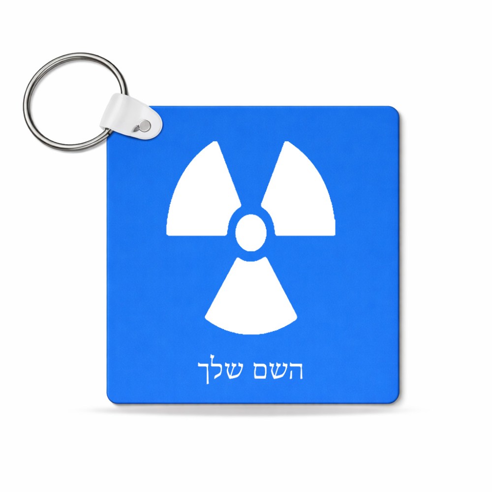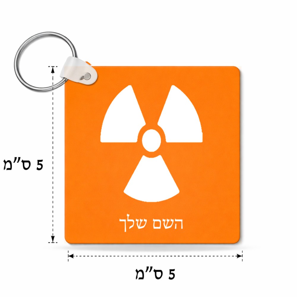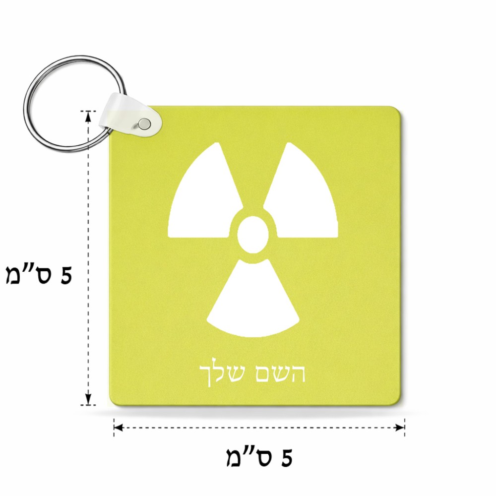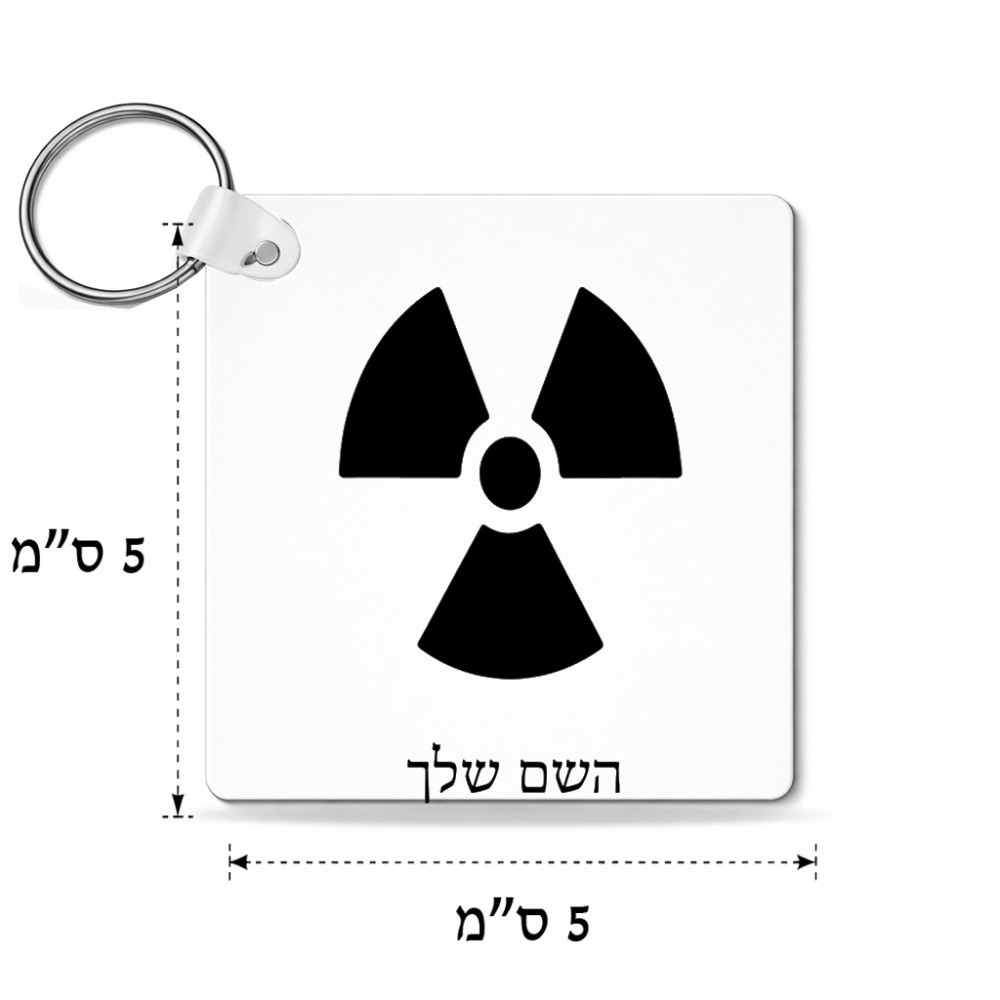 מחזיק מפתחות בצורת ריבוע בעיצוב אישי עם השם שלך בעיצוב פצצת אטום גרעינית גודל המחזיק 5 × 5 ס"מ. את השם המבוקש ניתן לציין בהזמנה, אם לא צויין אנחנו ניצור קשר לבירור.