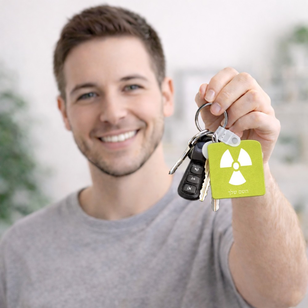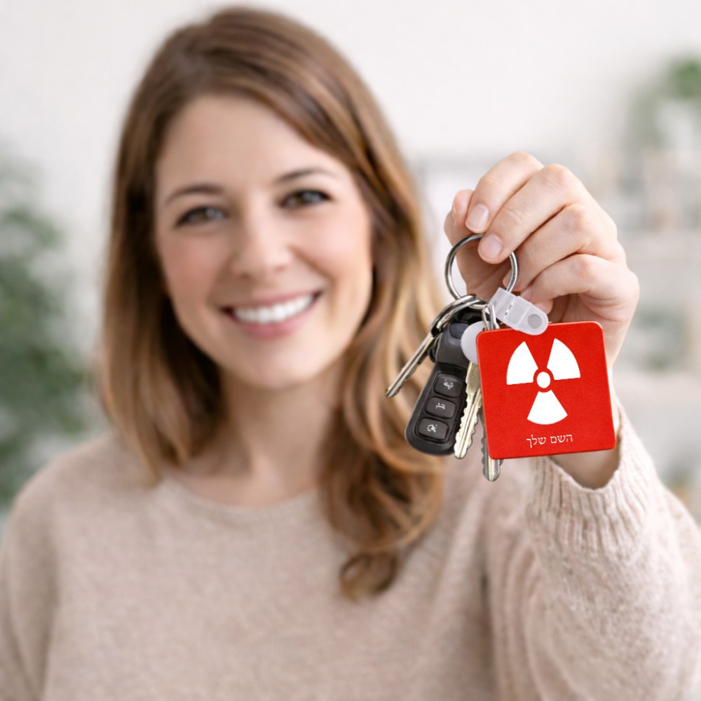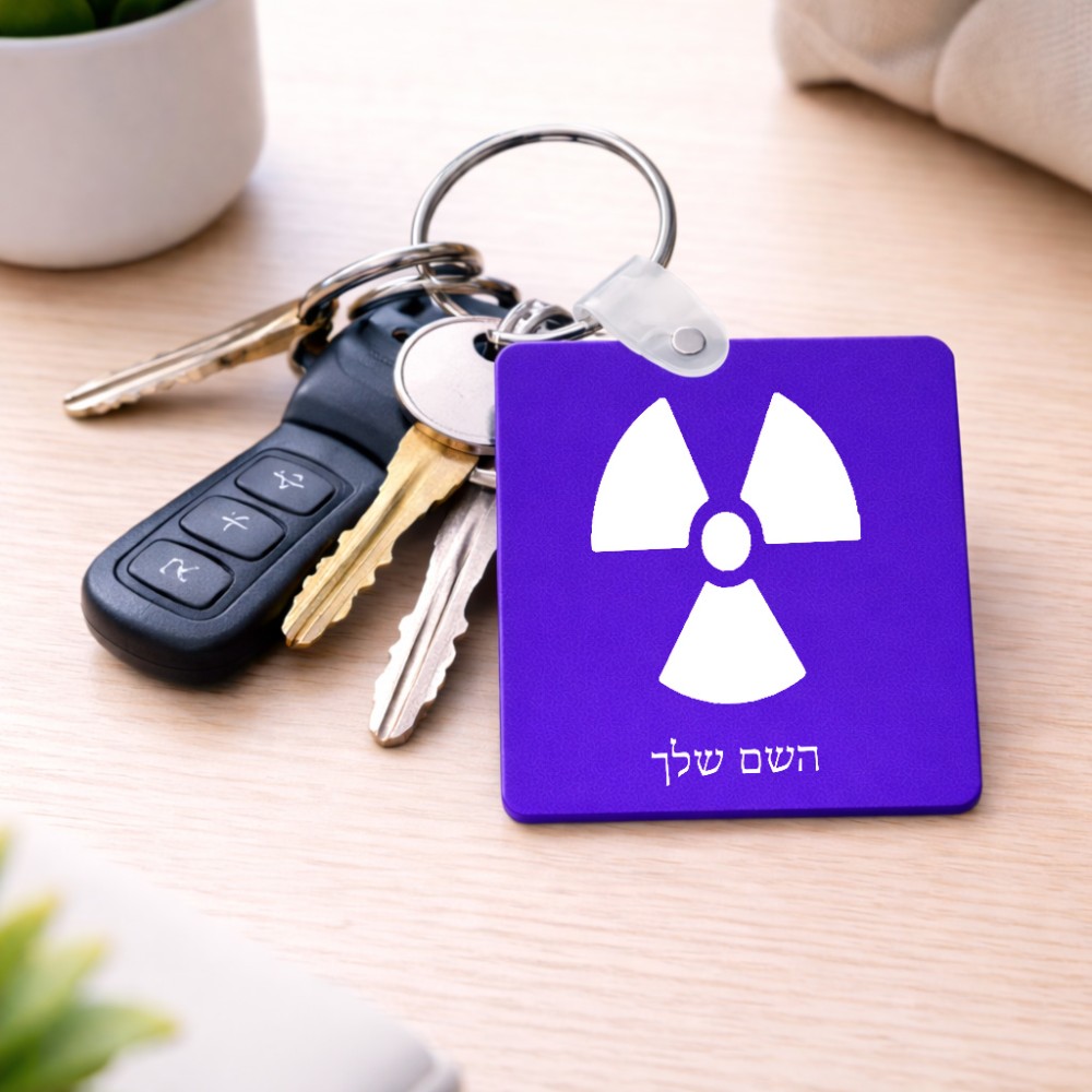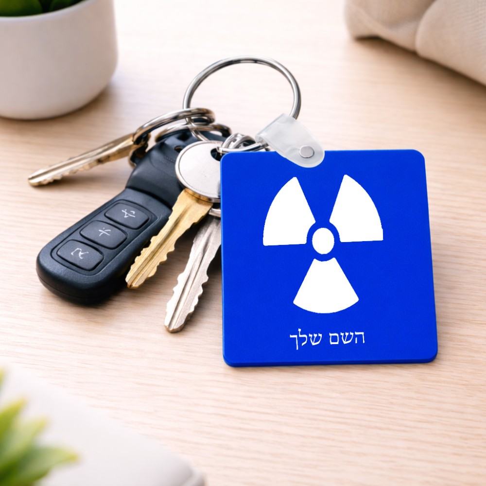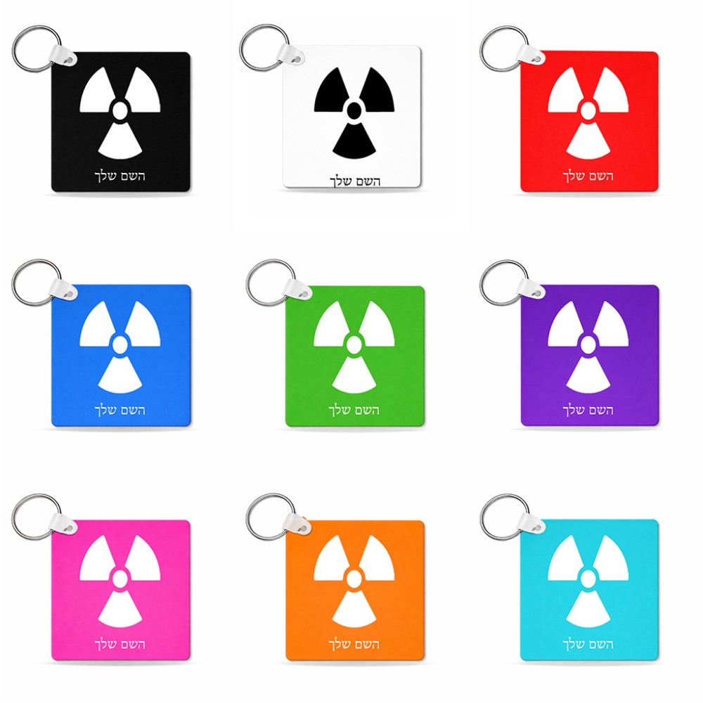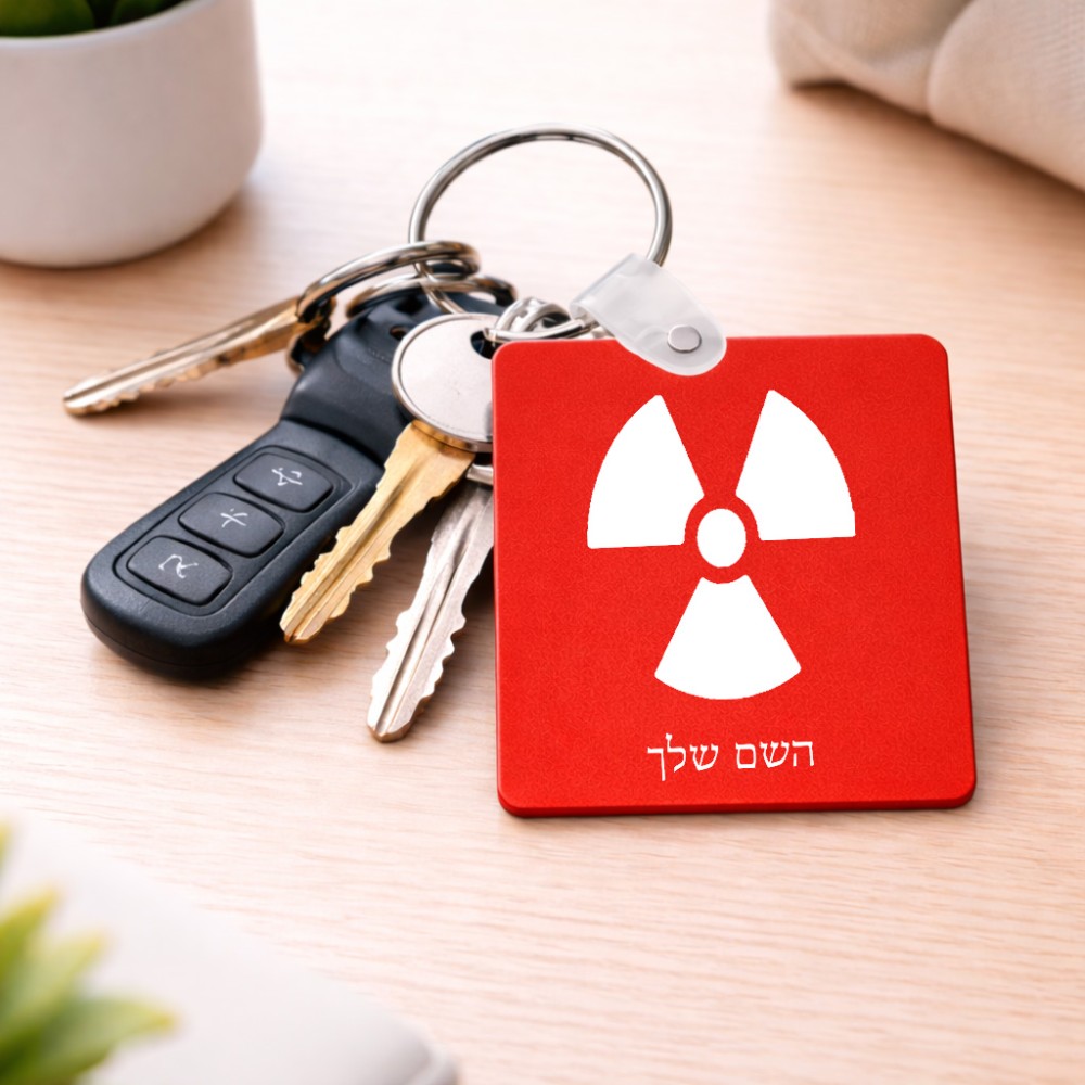מחזיק מפתחות בצורת ריבוע בעיצוב אישי עם השם שלך בעיצוב פצצת אטום גרעינית גודל המחזיק 5 × 5 ס"מ. את השם המבוקש ניתן לציין בהזמנה, אם לא צויין אנחנו ניצור קשר לבירור.