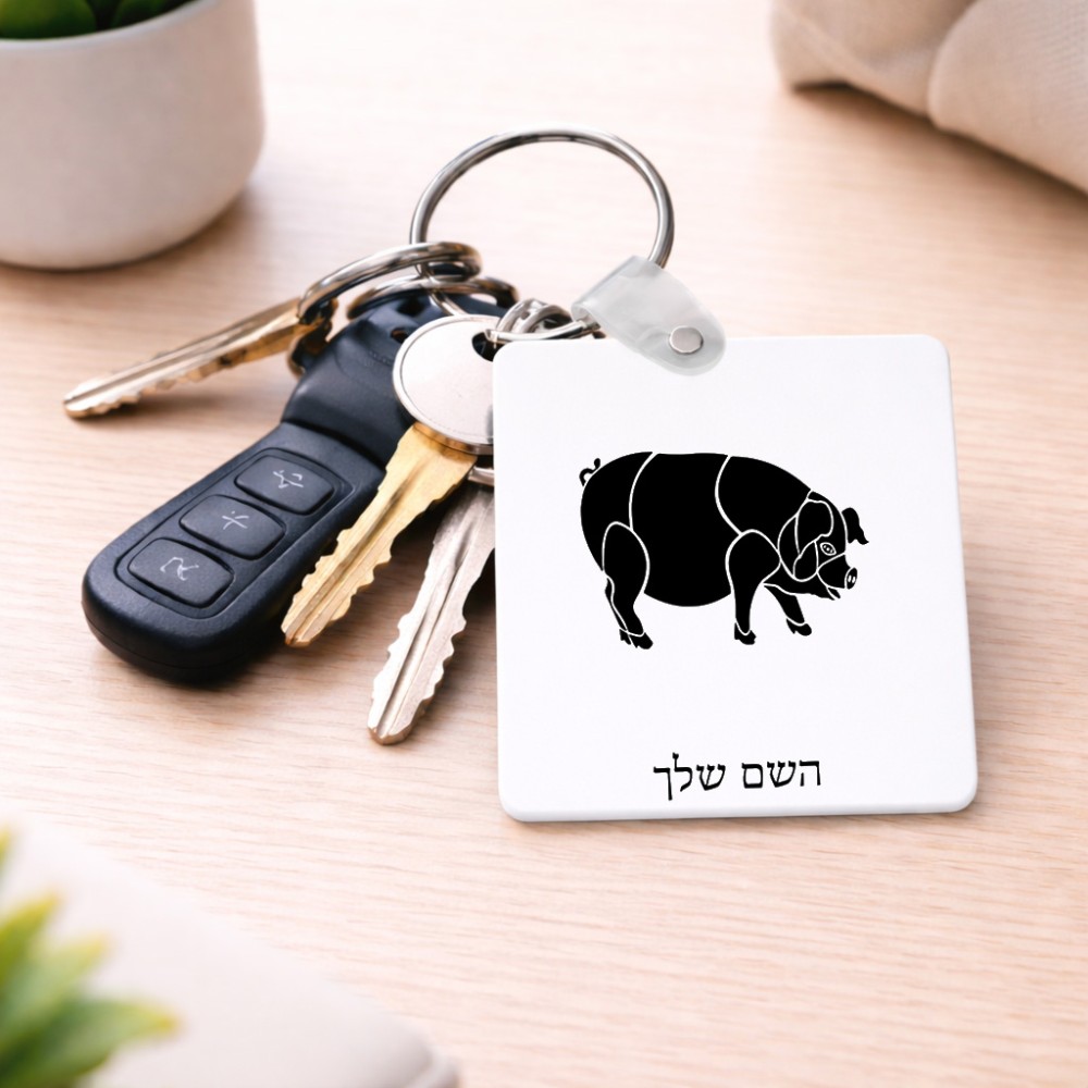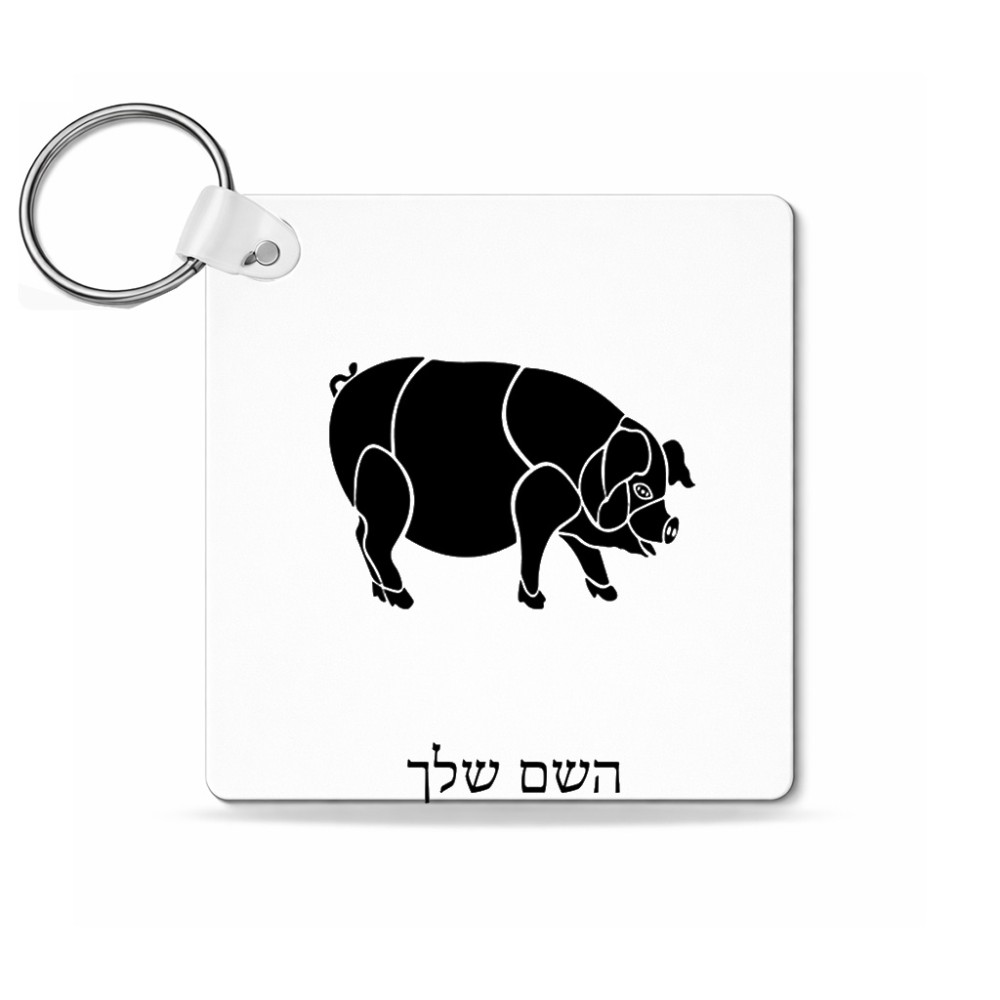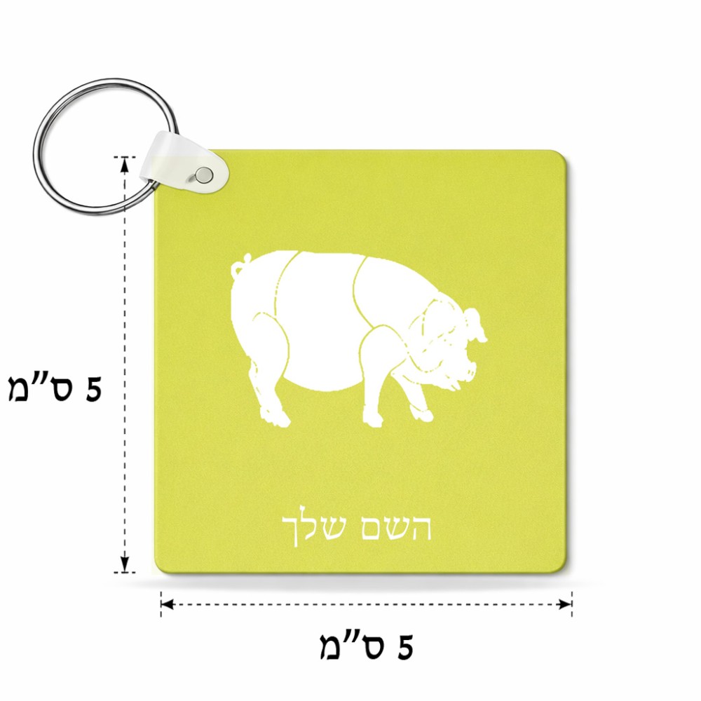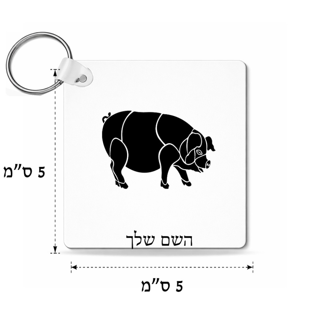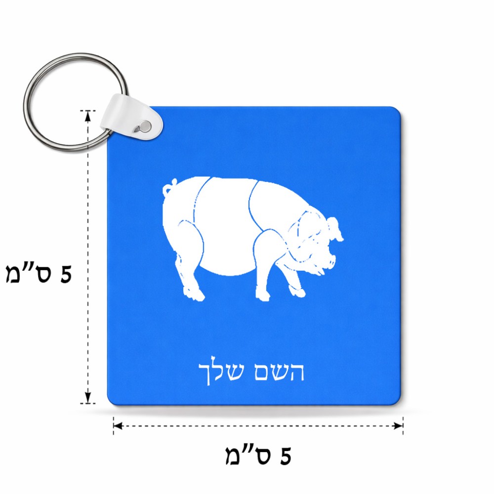 מחזיק מפתחות בצורת ריבוע בעיצוב אישי עם השם שלך בעיצוב חזיר גודל המחזיק 5 × 5 ס"מ. את השם המבוקש ניתן לציין בהזמנה, אם לא צויין אנחנו ניצור קשר לבירור.