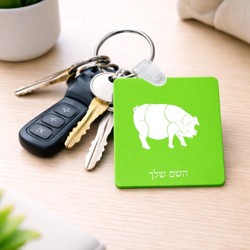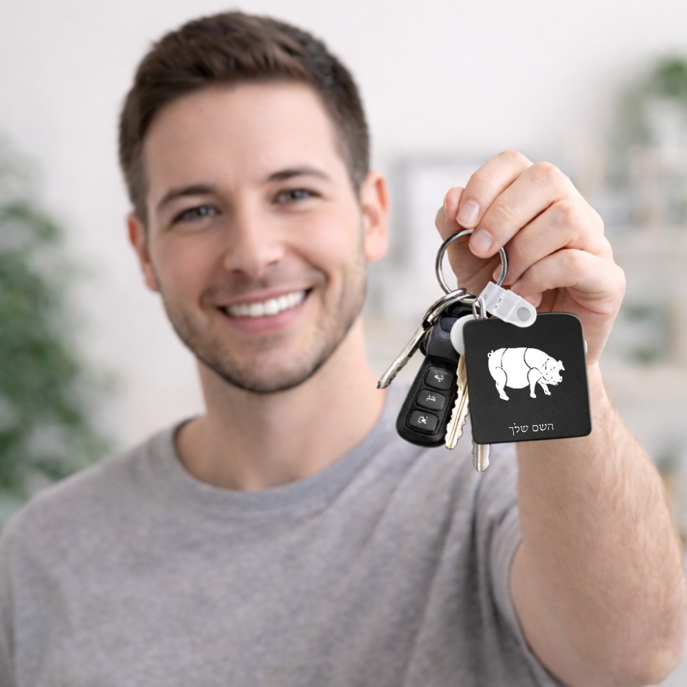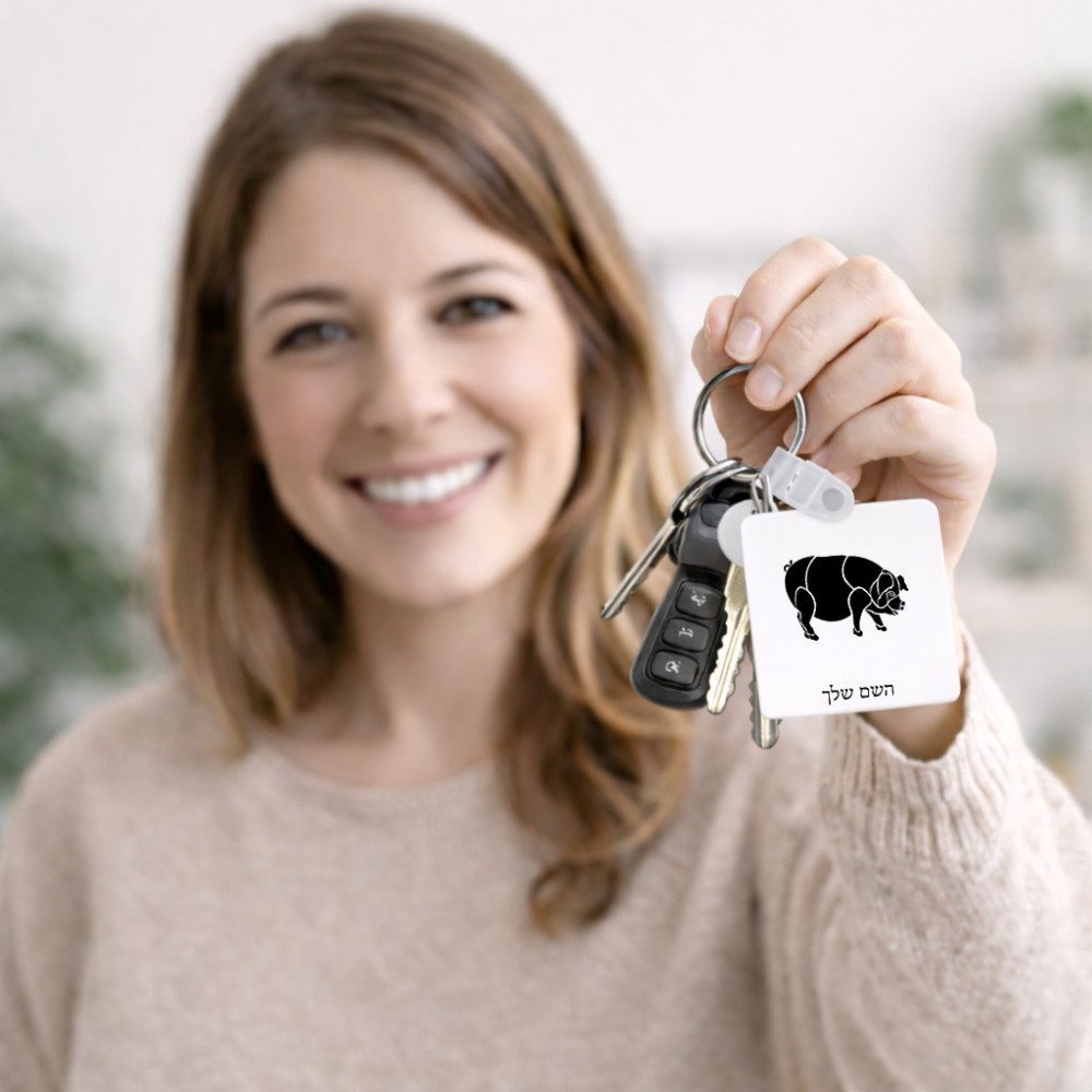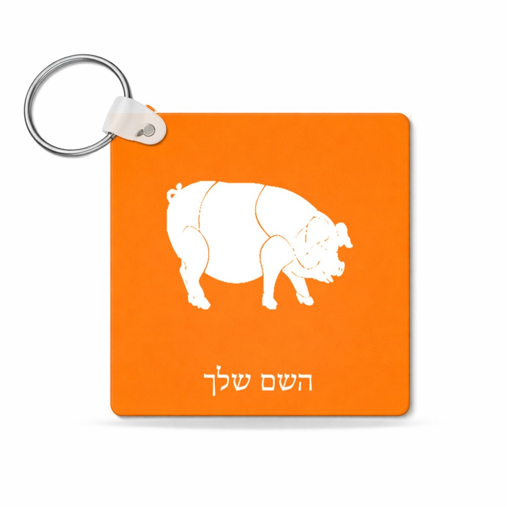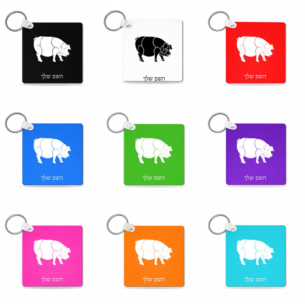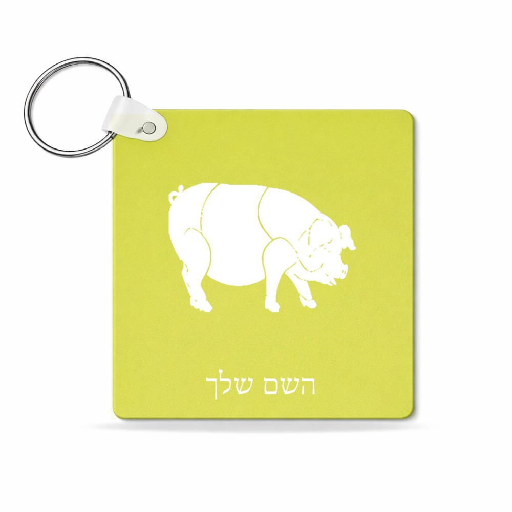 מחזיק מפתחות בצורת ריבוע בעיצוב אישי עם השם שלך בעיצוב חזיר גודל המחזיק 5 × 5 ס"מ. את השם המבוקש ניתן לציין בהזמנה, אם לא צויין אנחנו ניצור קשר לבירור.