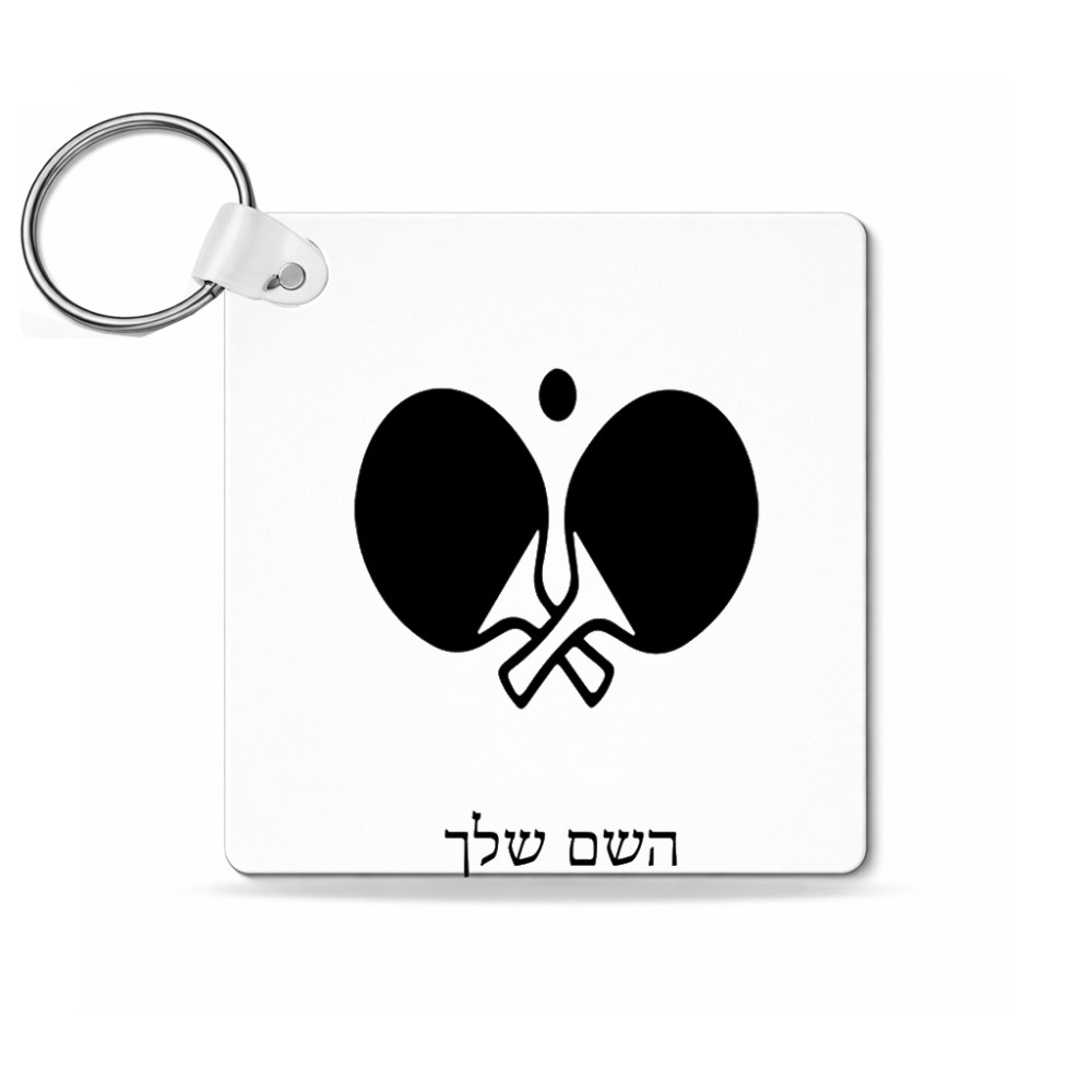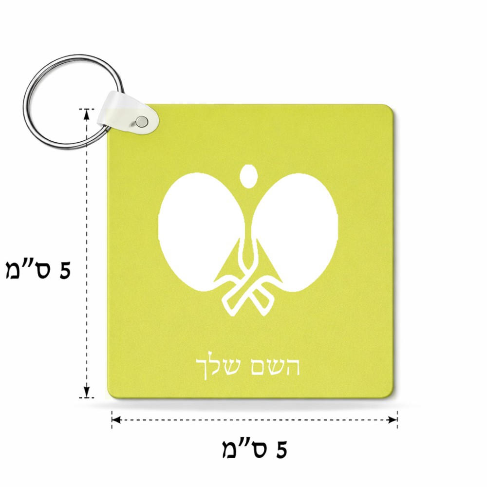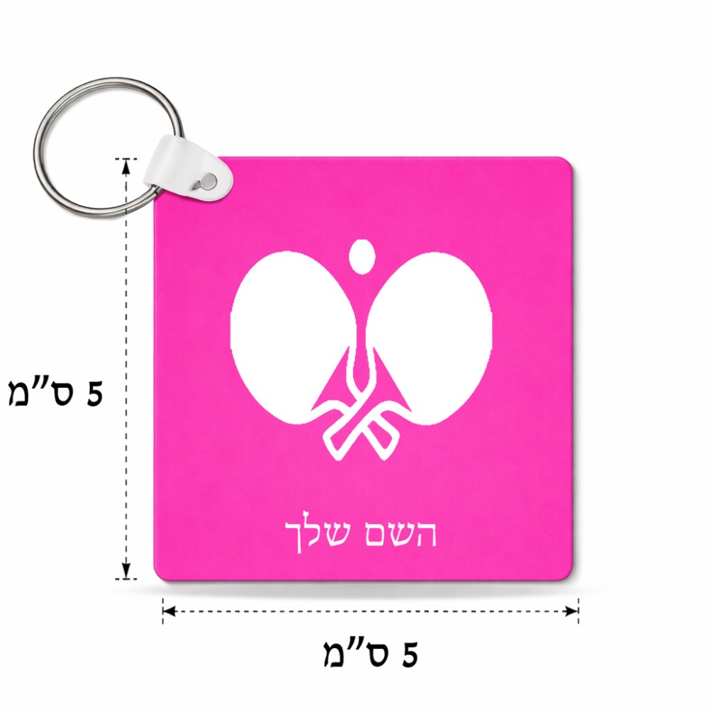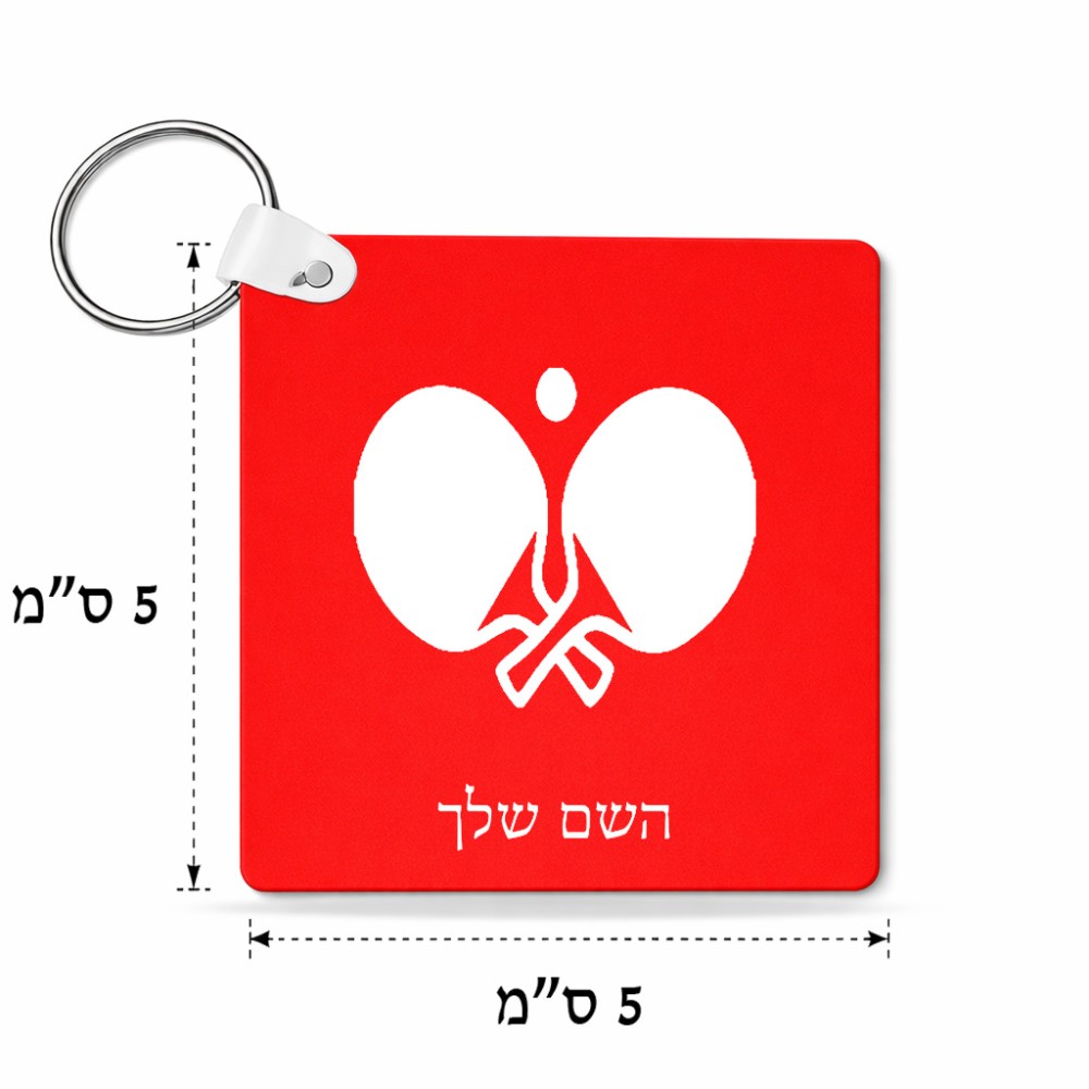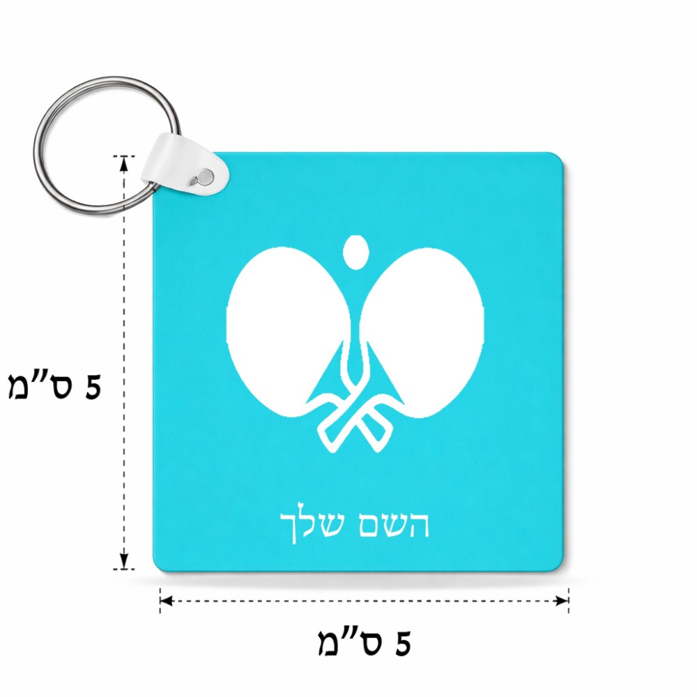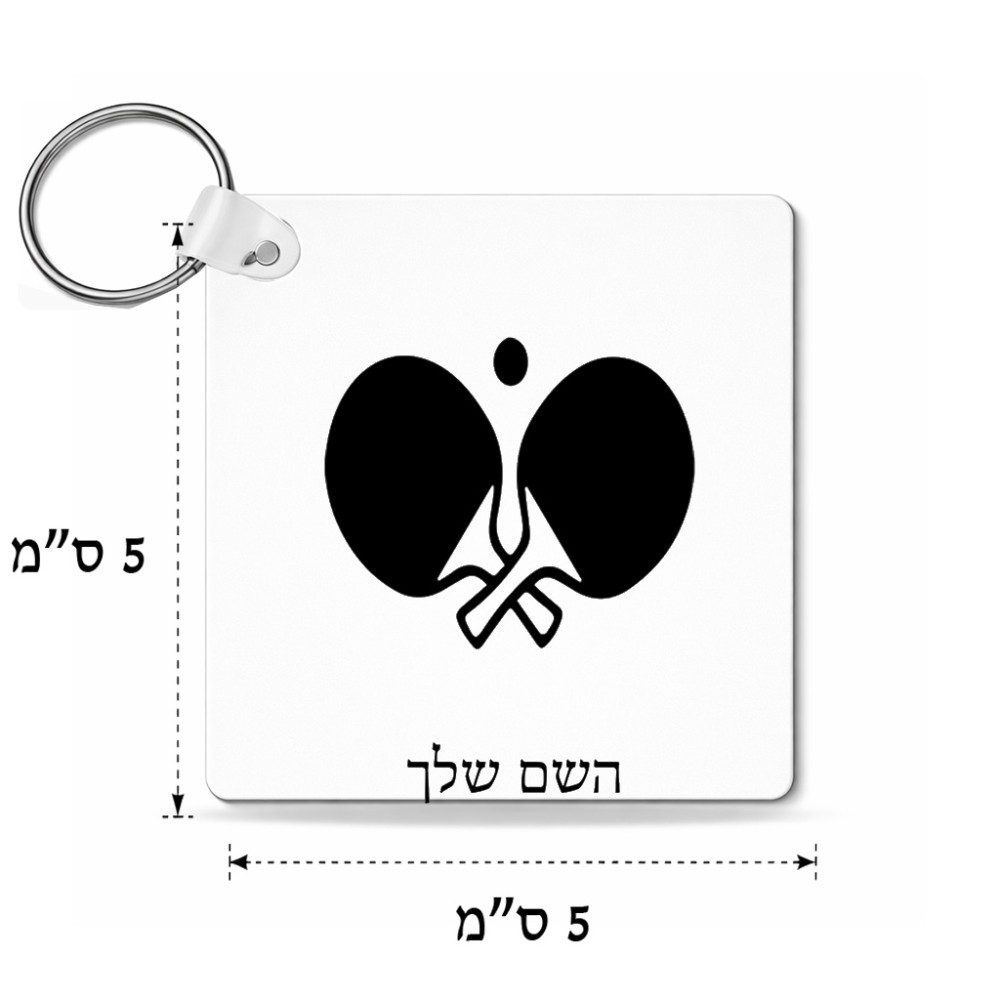 מחזיק מפתחות בצורת ריבוע בעיצוב אישי עם השם שלך בעיצוב פינג פונג גודל המחזיק 5 × 5 ס"מ. את השם המבוקש ניתן לציין בהזמנה, אם לא צויין אנחנו ניצור קשר לבירור.