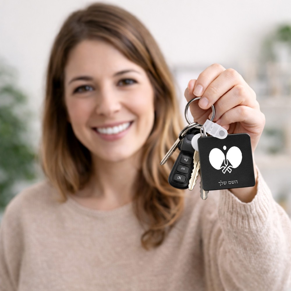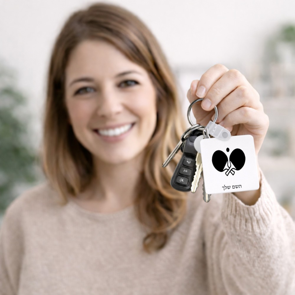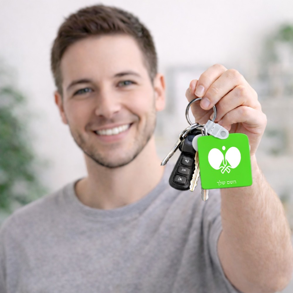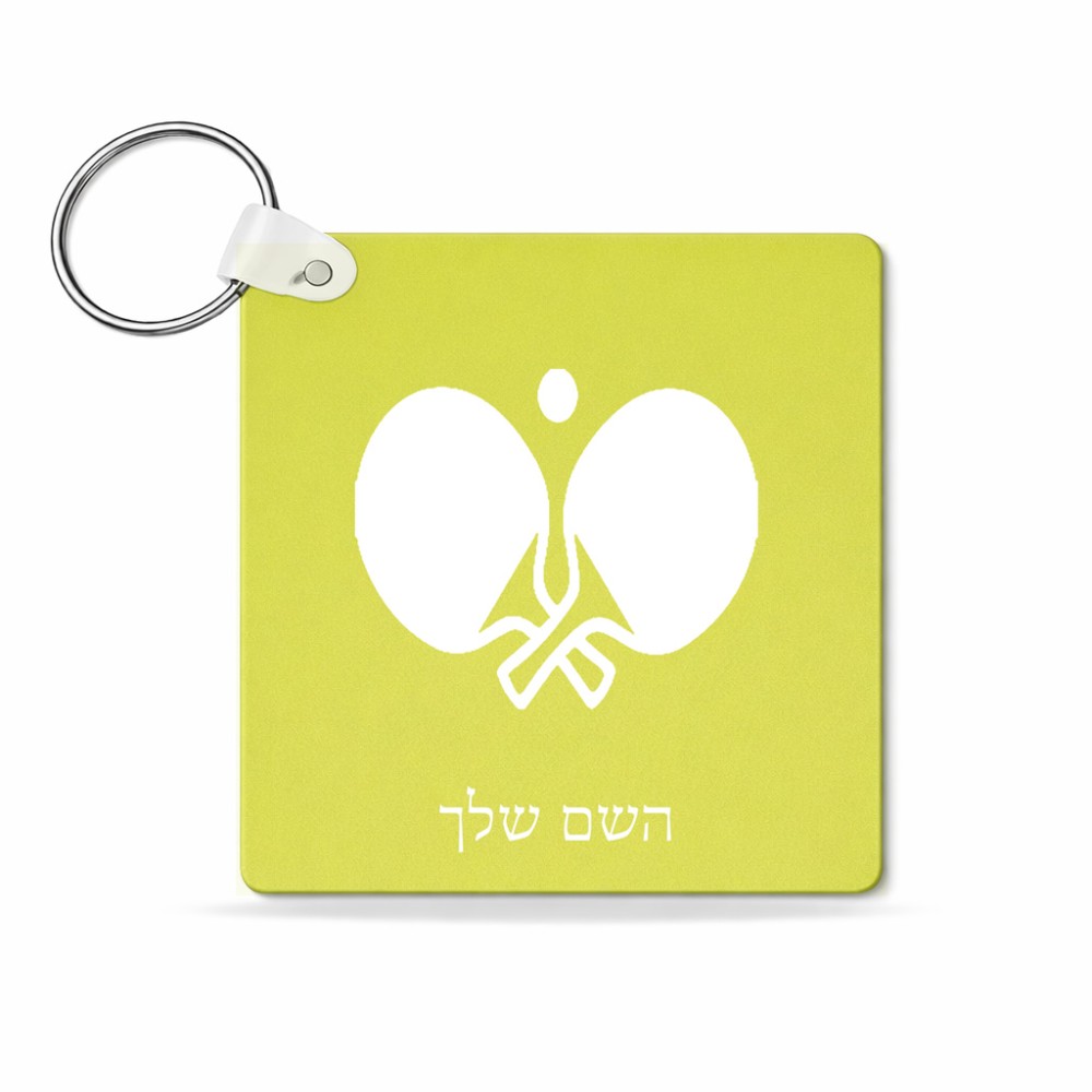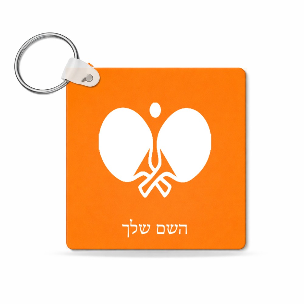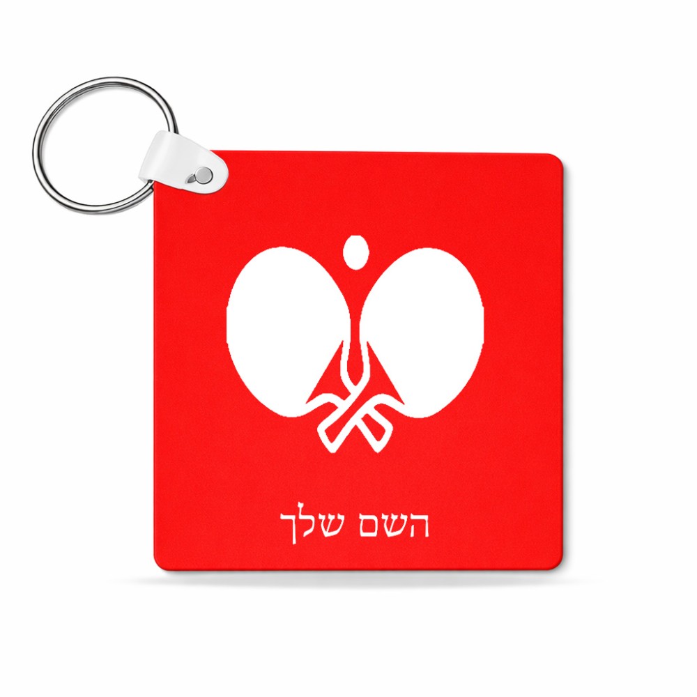 מחזיק מפתחות בצורת ריבוע בעיצוב אישי עם השם שלך בעיצוב פינג פונג גודל המחזיק 5 × 5 ס"מ. את השם המבוקש ניתן לציין בהזמנה, אם לא צויין אנחנו ניצור קשר לבירור.