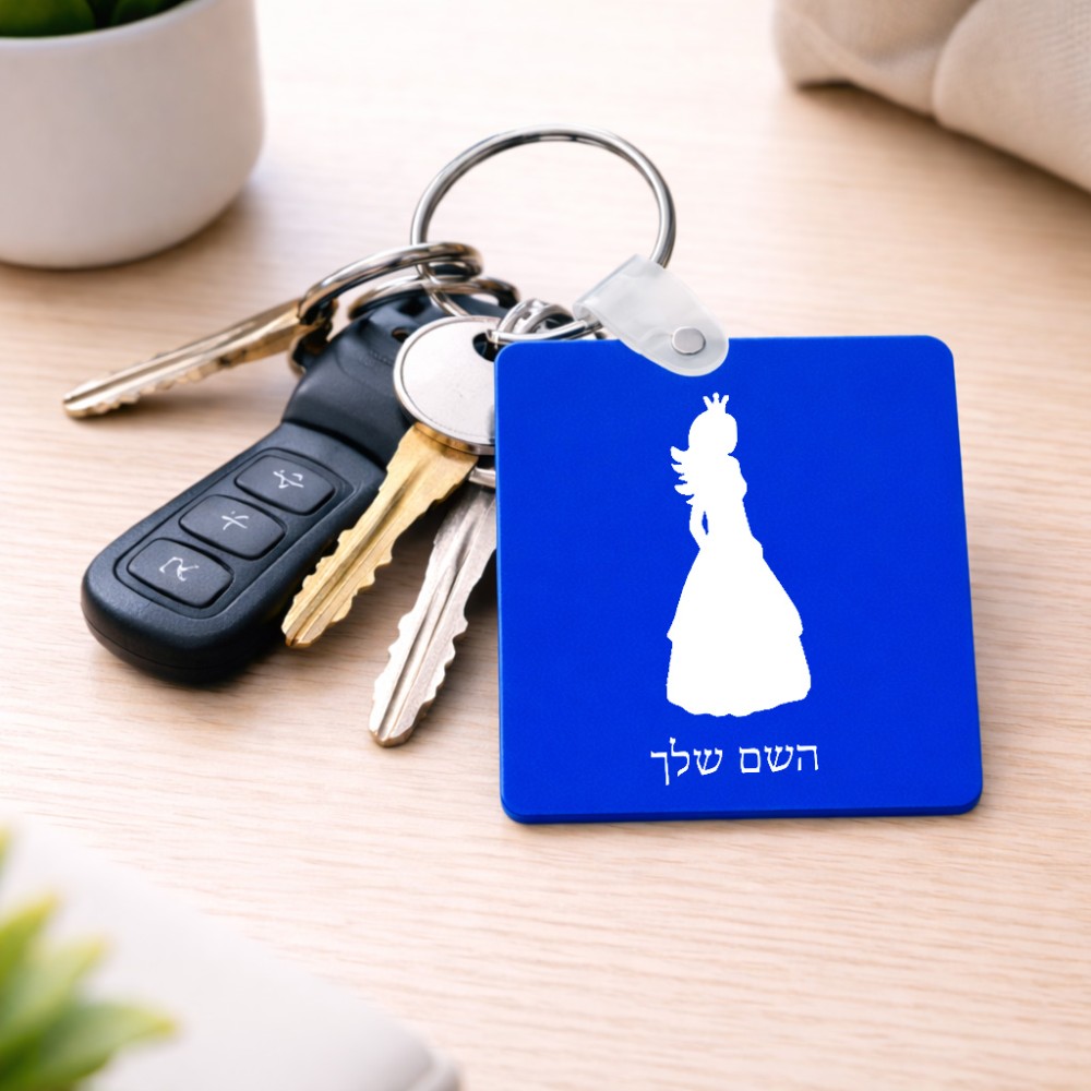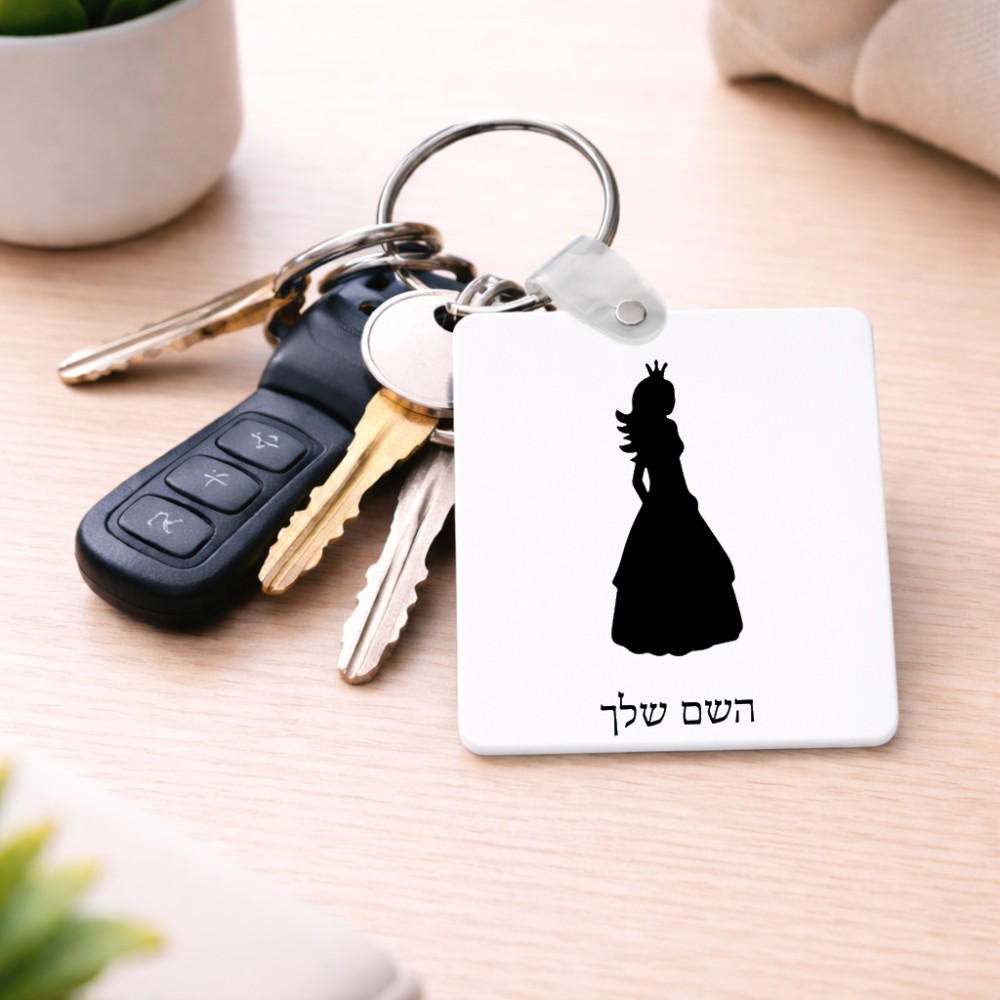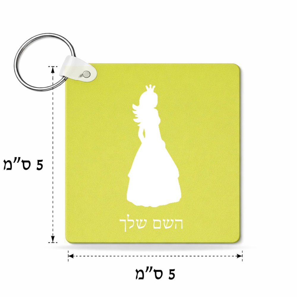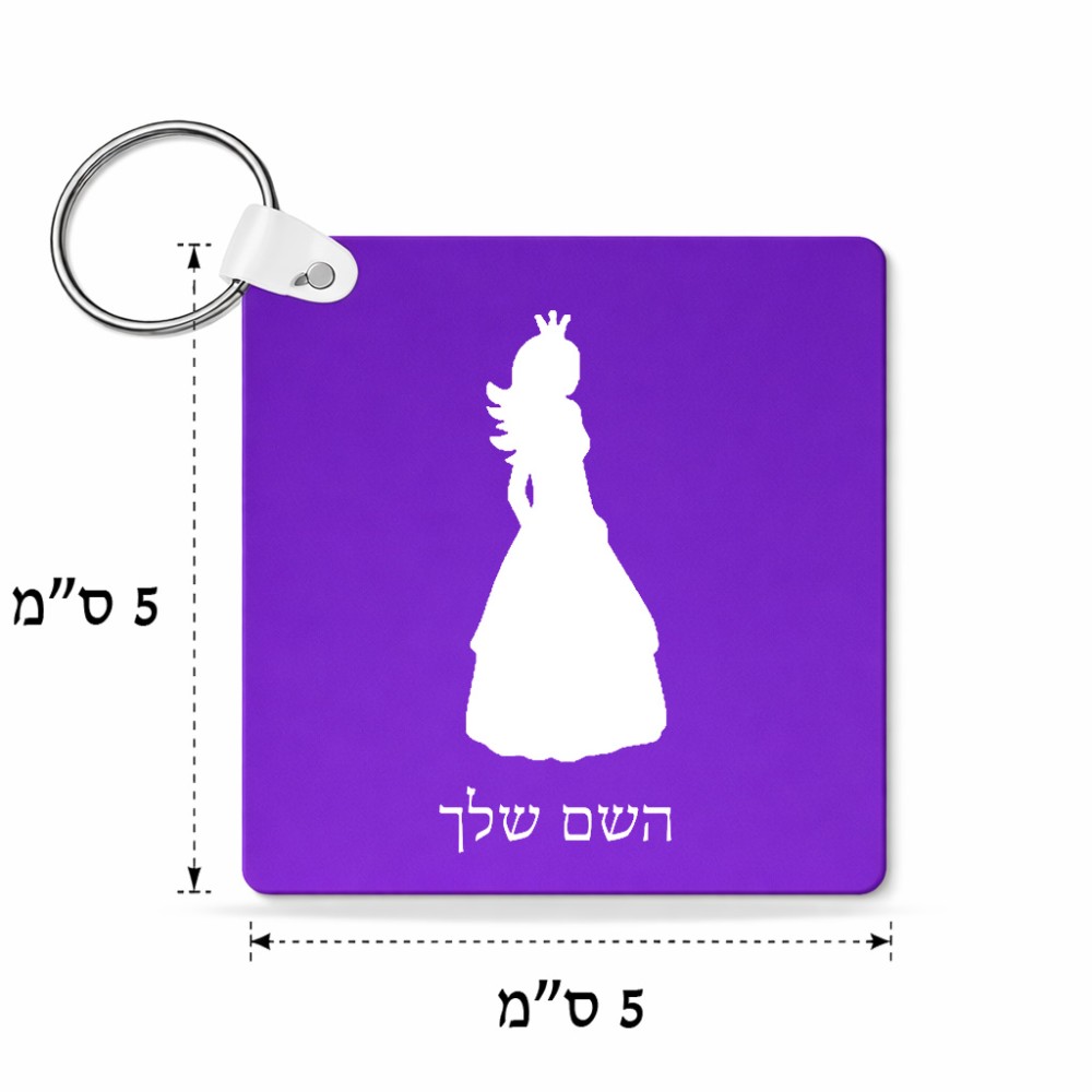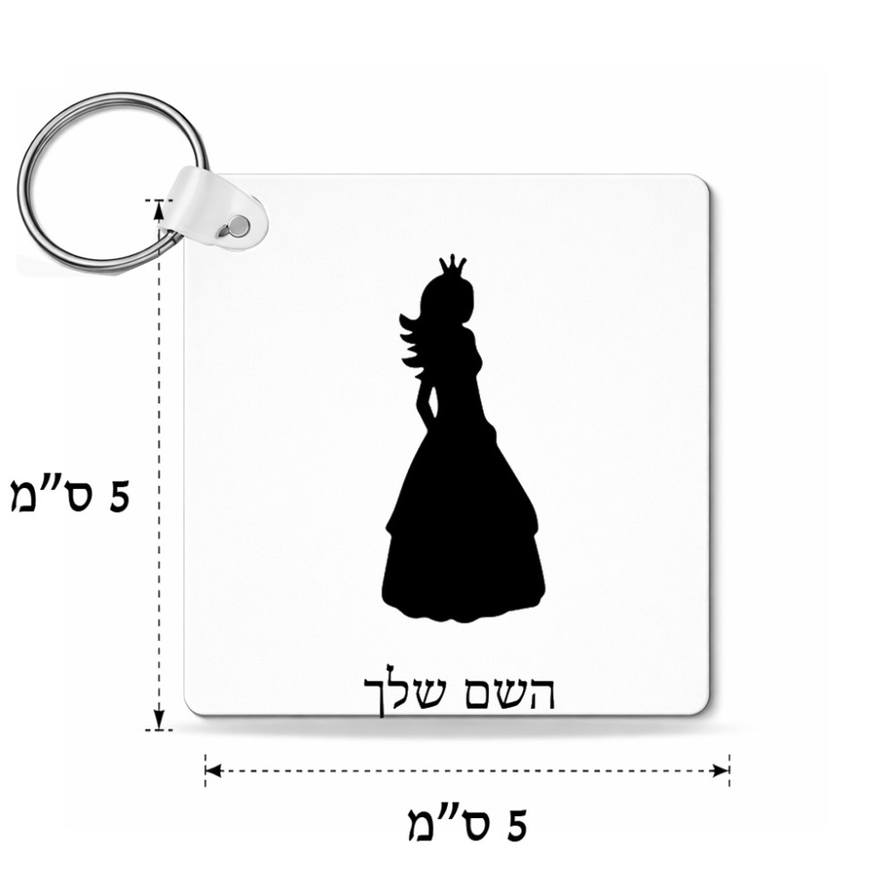 מחזיק מפתחות בצורת ריבוע בעיצוב אישי עם השם שלך בעיצוב נסיכה גודל המחזיק 5 × 5 ס"מ. את השם המבוקש ניתן לציין בהזמנה, אם לא צויין אנחנו ניצור קשר לבירור.