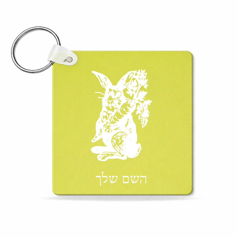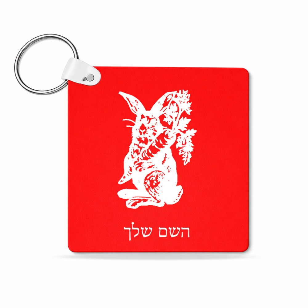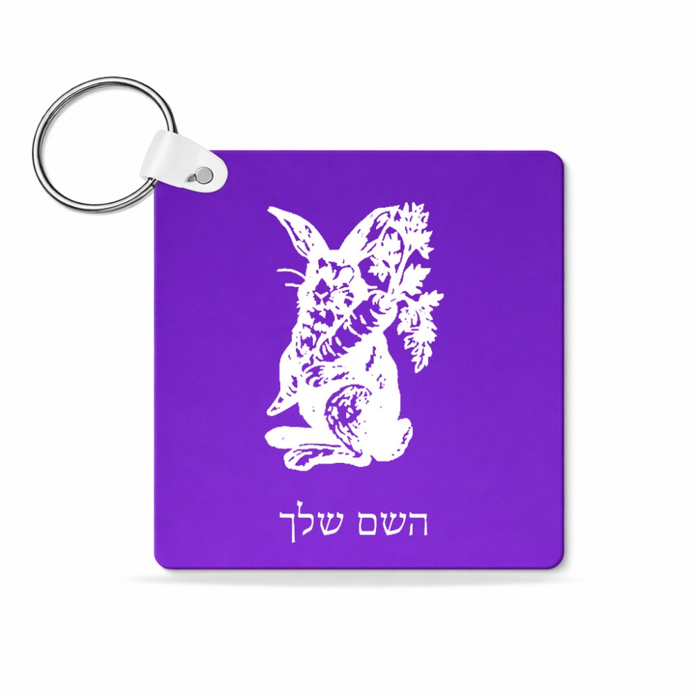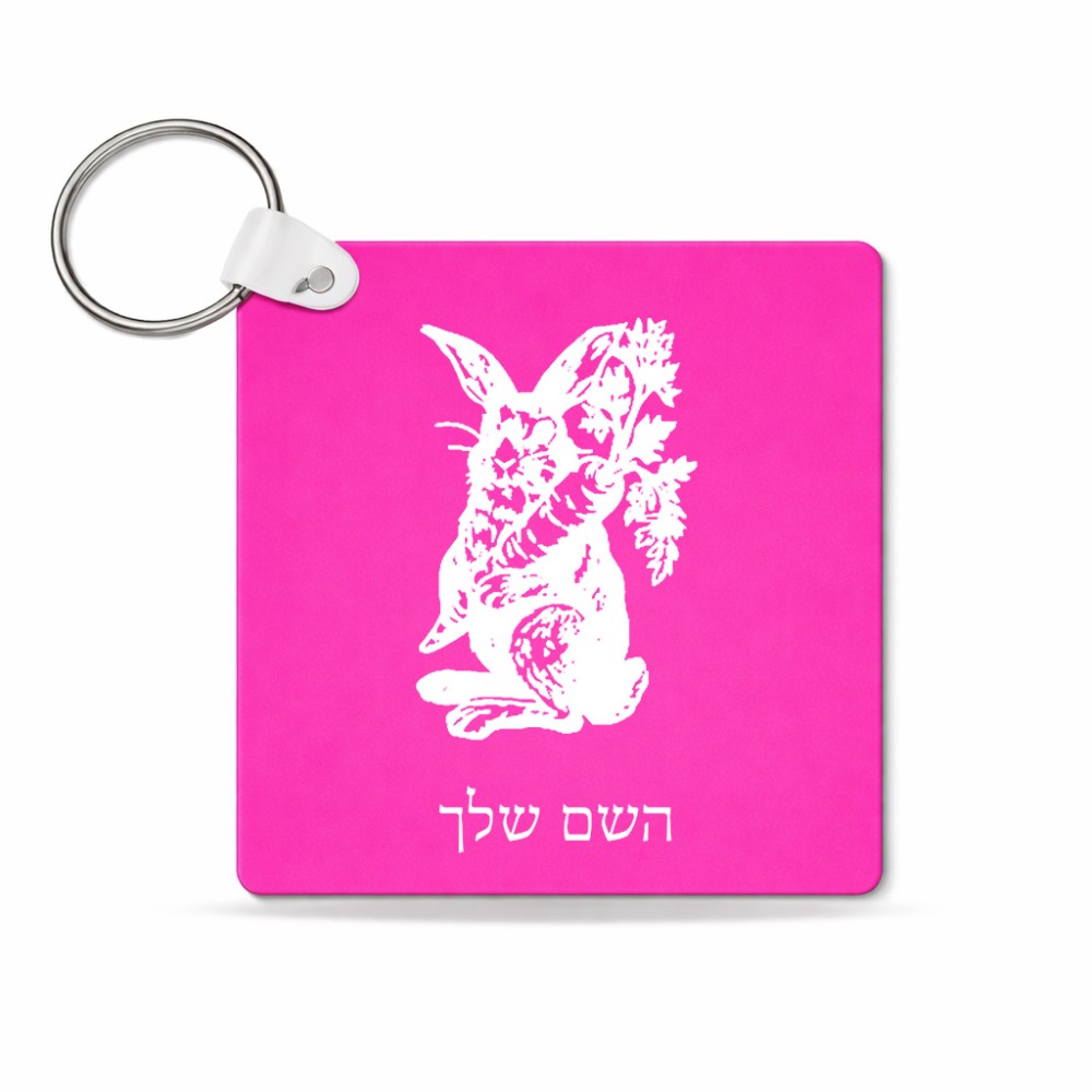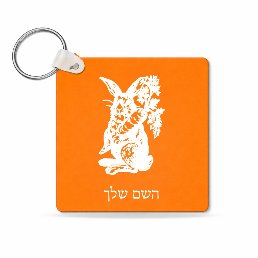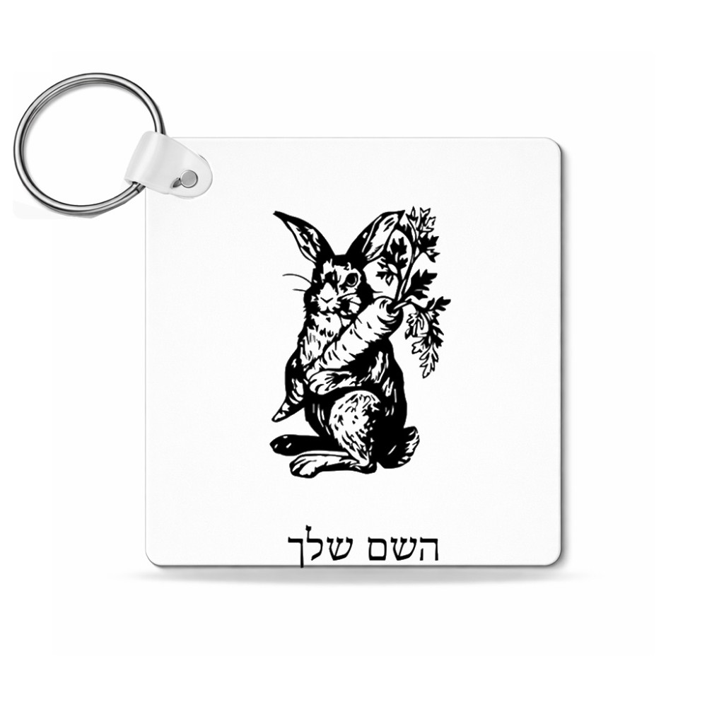 מחזיק מפתחות בצורת ריבוע בעיצוב אישי עם השם שלך בעיצוב ארנב מחזיק גזר גודל המחזיק 5 × 5 ס"מ. את השם המבוקש ניתן לציין בהזמנה, אם לא צויין אנחנו ניצור קשר לבירור.