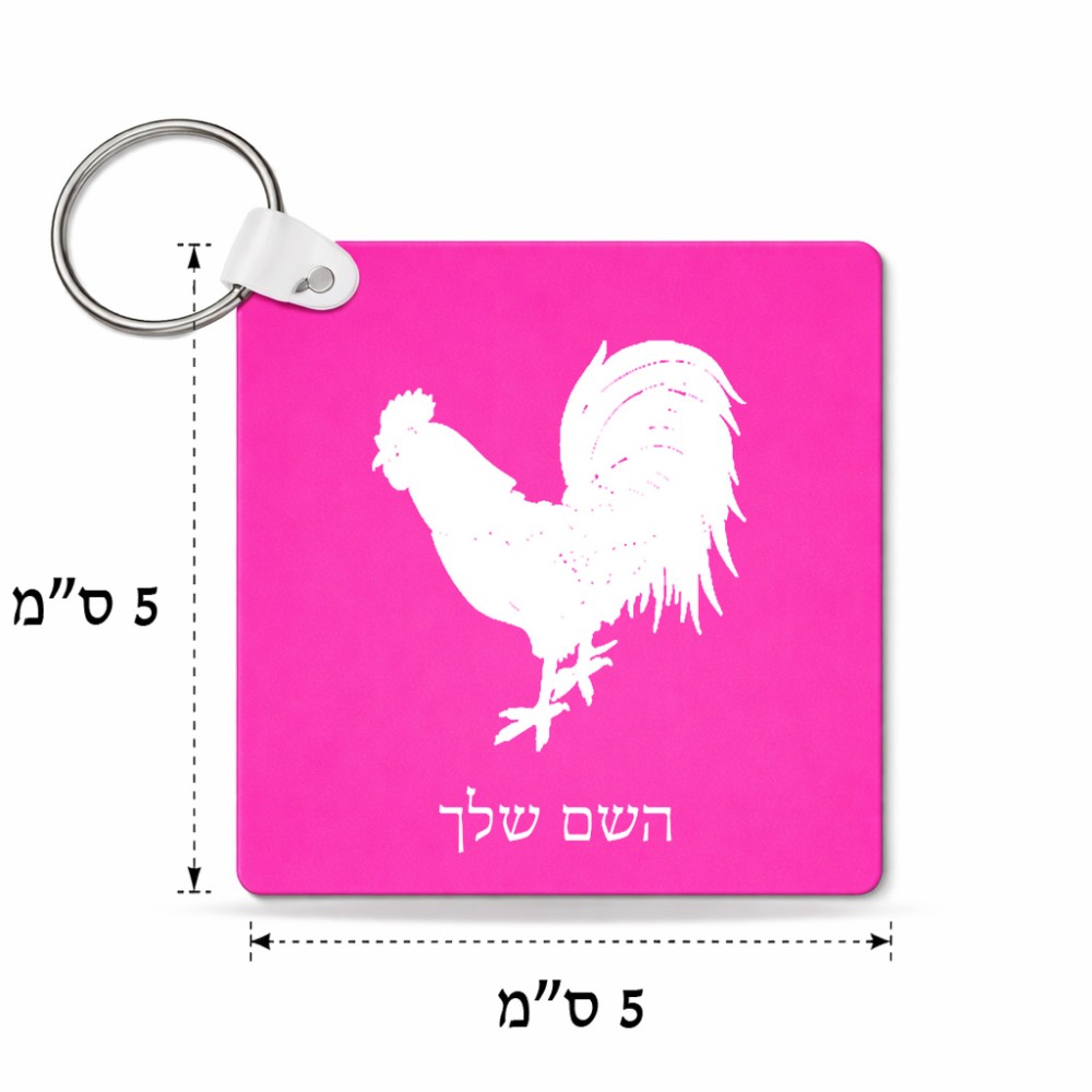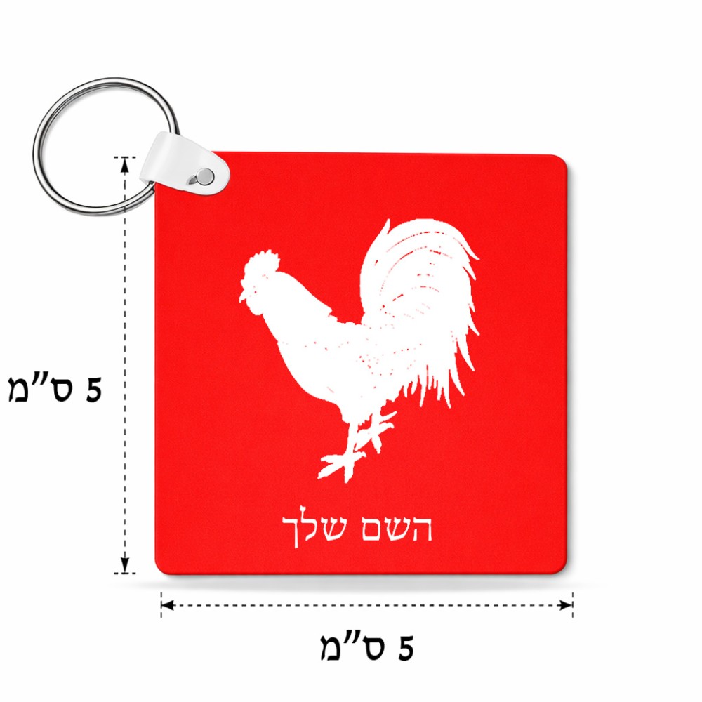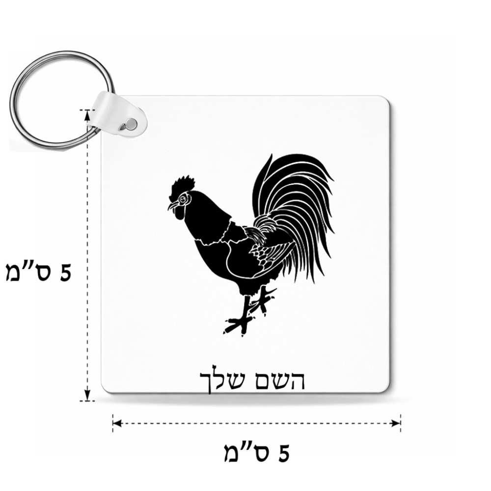 מחזיק מפתחות בצורת ריבוע בעיצוב אישי עם השם שלך בעיצוב תרנגול גודל המחזיק 5 × 5 ס"מ. את השם המבוקש ניתן לציין בהזמנה, אם לא צויין אנחנו ניצור קשר לבירור.