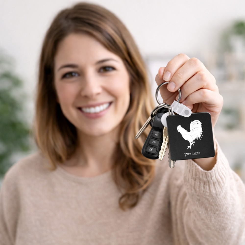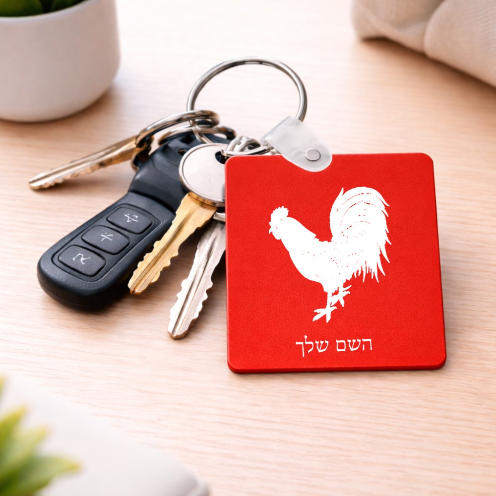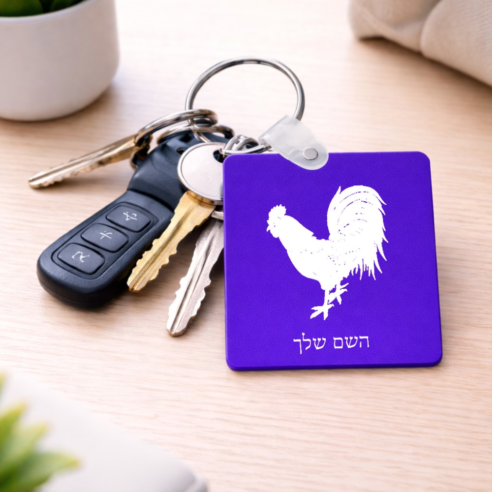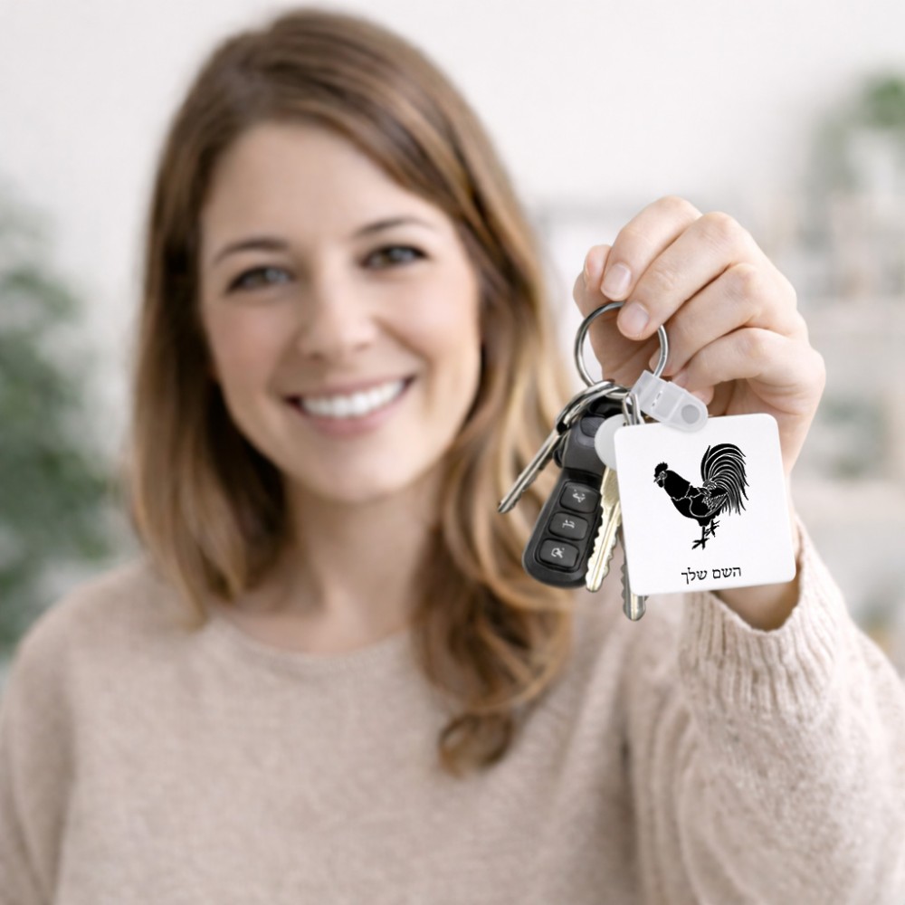 מחזיק מפתחות בצורת ריבוע בעיצוב אישי עם השם שלך בעיצוב תרנגול גודל המחזיק 5 × 5 ס"מ. את השם המבוקש ניתן לציין בהזמנה, אם לא צויין אנחנו ניצור קשר לבירור.