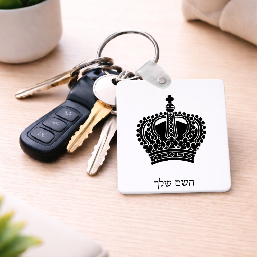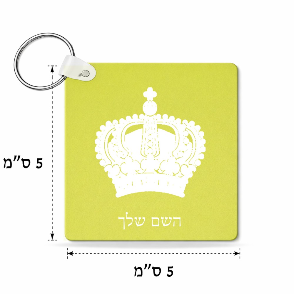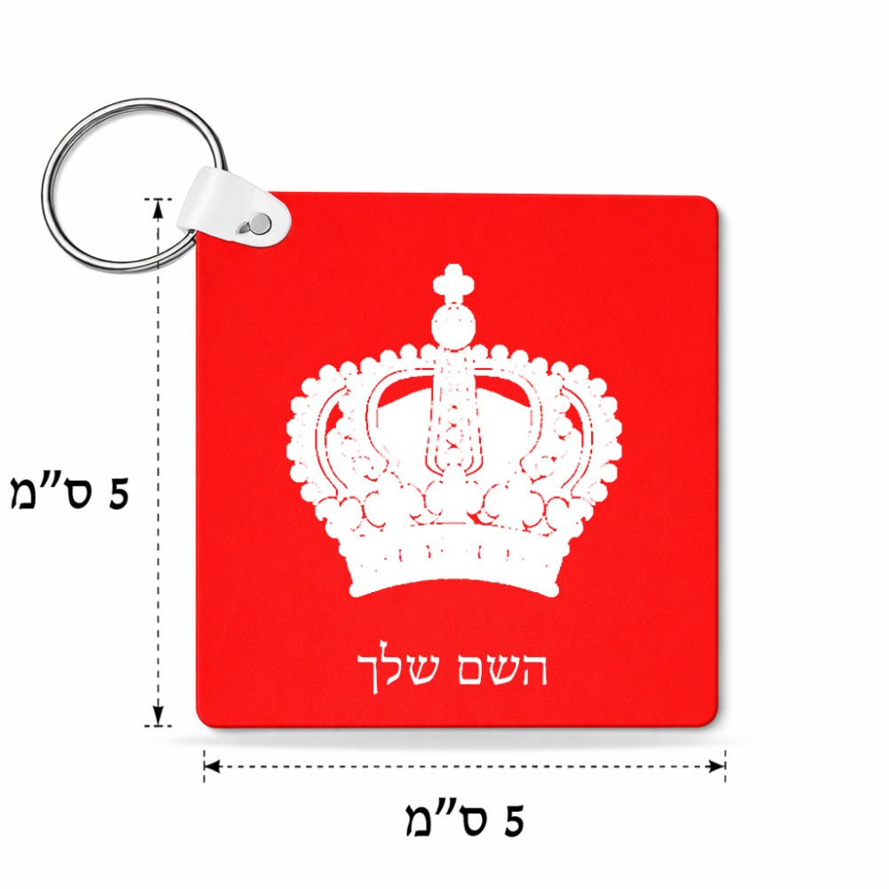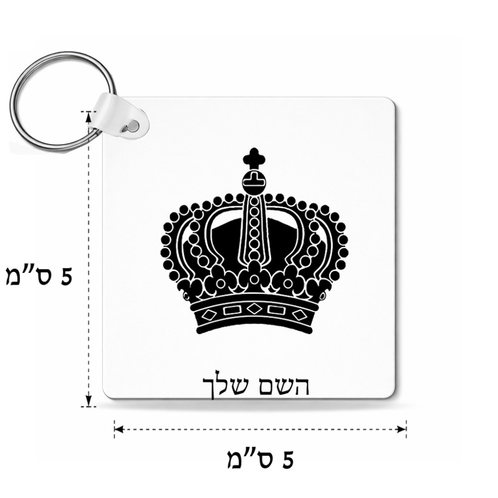 מחזיק מפתחות בצורת ריבוע בעיצוב אישי עם השם שלך בעיצוב כתר מלכותי גודל המחזיק 5 × 5 ס"מ. את השם המבוקש ניתן לציין בהזמנה, אם לא צויין אנחנו ניצור קשר לבירור.