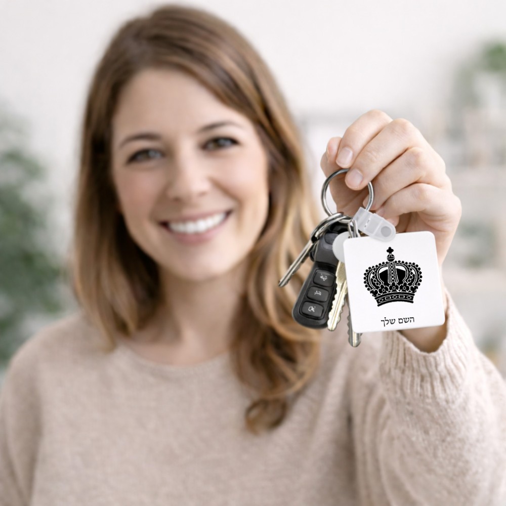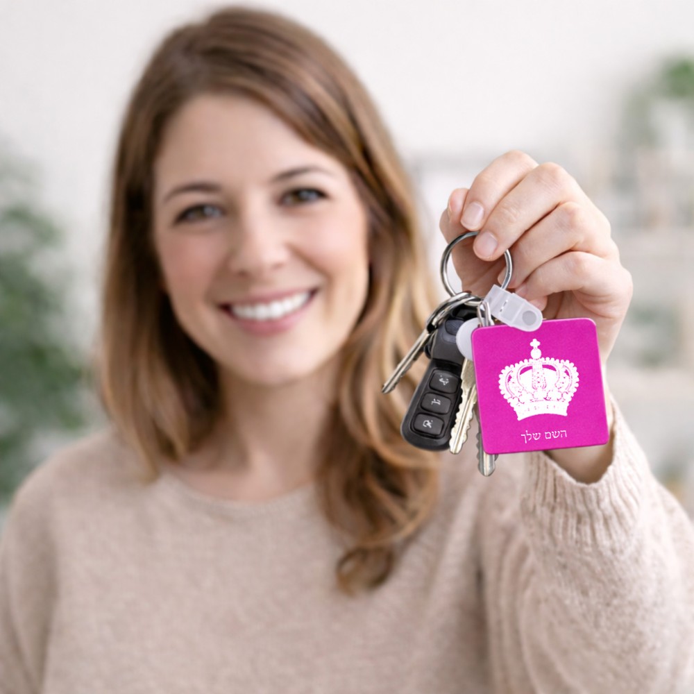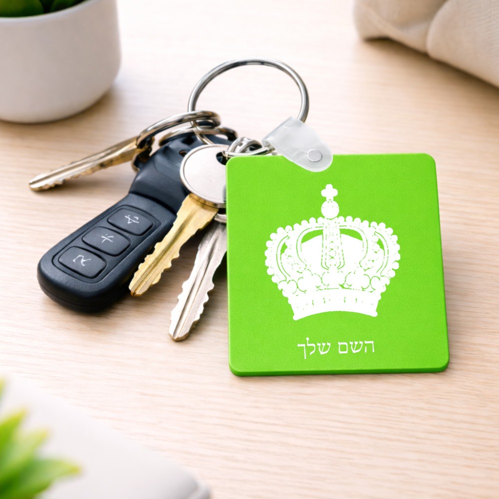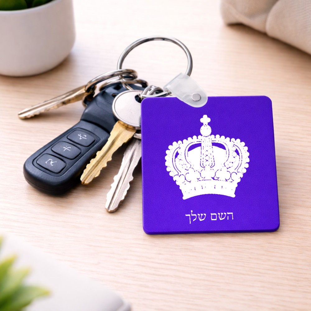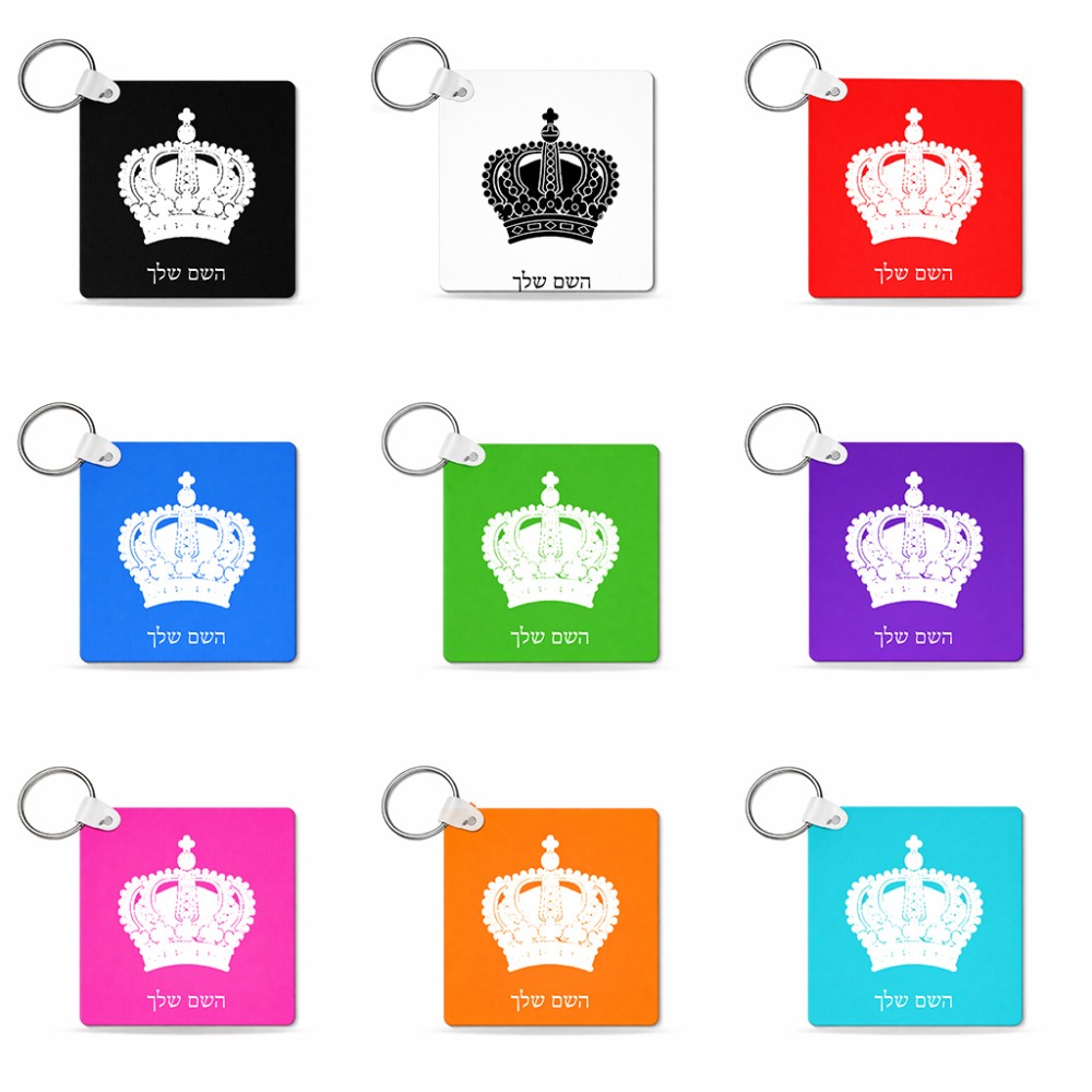 מחזיק מפתחות בצורת ריבוע בעיצוב אישי עם השם שלך בעיצוב כתר מלכותי גודל המחזיק 5 × 5 ס"מ. את השם המבוקש ניתן לציין בהזמנה, אם לא צויין אנחנו ניצור קשר לבירור.