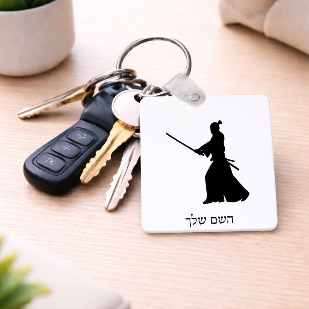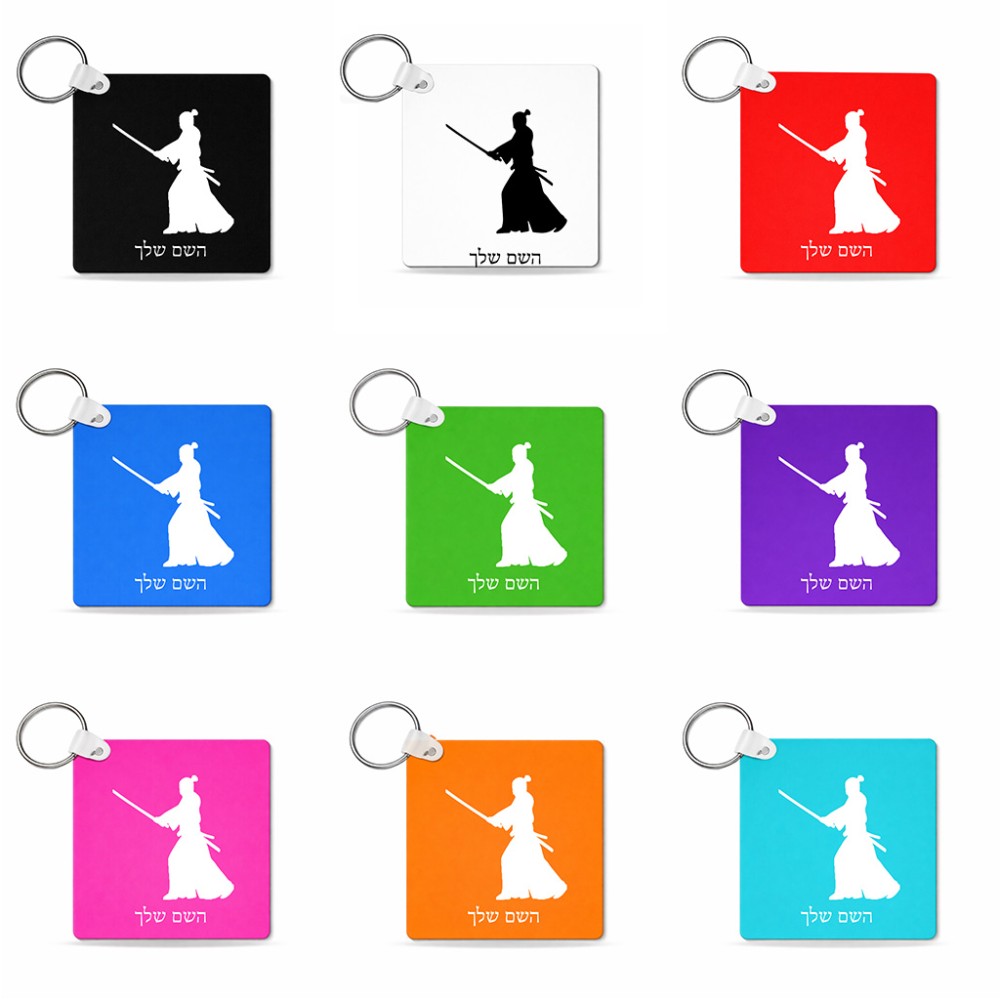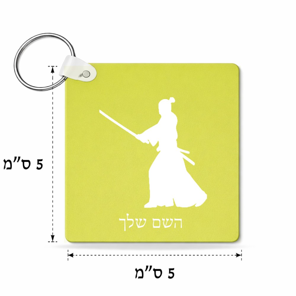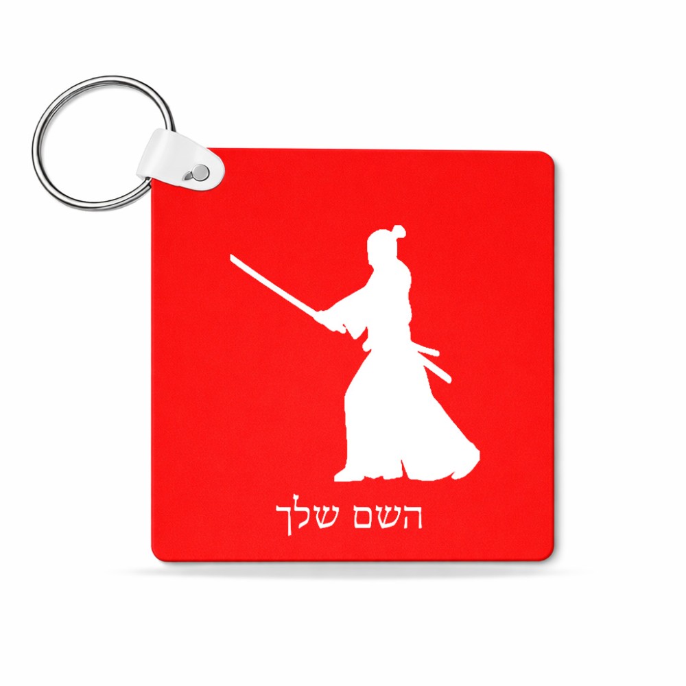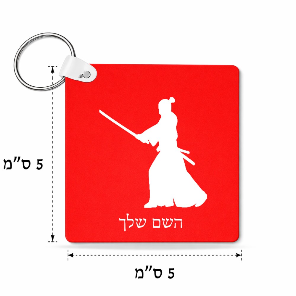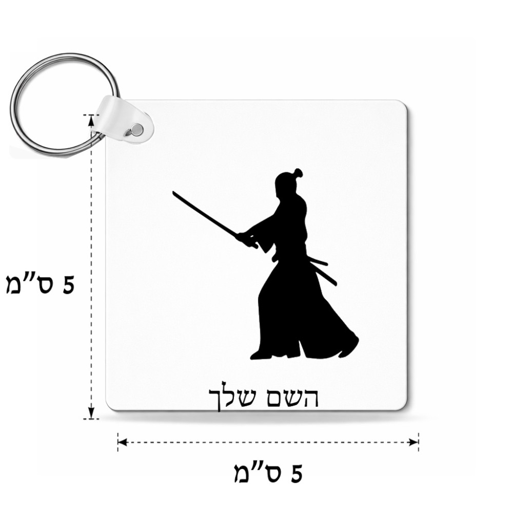 מחזיק מפתחות בצורת ריבוע בעיצוב אישי עם השם שלך בעיצוב סמוראי גודל המחזיק 5 × 5 ס"מ. את השם המבוקש ניתן לציין בהזמנה, אם לא צויין אנחנו ניצור קשר לבירור.