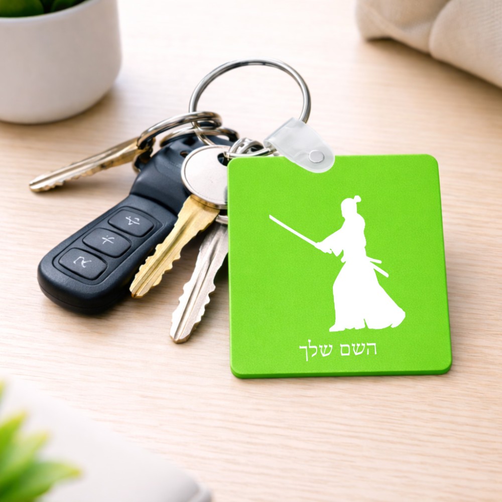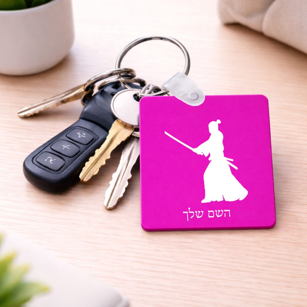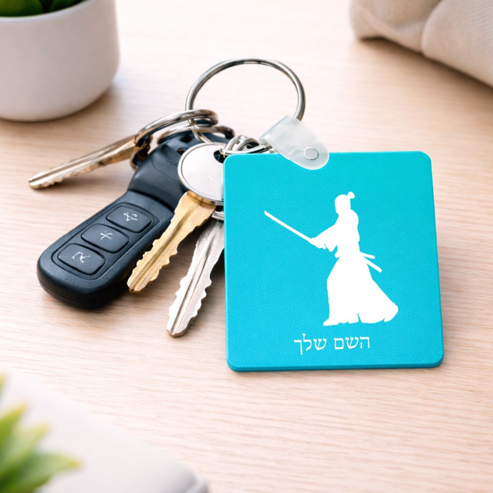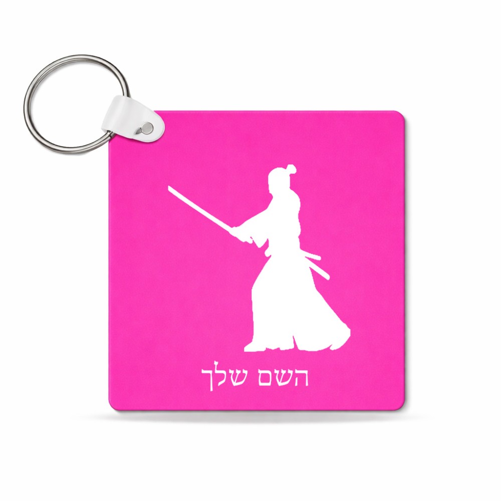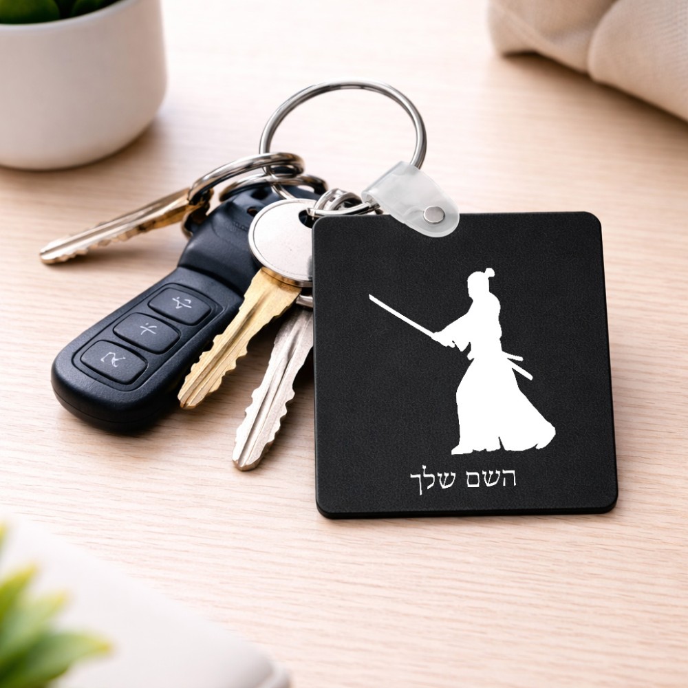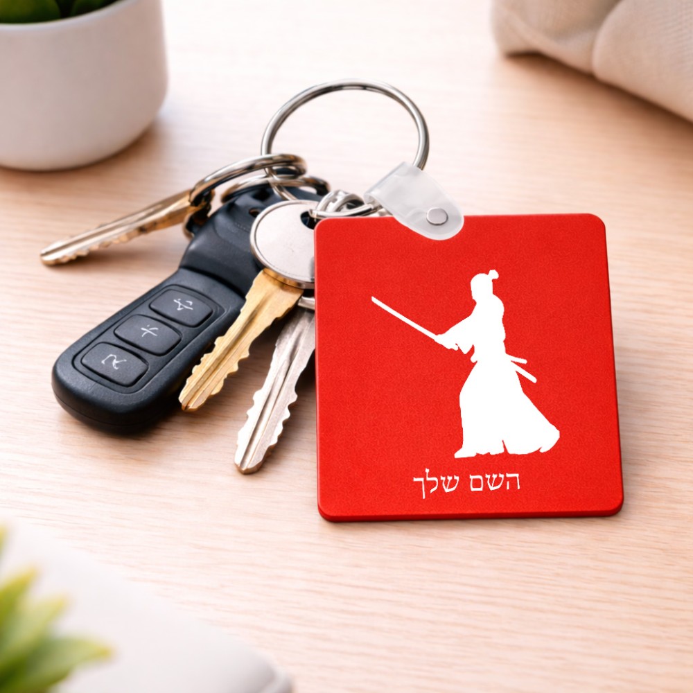 מחזיק מפתחות בצורת ריבוע בעיצוב אישי עם השם שלך בעיצוב סמוראי גודל המחזיק 5 × 5 ס"מ. את השם המבוקש ניתן לציין בהזמנה, אם לא צויין אנחנו ניצור קשר לבירור.