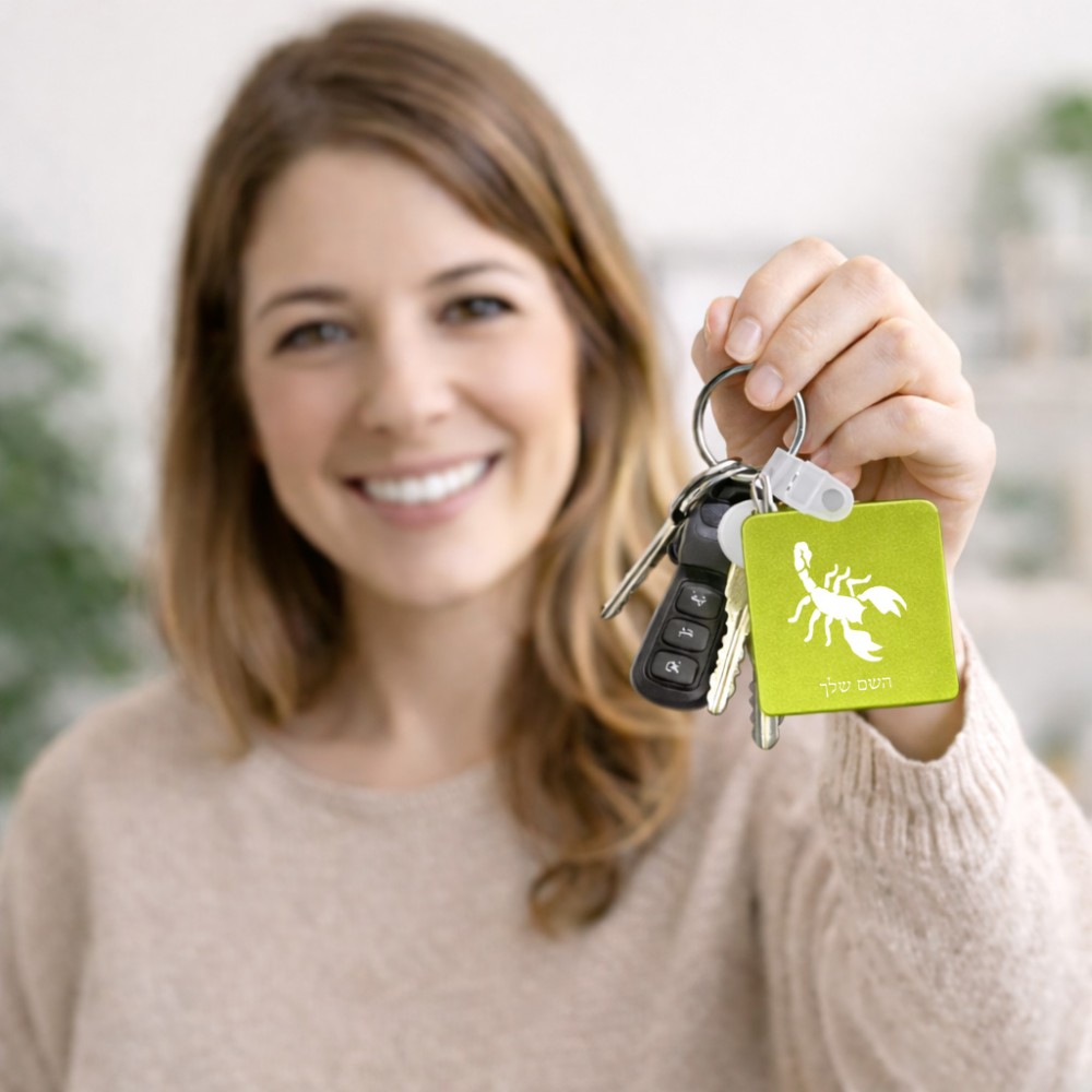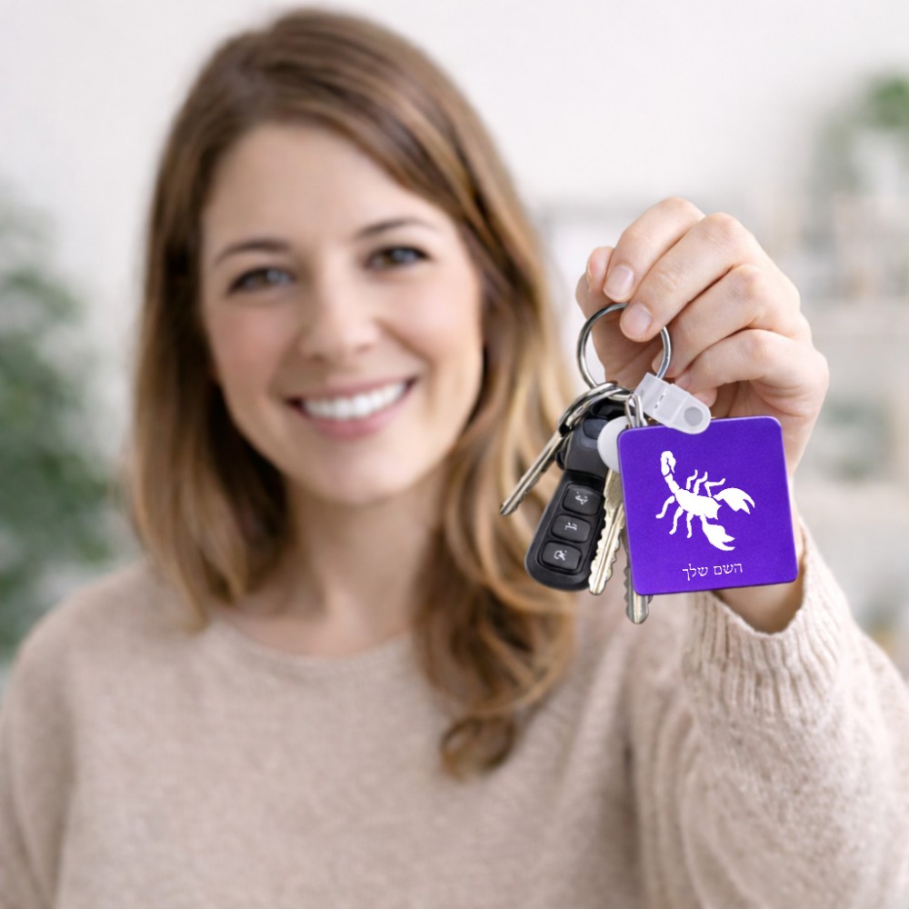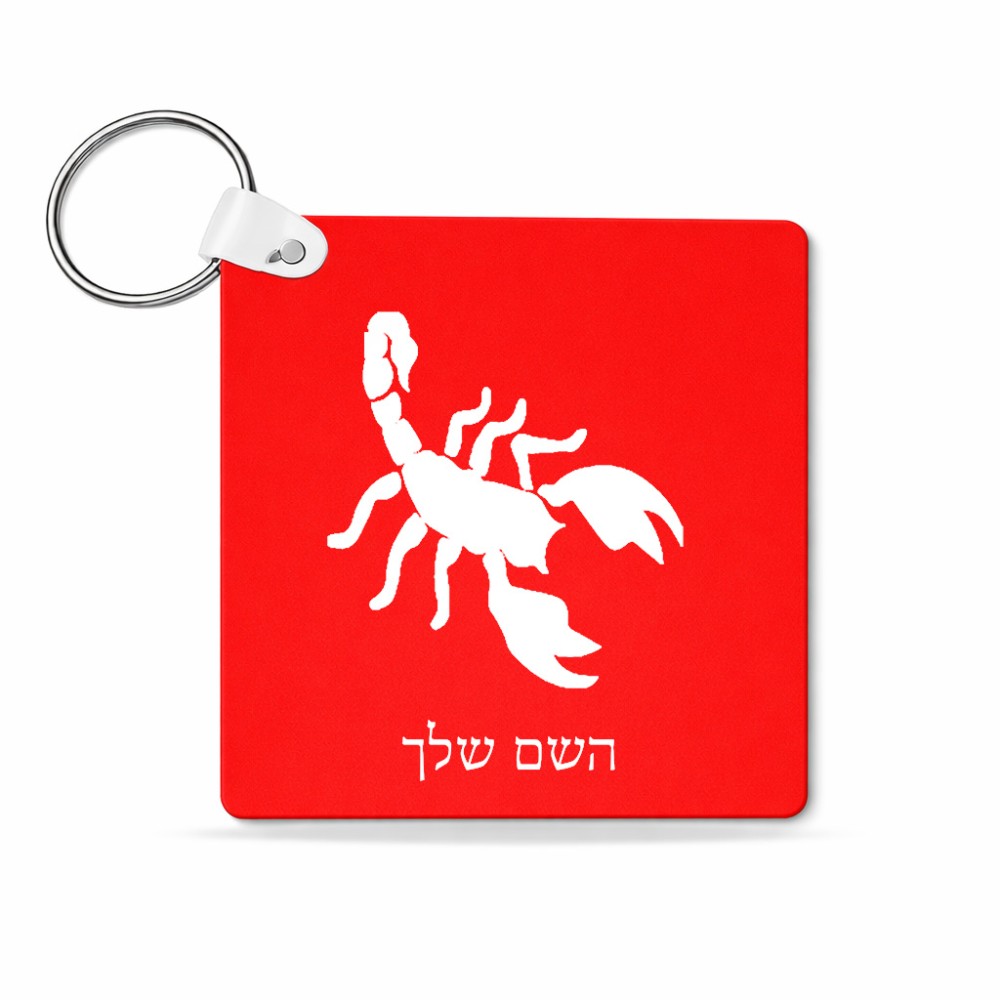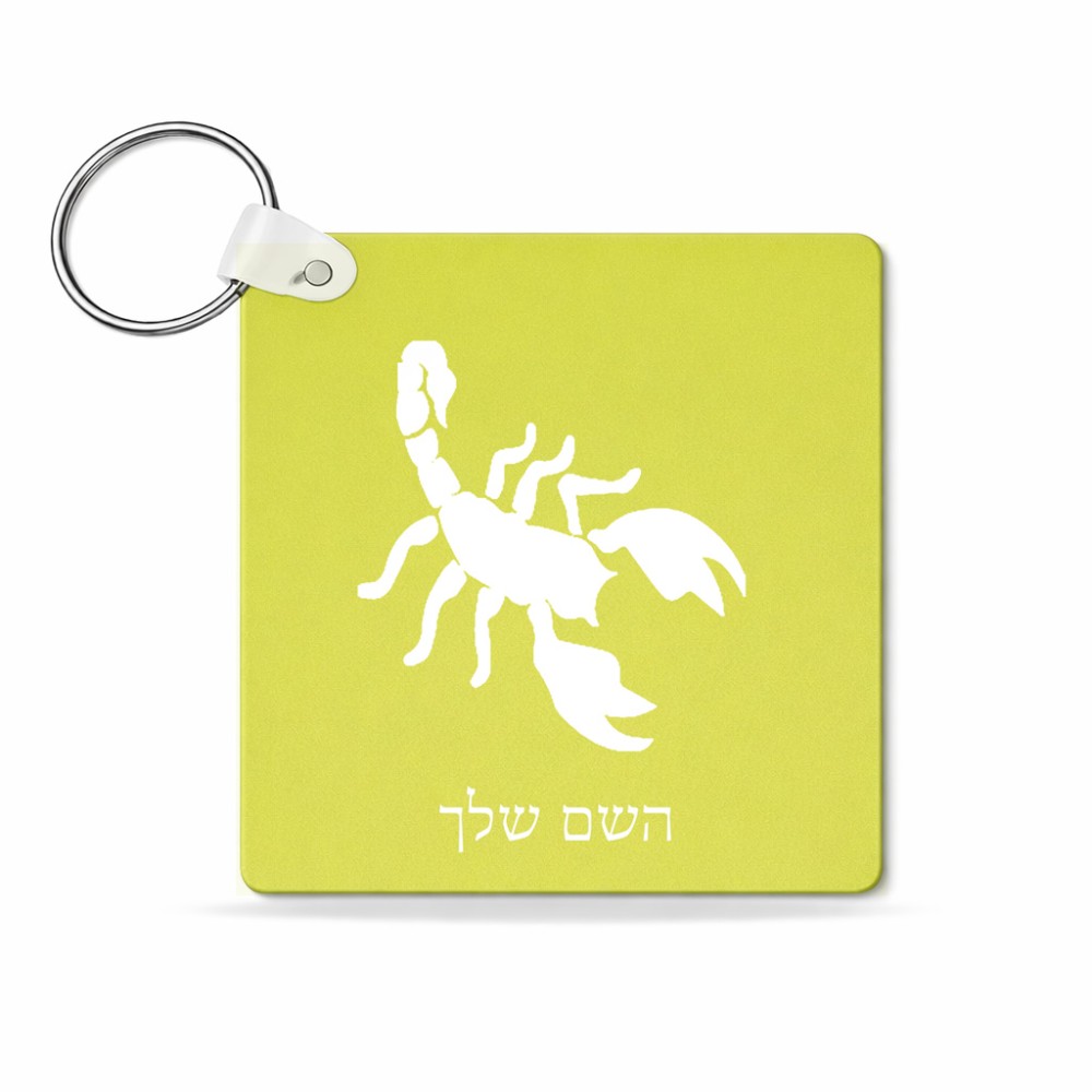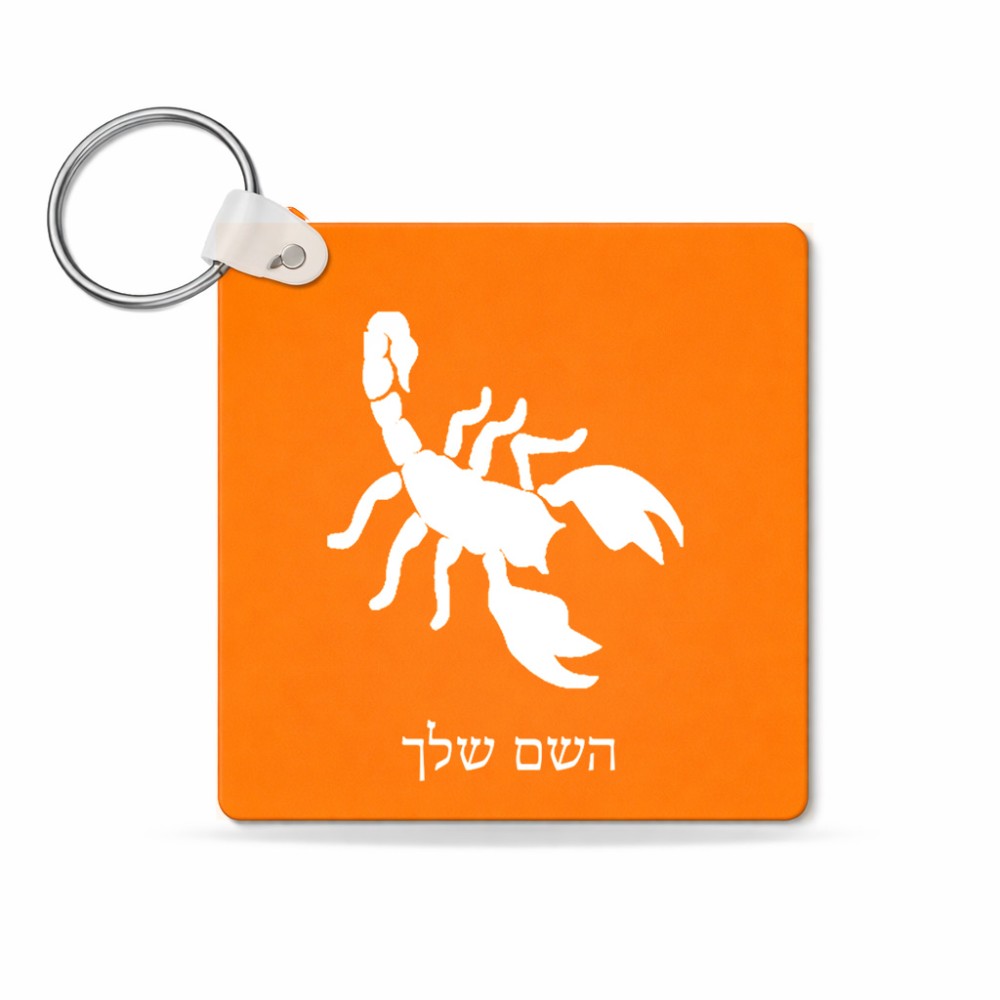 מחזיק מפתחות בצורת ריבוע בעיצוב אישי עם השם שלך בעיצוב עקרב גודל המחזיק 5 × 5 ס"מ. את השם המבוקש ניתן לציין בהזמנה, אם לא צויין אנחנו ניצור קשר לבירור.