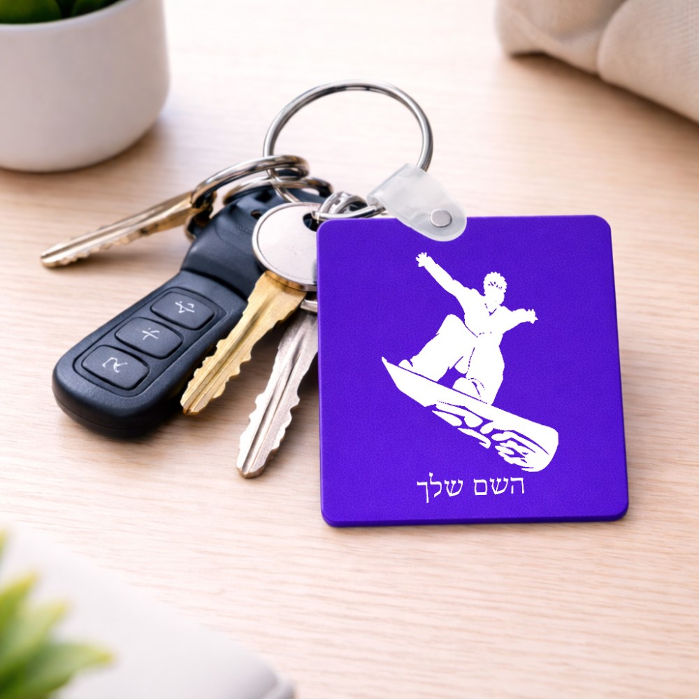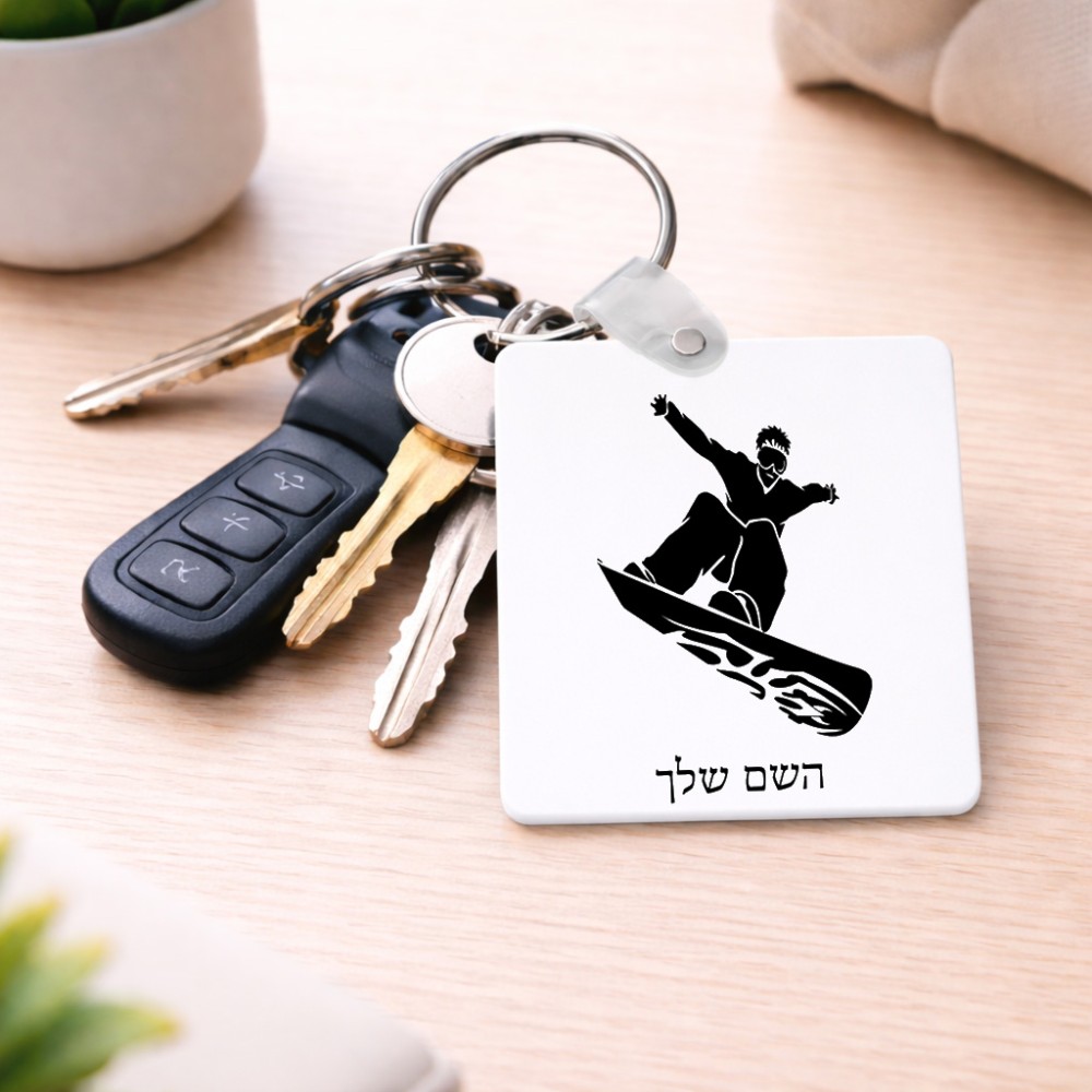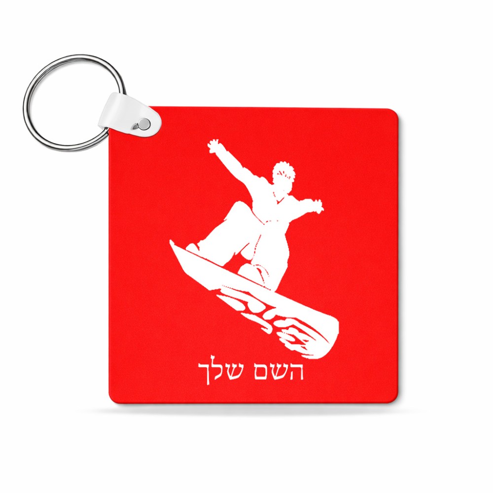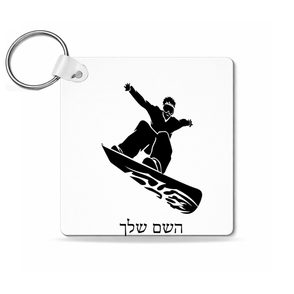 מחזיק מפתחות בצורת ריבוע בעיצוב אישי עם השם שלך בעיצוב סנובורדיסט גודל המחזיק 5 × 5 ס"מ. את השם המבוקש ניתן לציין בהזמנה, אם לא צויין אנחנו ניצור קשר לבירור.