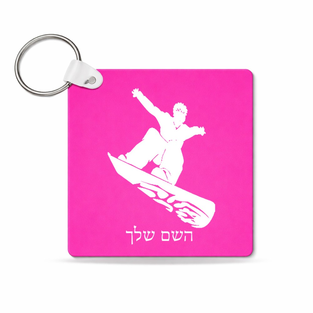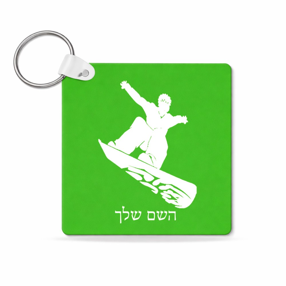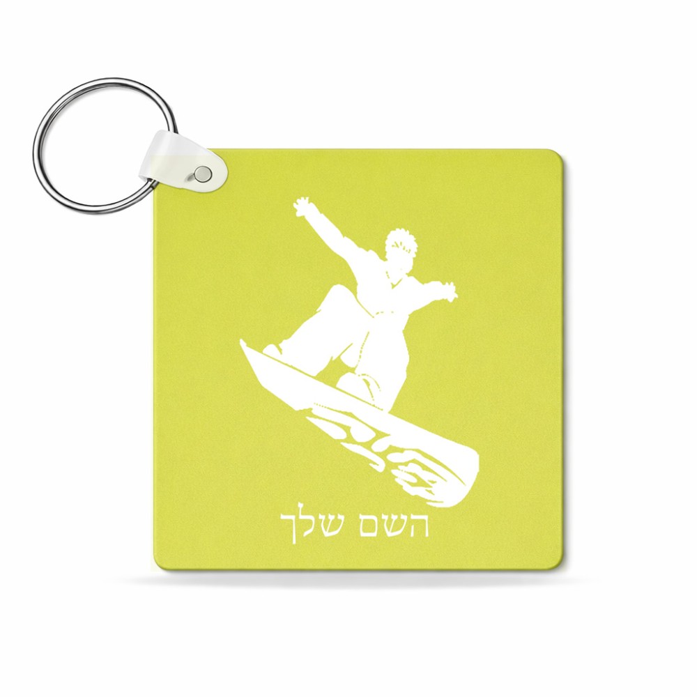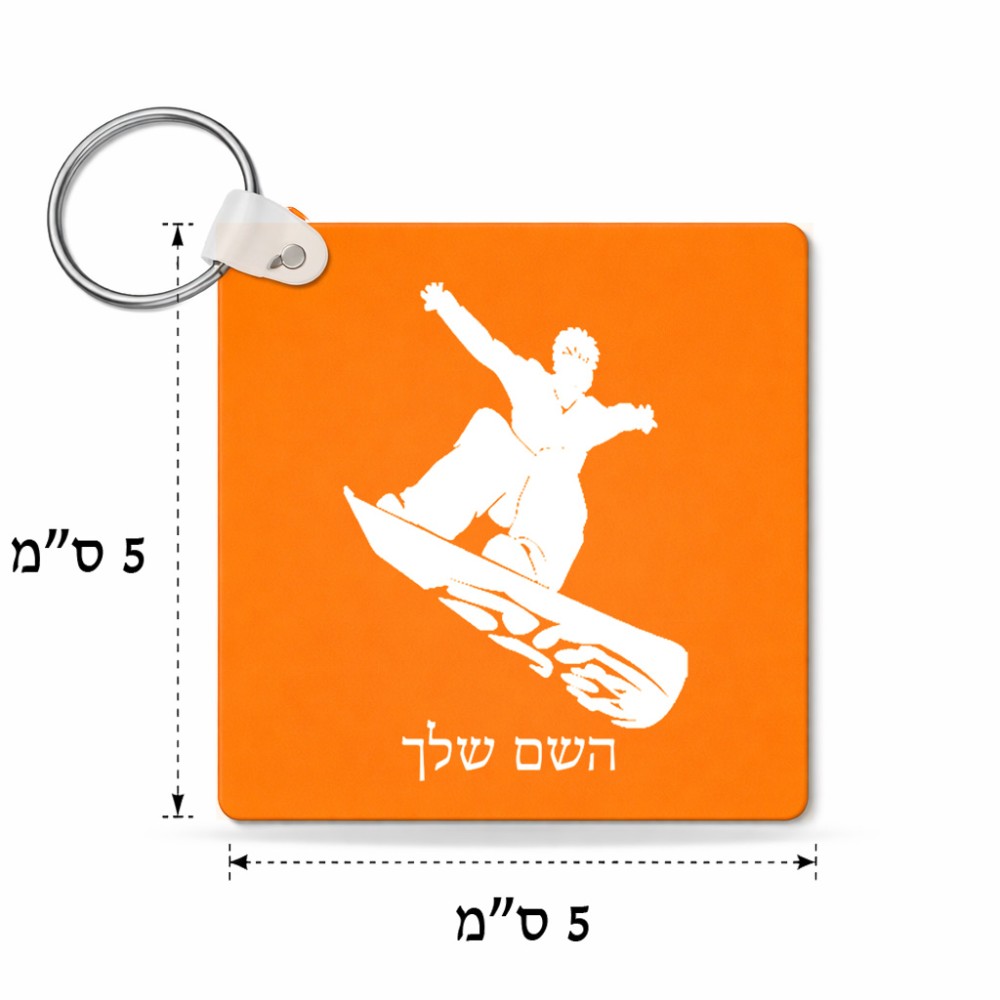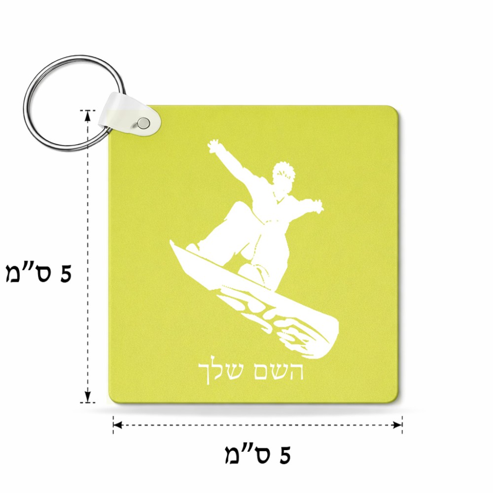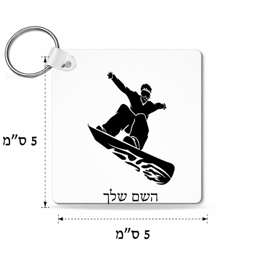 מחזיק מפתחות בצורת ריבוע בעיצוב אישי עם השם שלך בעיצוב סנובורדיסט גודל המחזיק 5 × 5 ס"מ