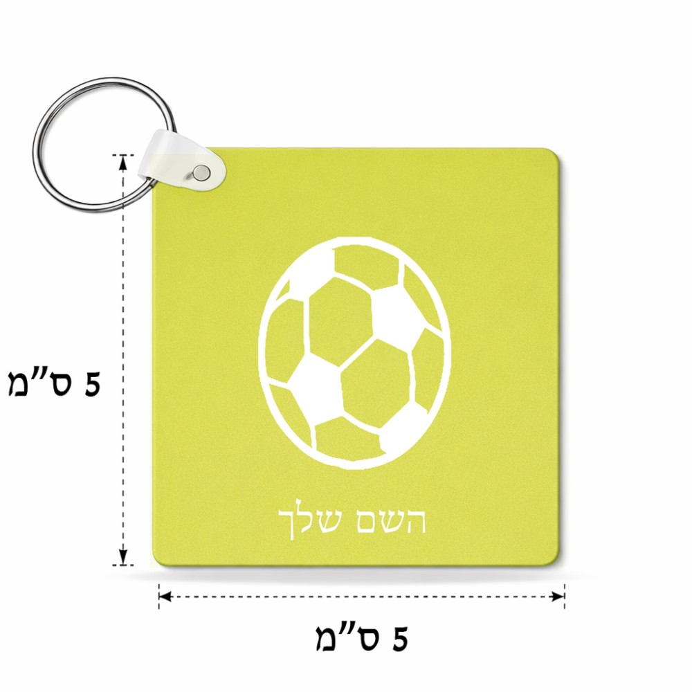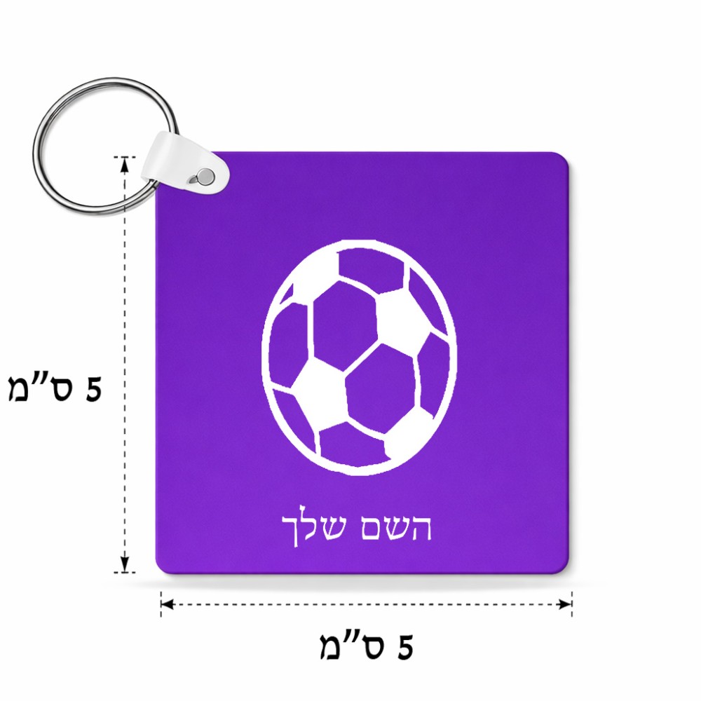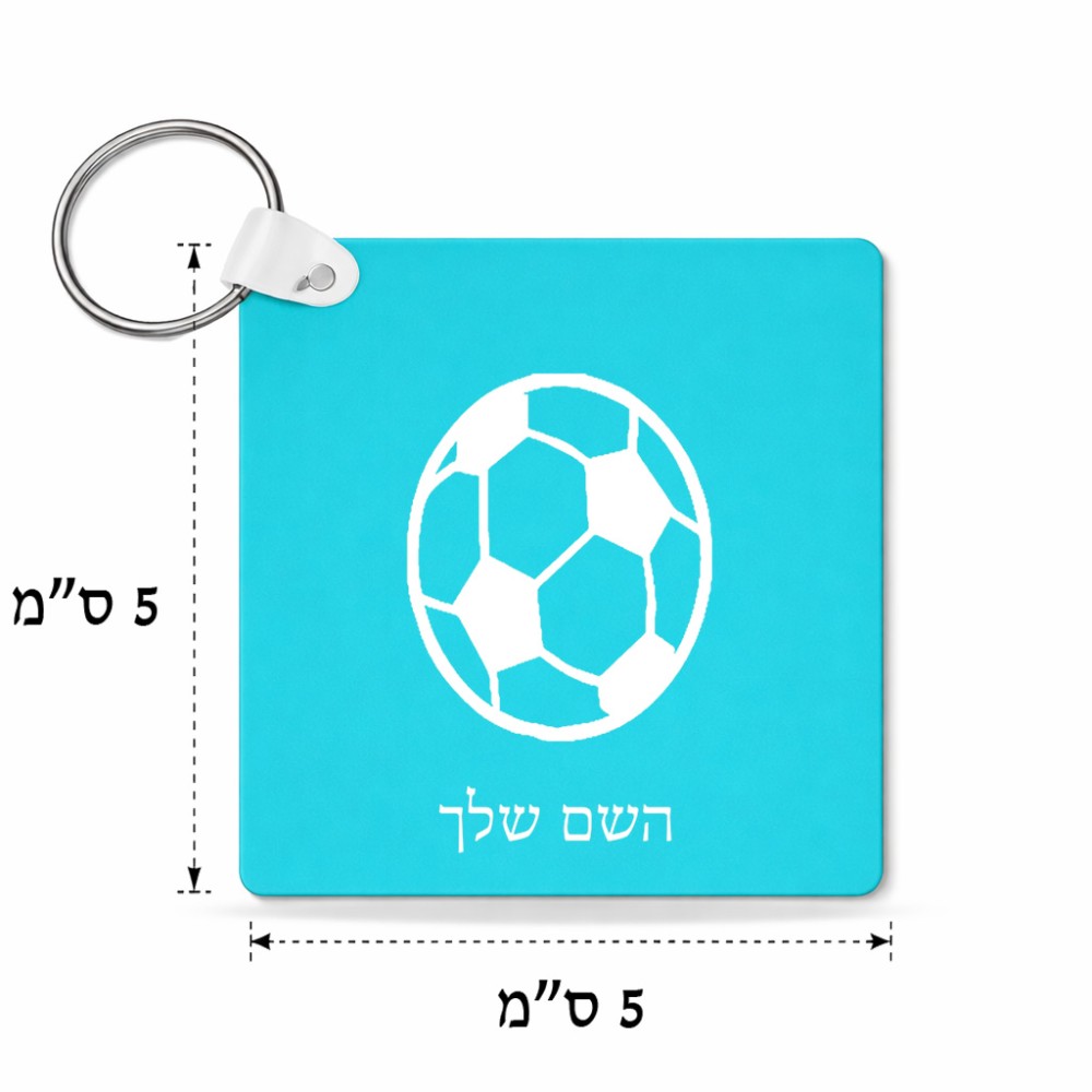 מחזיק מפתחות בצורת ריבוע בעיצוב אישי עם השם שלך בעיצוב כדורגל כדור כדורגל גודל המחזיק 5 × 5 ס"מ. את השם המבוקש ניתן לציין בהזמנה, אם לא צויין אנחנו ניצור קשר לבירור.