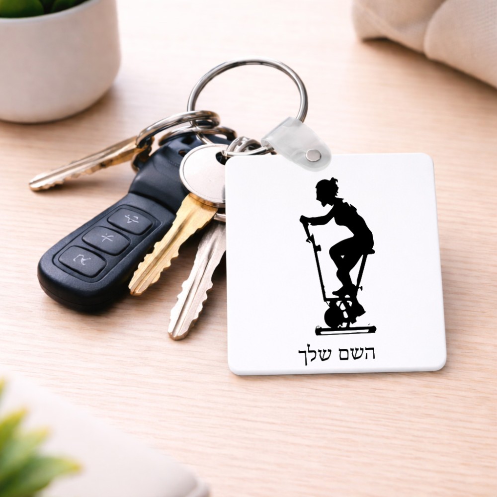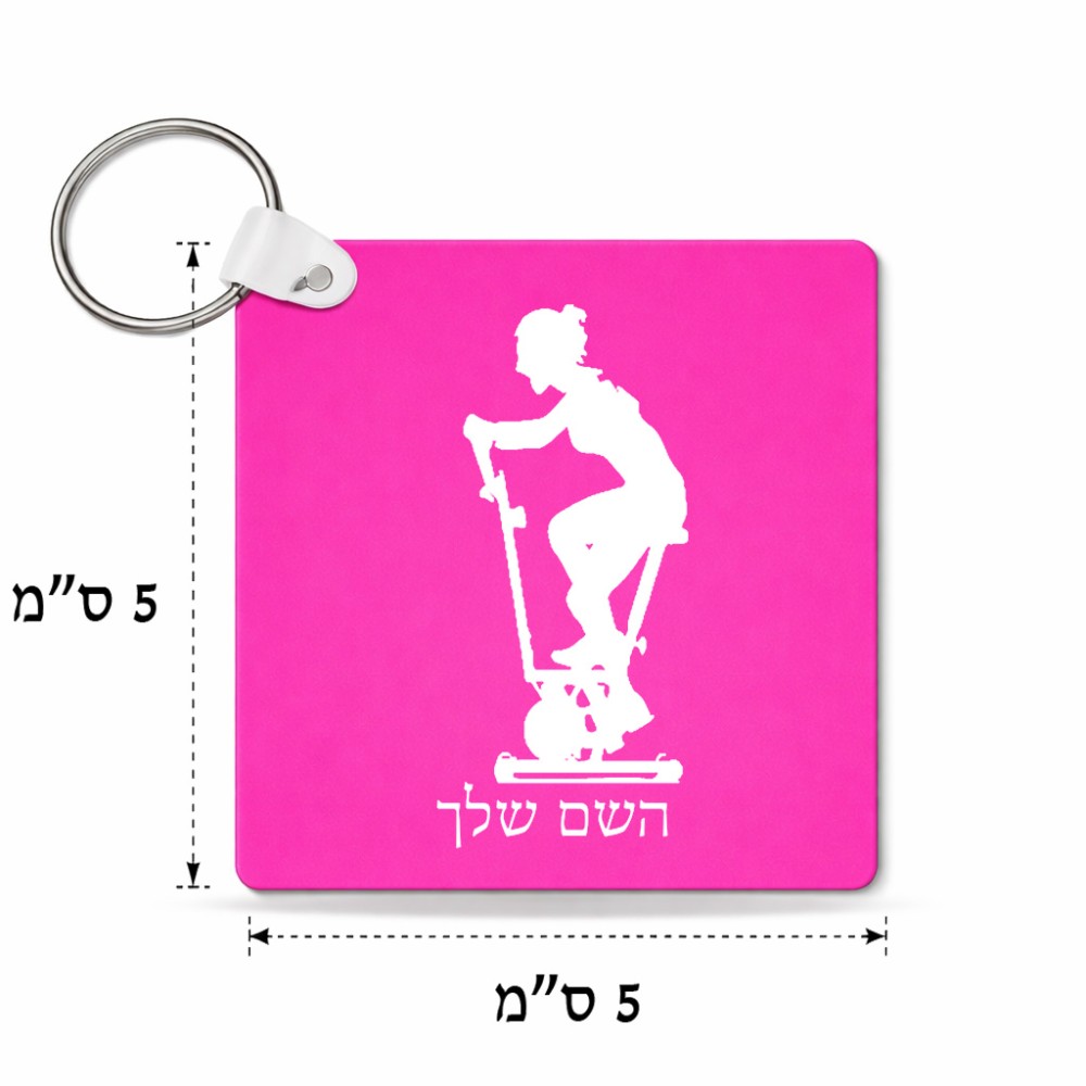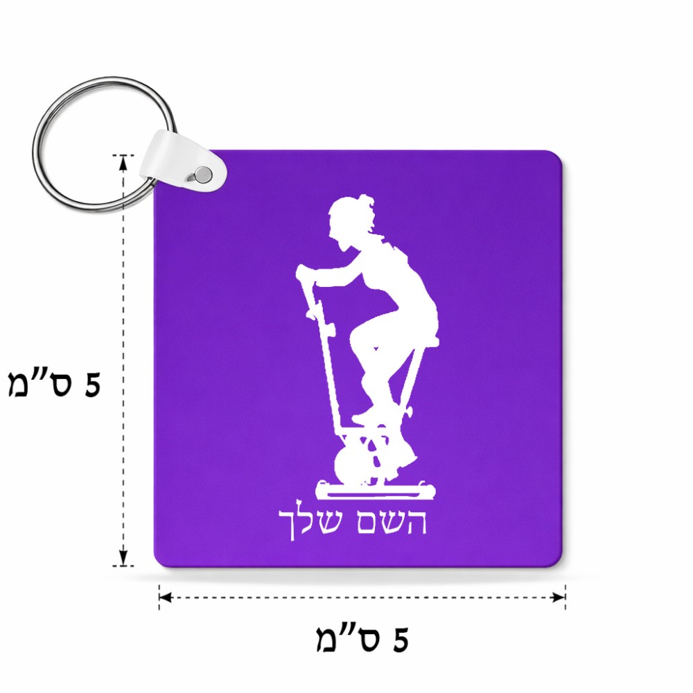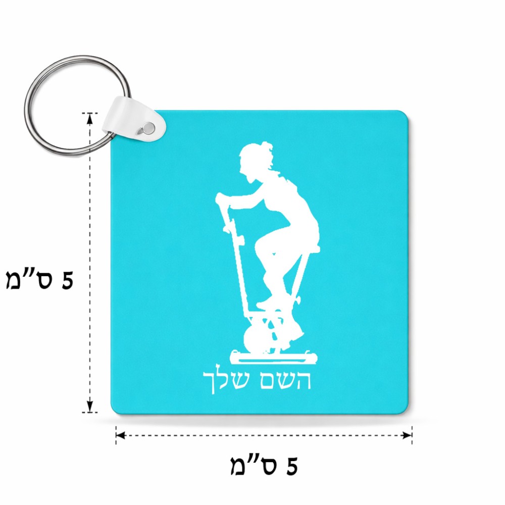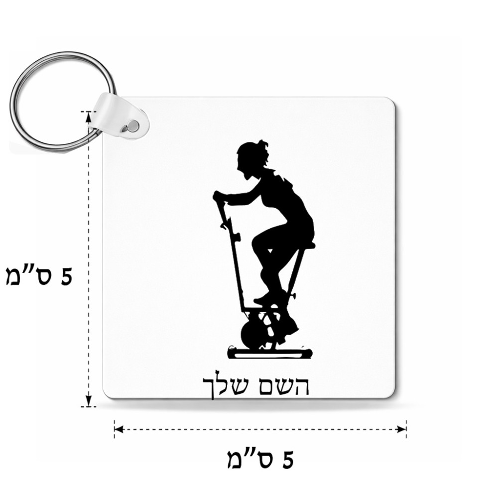 מחזיק מפתחות בצורת ריבוע בעיצוב אישי עם השם שלך בעיצוב אימון ספינינג - אישה גודל המחזיק 5 × 5 ס"מ. את השם המבוקש ניתן לציין בהזמנה, אם לא צויין אנחנו ניצור קשר לבירור.