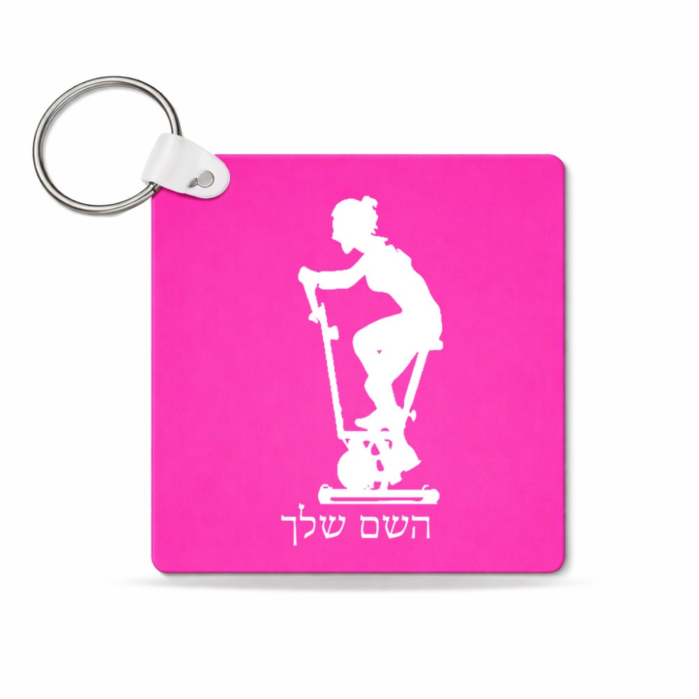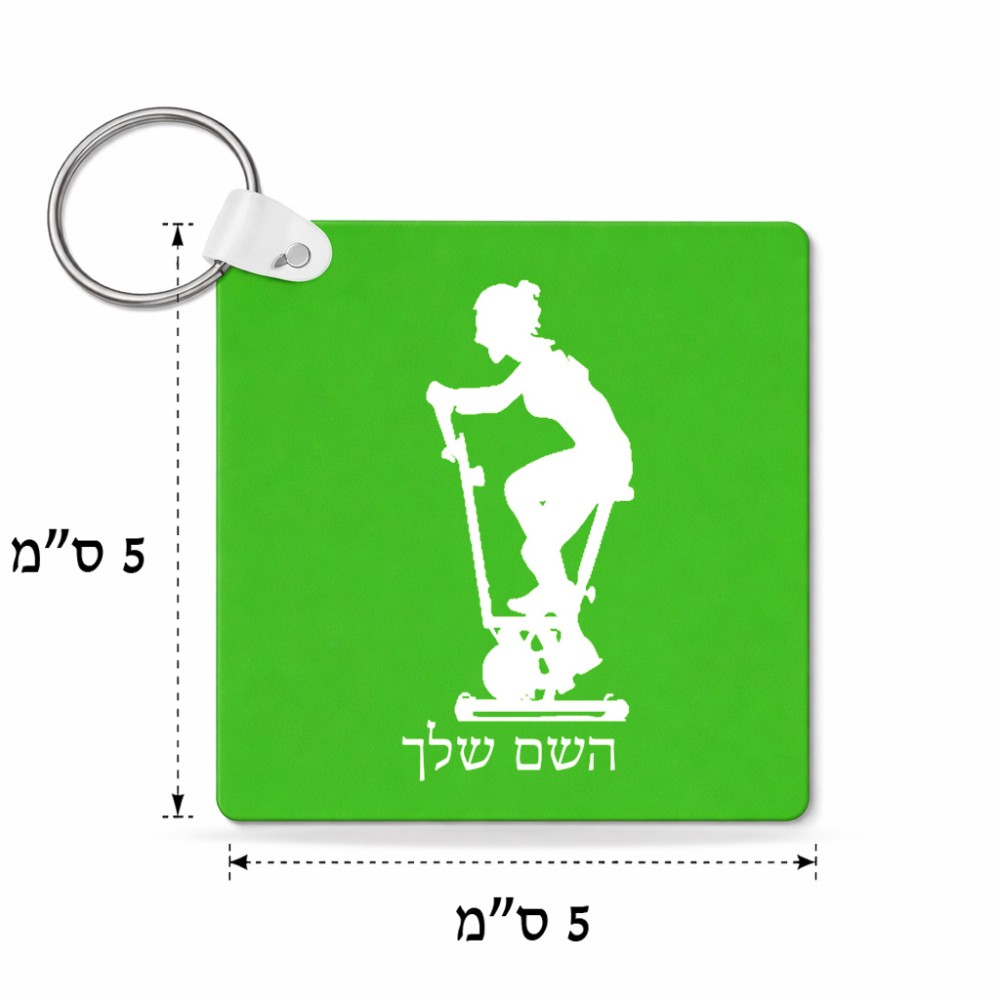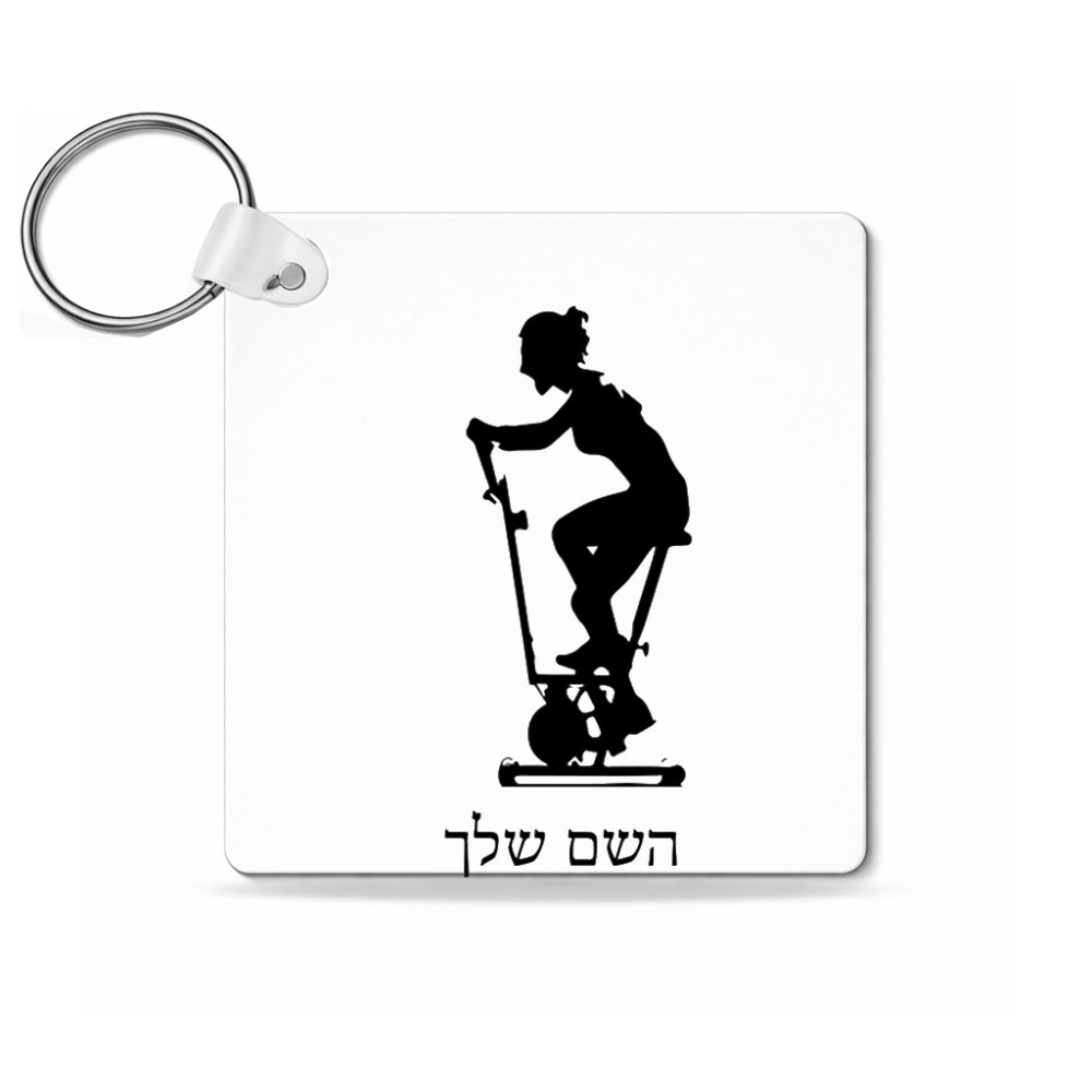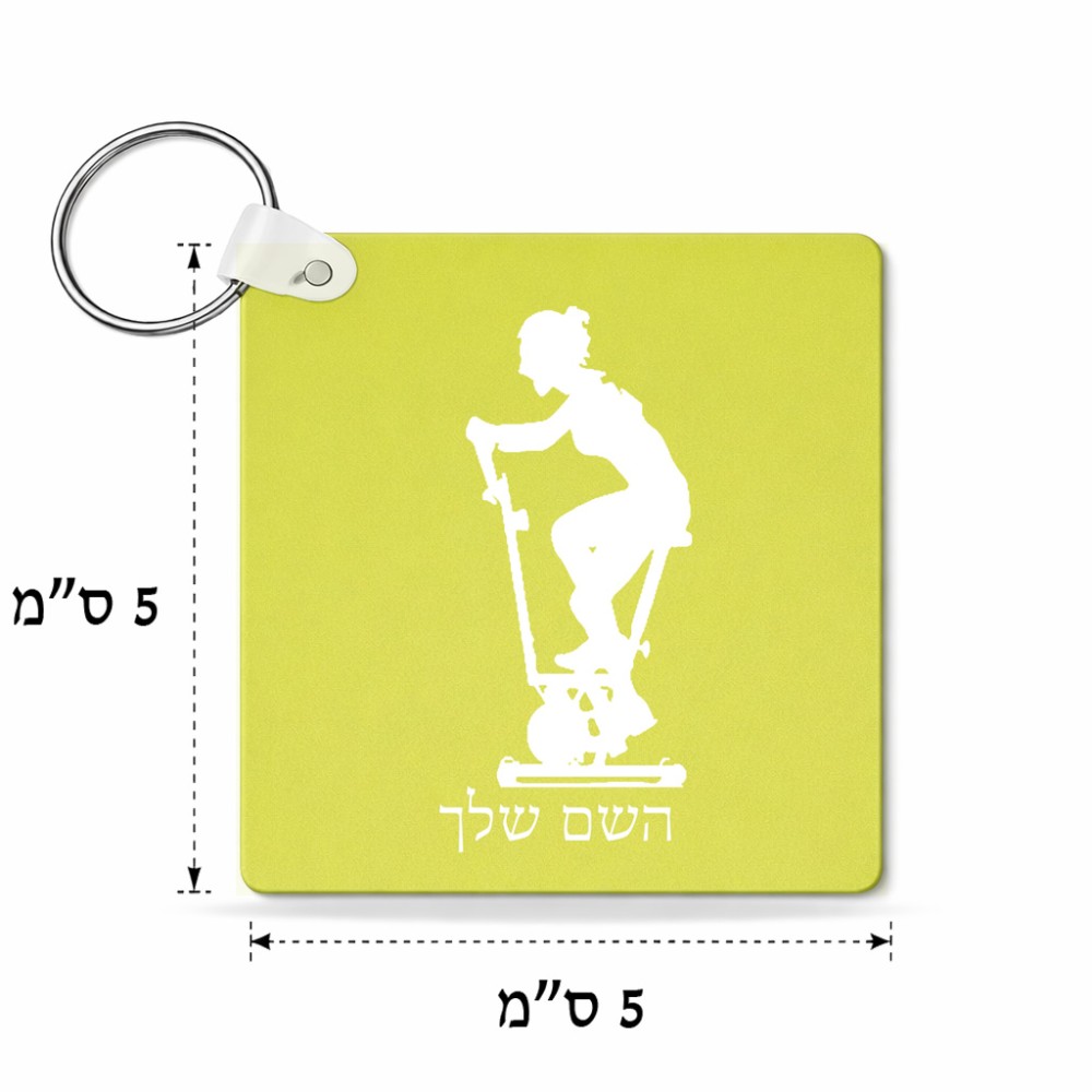 מחזיק מפתחות בצורת ריבוע בעיצוב אישי עם השם שלך בעיצוב אימון ספינינג - אישה גודל המחזיק 5 × 5 ס"מ. את השם המבוקש ניתן לציין בהזמנה, אם לא צויין אנחנו ניצור קשר לבירור.