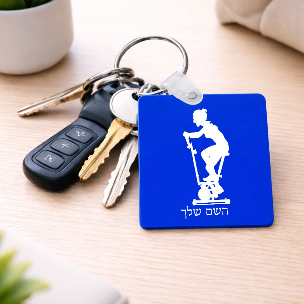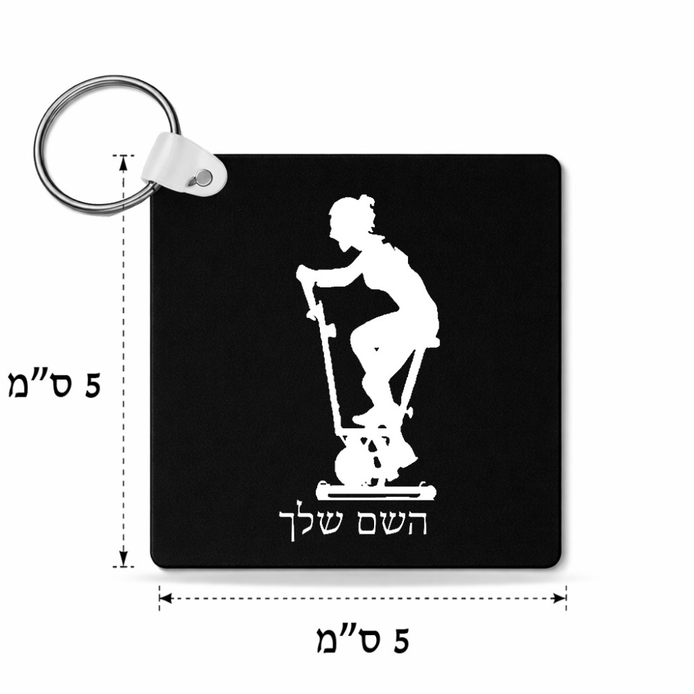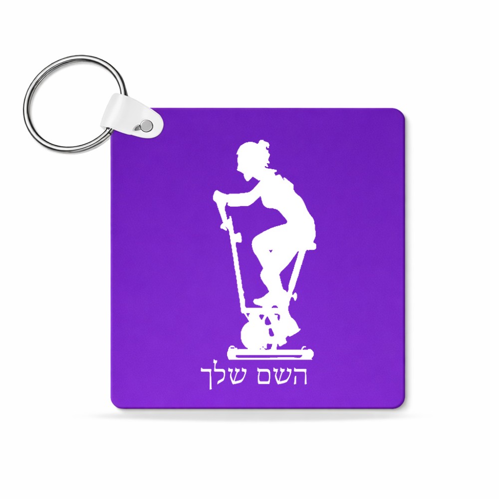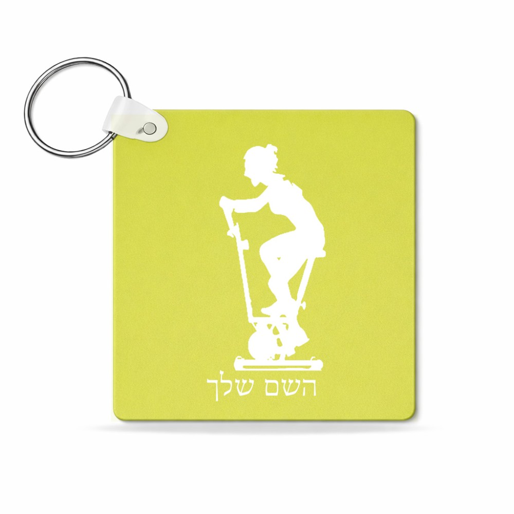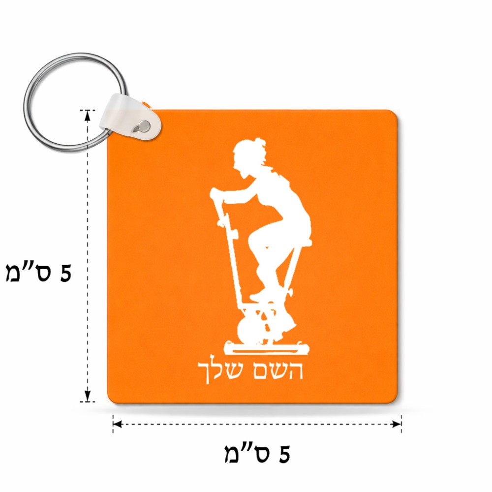 מחזיק מפתחות בצורת ריבוע בעיצוב אישי עם השם שלך בעיצוב אימון ספינינג - אישה גודל המחזיק 5 × 5 ס"מ. את השם המבוקש ניתן לציין בהזמנה, אם לא צויין אנחנו ניצור קשר לבירור.