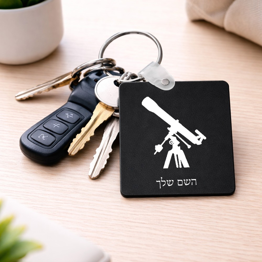 מחזיק מפתחות בצורת ריבוע בעיצוב אישי עם השם שלך בעיצוב טלסקופ גודל המחזיק 5 × 5 ס"מ. את השם המבוקש ניתן לציין בהזמנה, אם לא צויין אנחנו ניצור קשר לבירור.