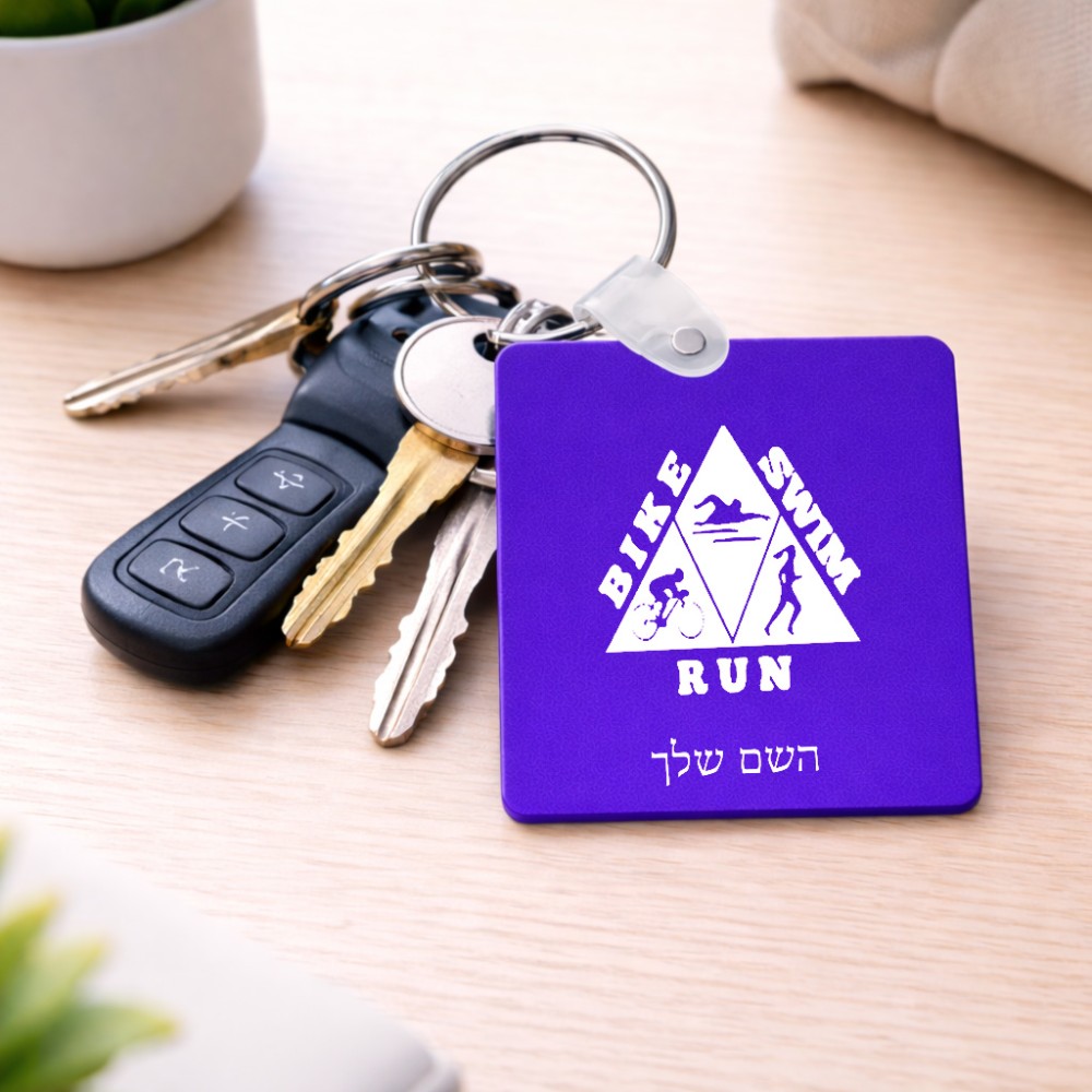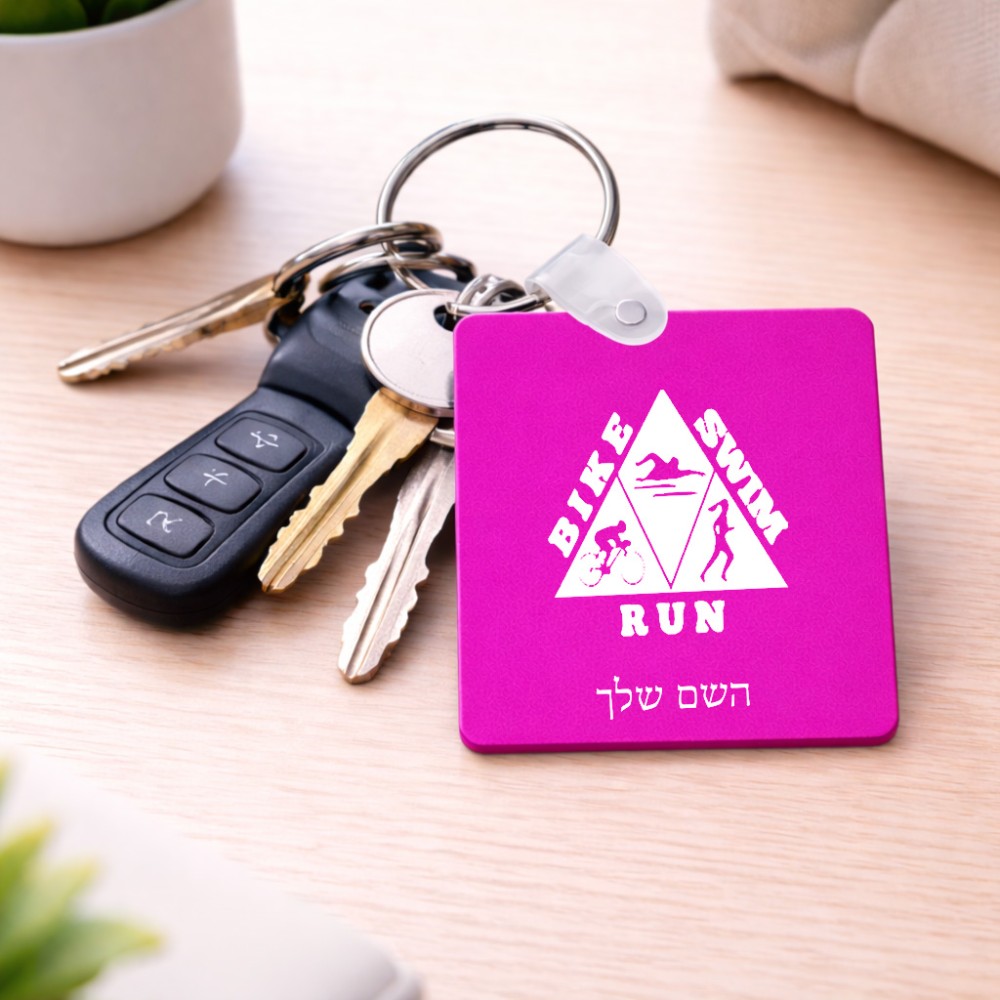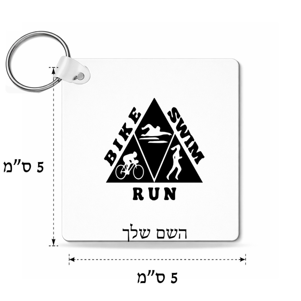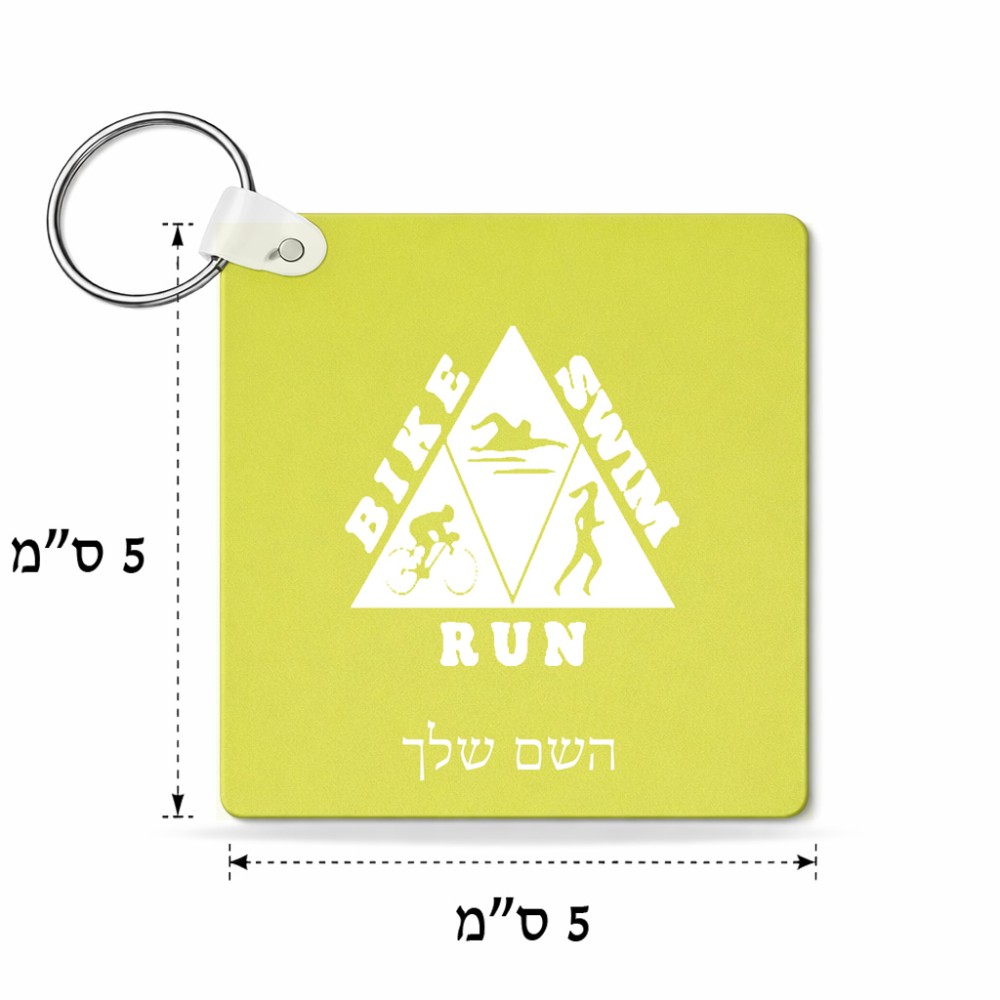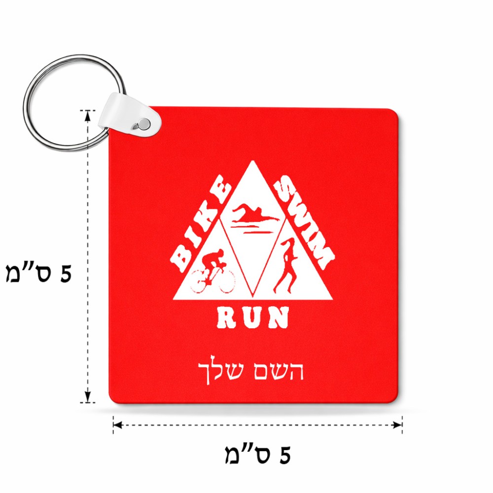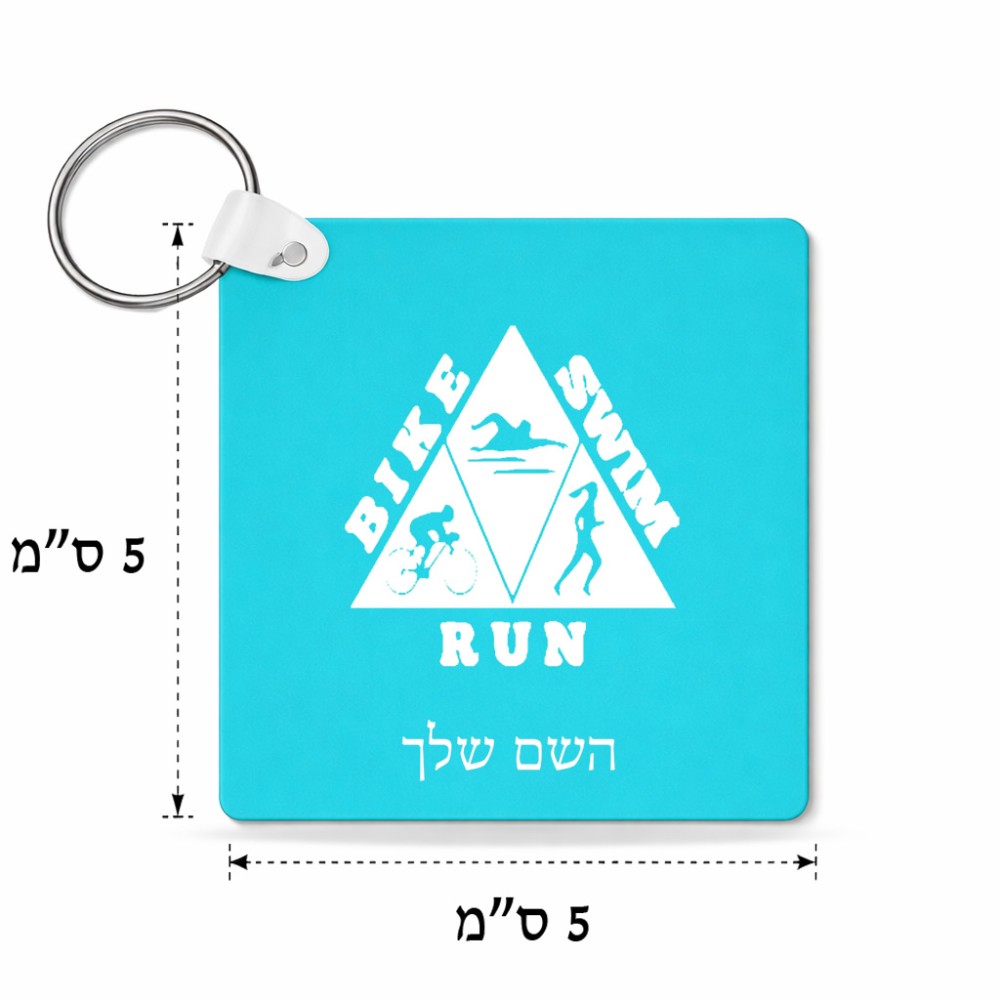 מחזיק מפתחות בצורת ריבוע בעיצוב אישי עם השם שלך בעיצוב טריאתלון גודל המחזיק 5 × 5 ס"מ. את השם המבוקש ניתן לציין בהזמנה, אם לא צויין אנחנו ניצור קשר לבירור.