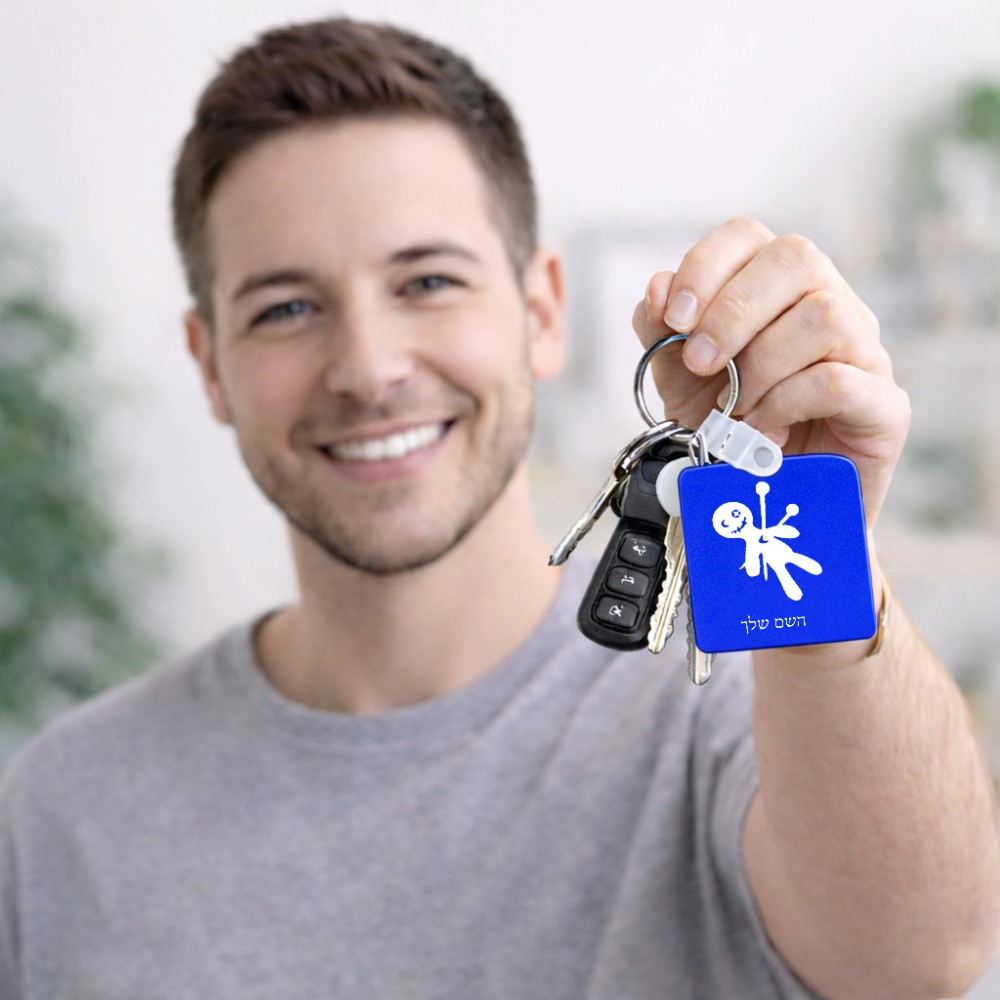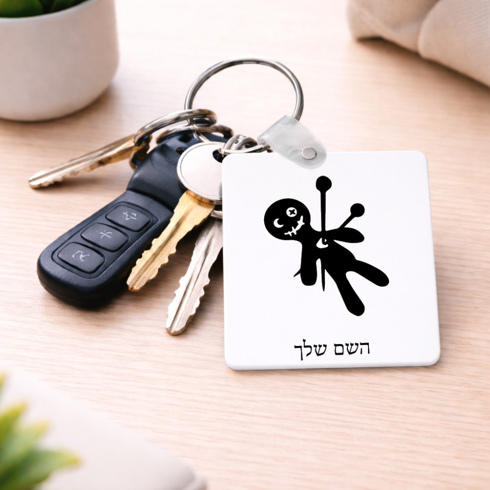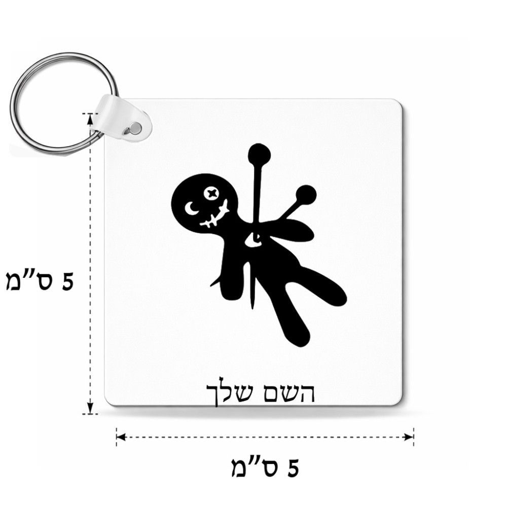 מחזיק מפתחות בצורת ריבוע בעיצוב אישי עם השם שלך בעיצוב וודו גודל המחזיק 5 × 5 ס"מ. את השם המבוקש ניתן לציין בהזמנה, אם לא צויין אנחנו ניצור קשר לבירור.