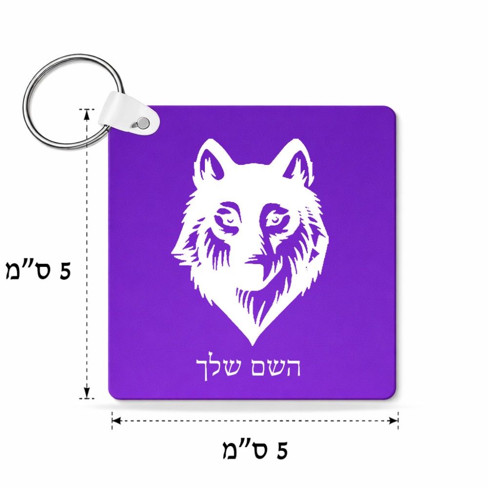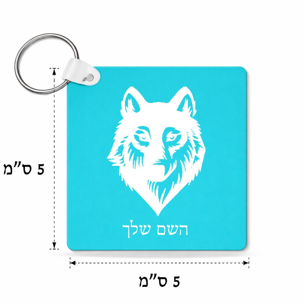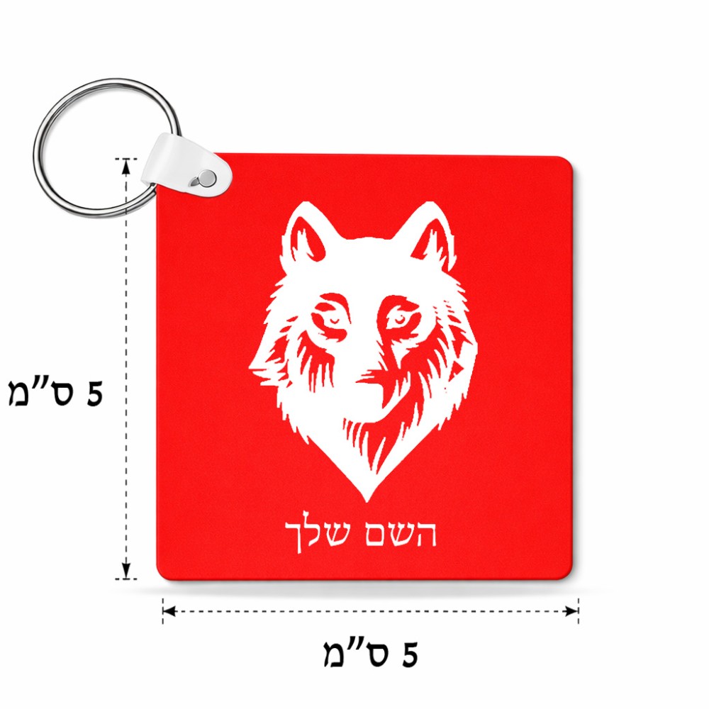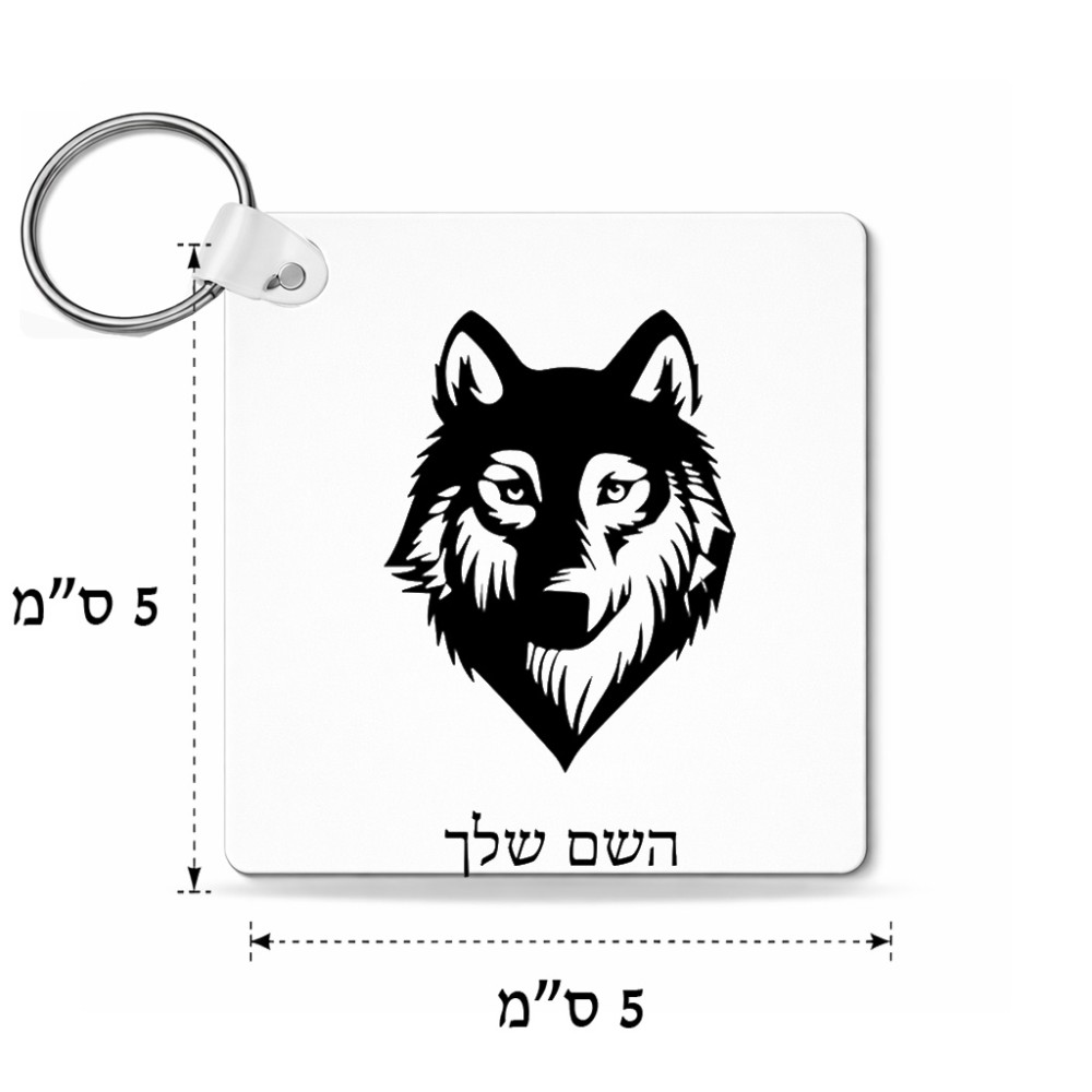 מחזיק מפתחות בצורת ריבוע בעיצוב אישי עם השם שלך בעיצוב זאב גודל המחזיק 5 × 5 ס"מ. את השם המבוקש ניתן לציין בהזמנה, אם לא צויין אנחנו ניצור קשר לבירור.