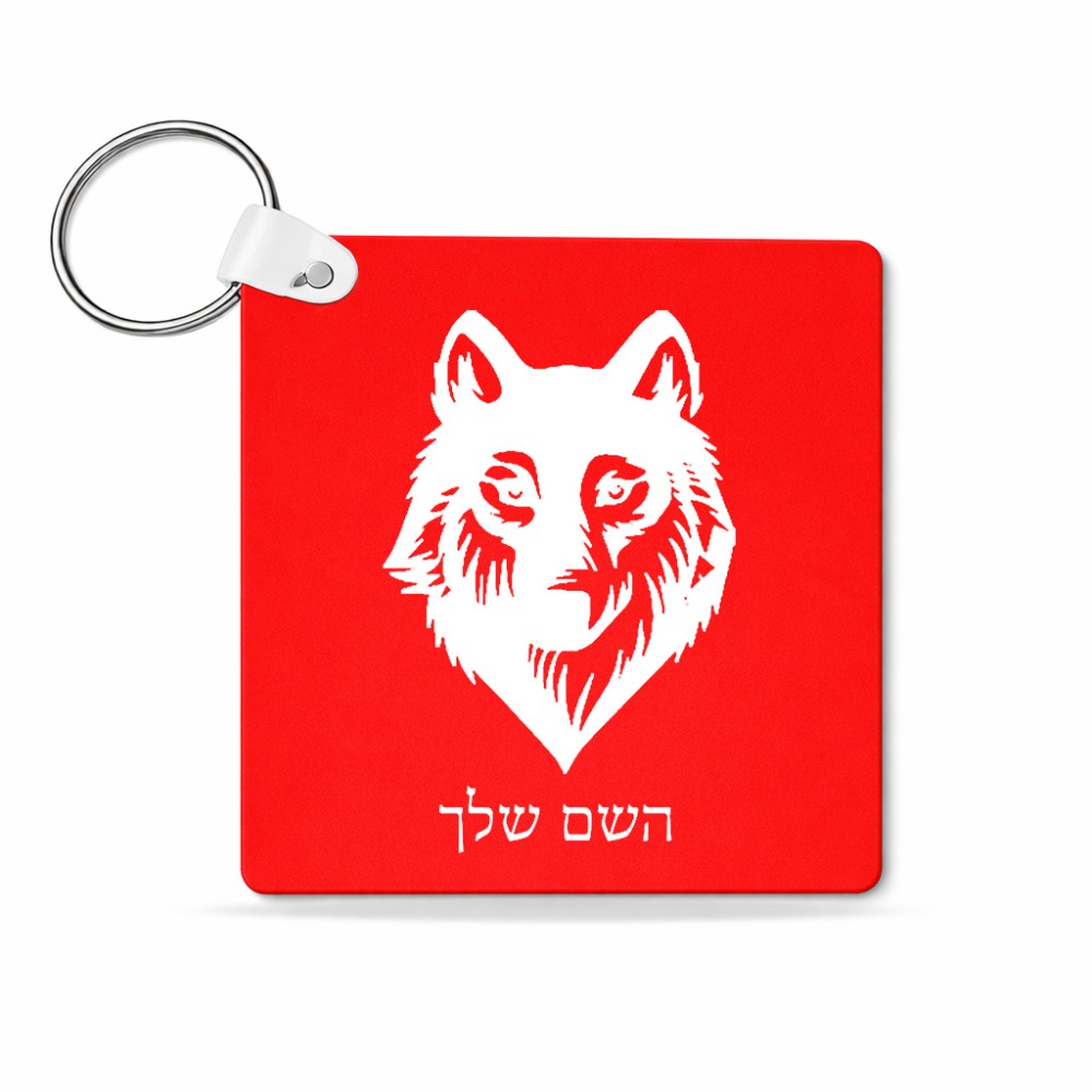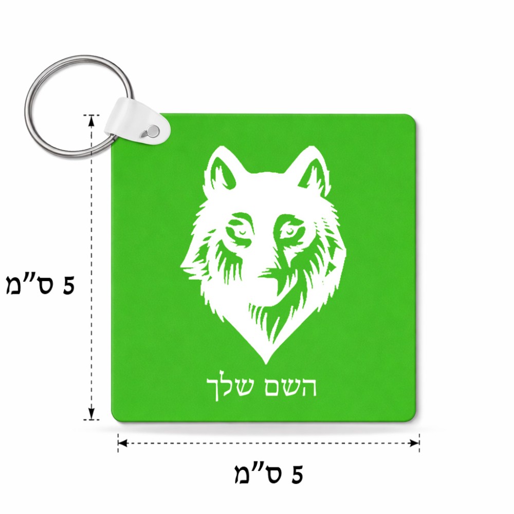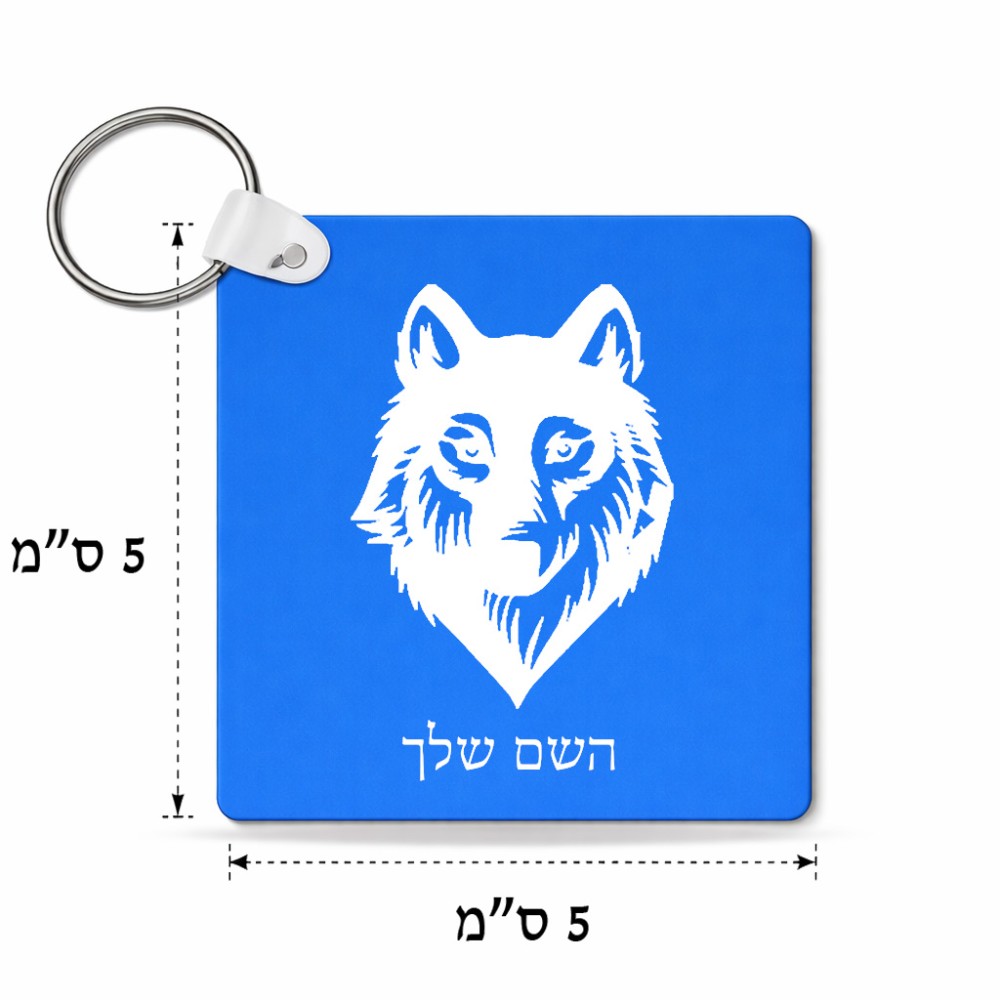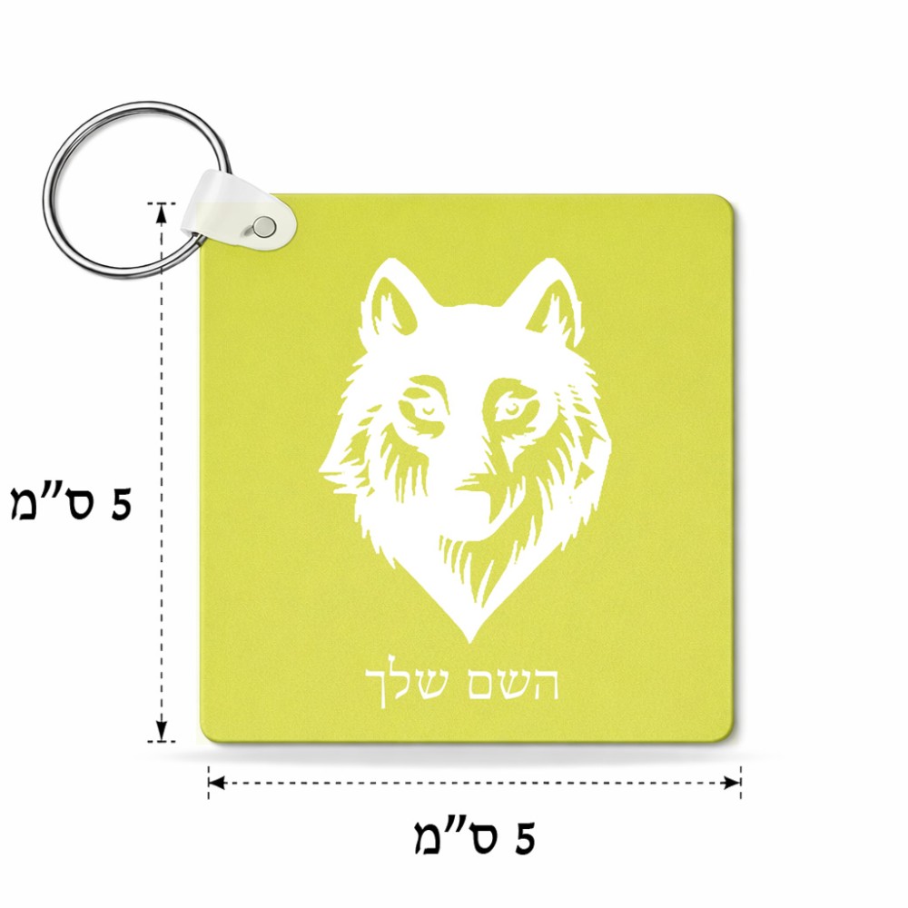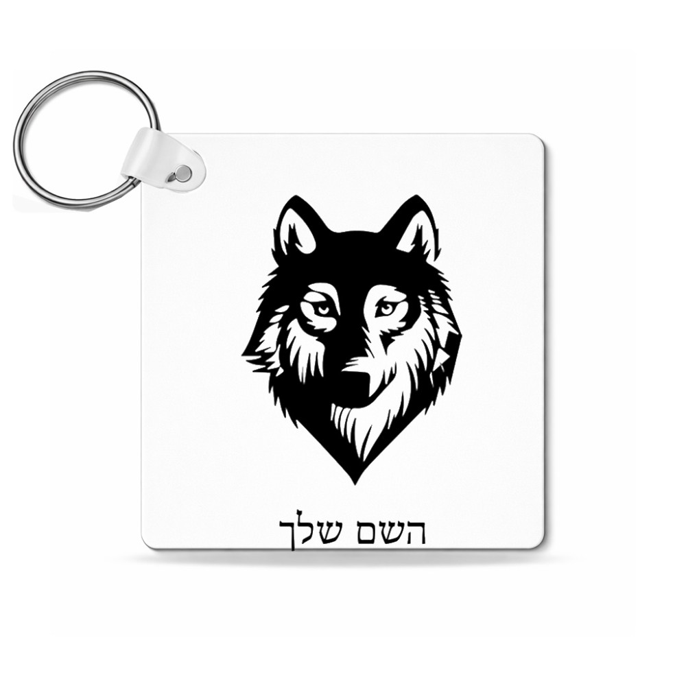 מחזיק מפתחות בצורת ריבוע בעיצוב אישי עם השם שלך בעיצוב זאב גודל המחזיק 5 × 5 ס"מ. את השם המבוקש ניתן לציין בהזמנה, אם לא צויין אנחנו ניצור קשר לבירור.