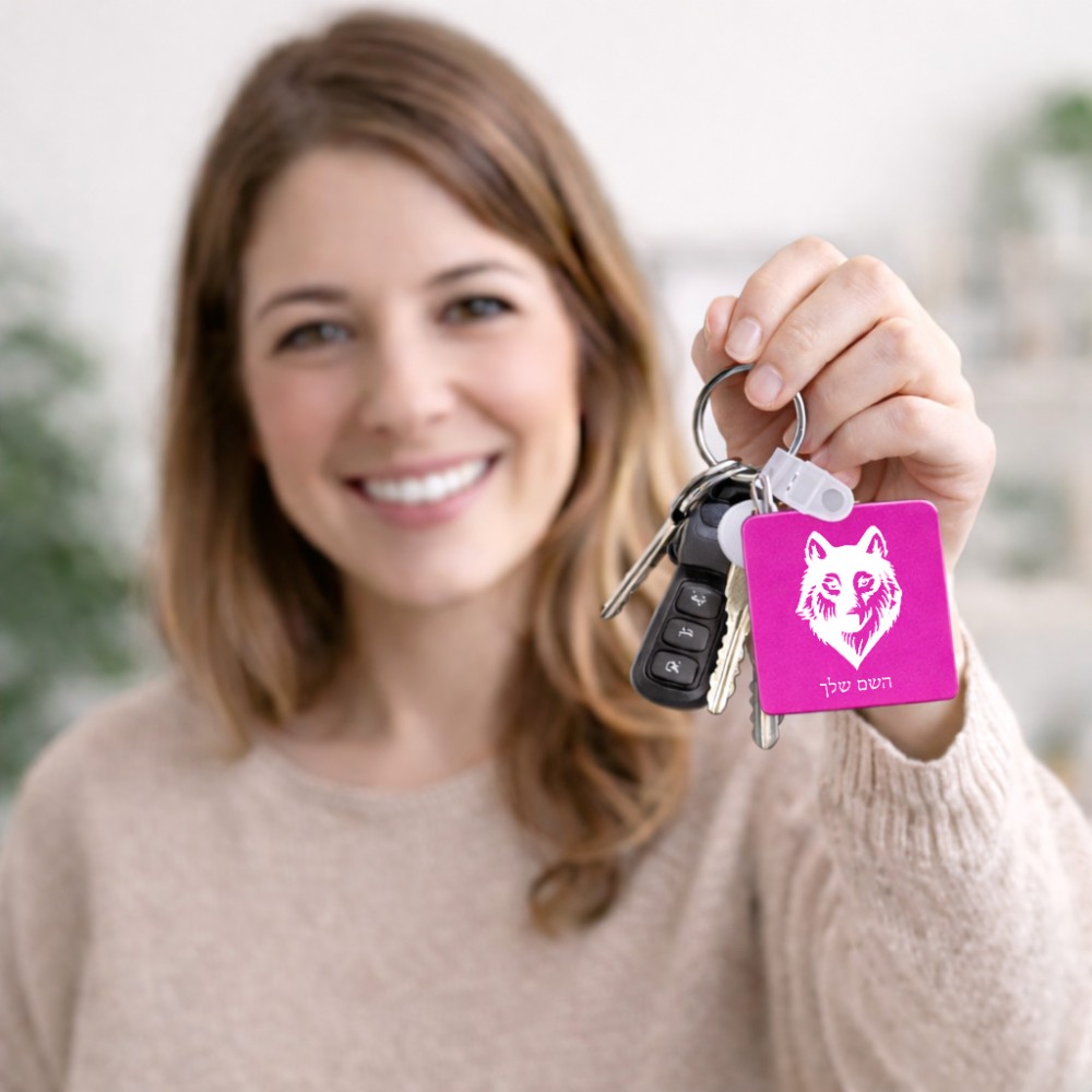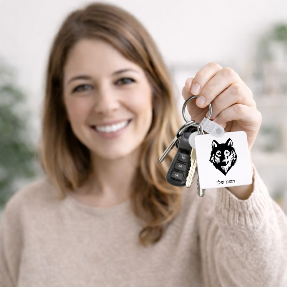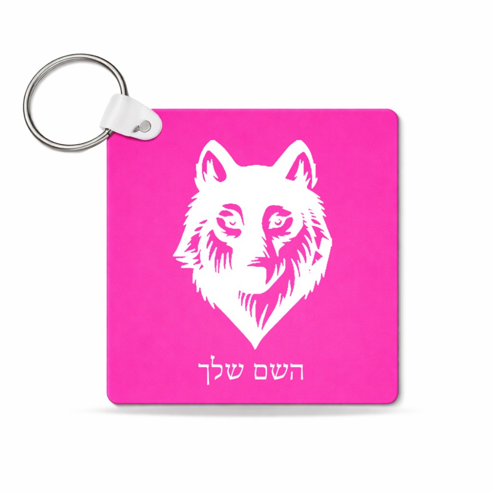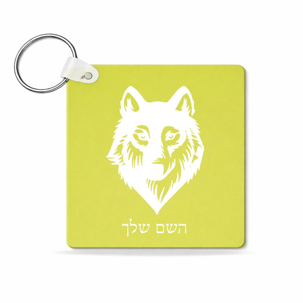 מחזיק מפתחות בצורת ריבוע בעיצוב אישי עם השם שלך בעיצוב זאב גודל המחזיק 5 × 5 ס"מ. את השם המבוקש ניתן לציין בהזמנה, אם לא צויין אנחנו ניצור קשר לבירור.