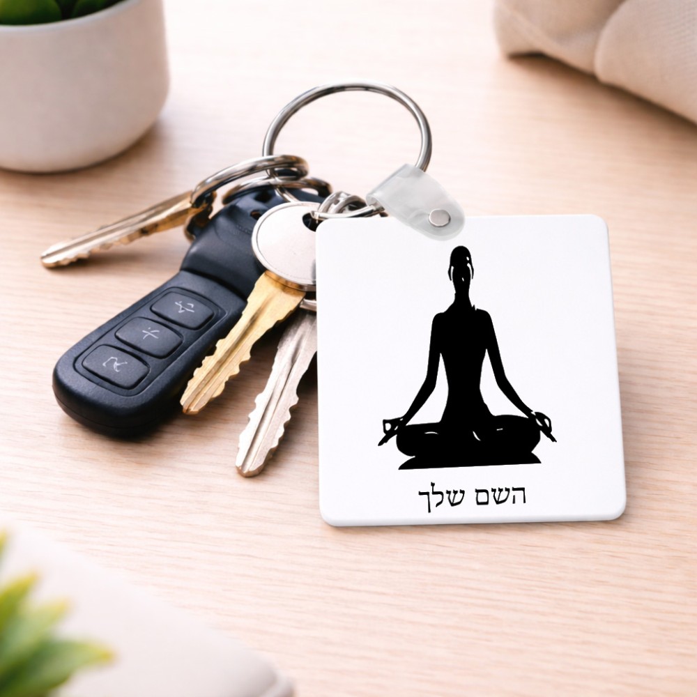 מחזיק מפתחות בצורת ריבוע בעיצוב אישי עם השם שלך בעיצוב אימון יוגה גודל המחזיק 5 × 5 ס"מ. את השם המבוקש ניתן לציין בהזמנה, אם לא צויין אנחנו ניצור קשר לבירור.