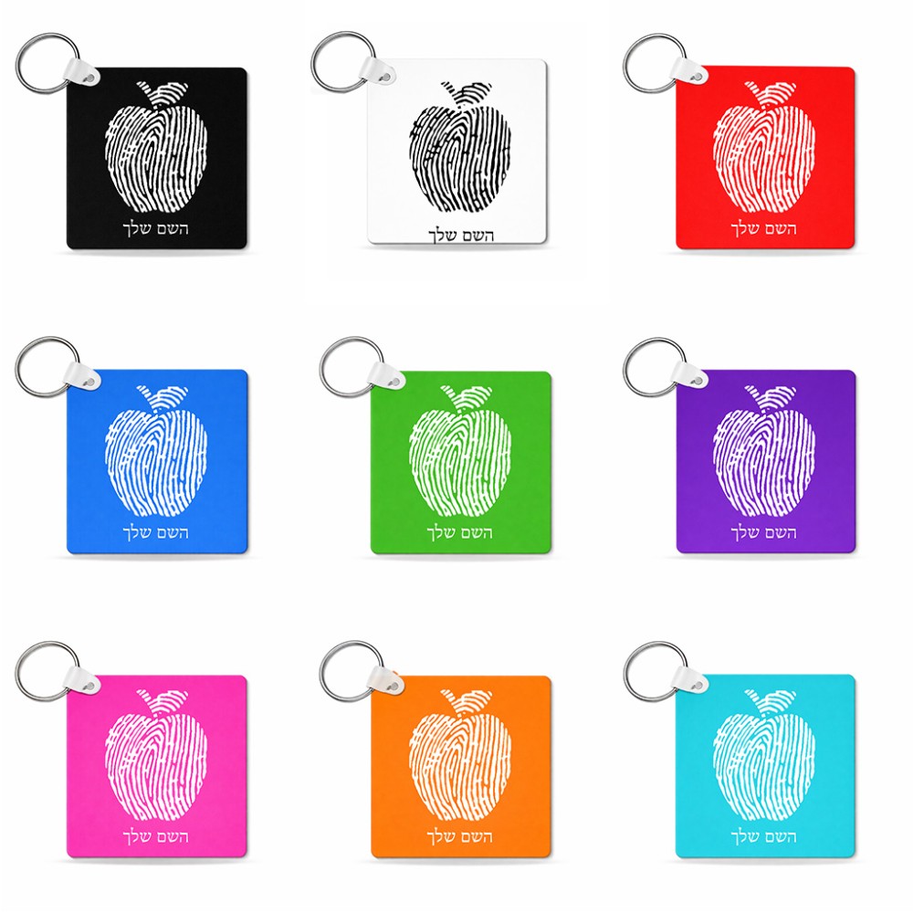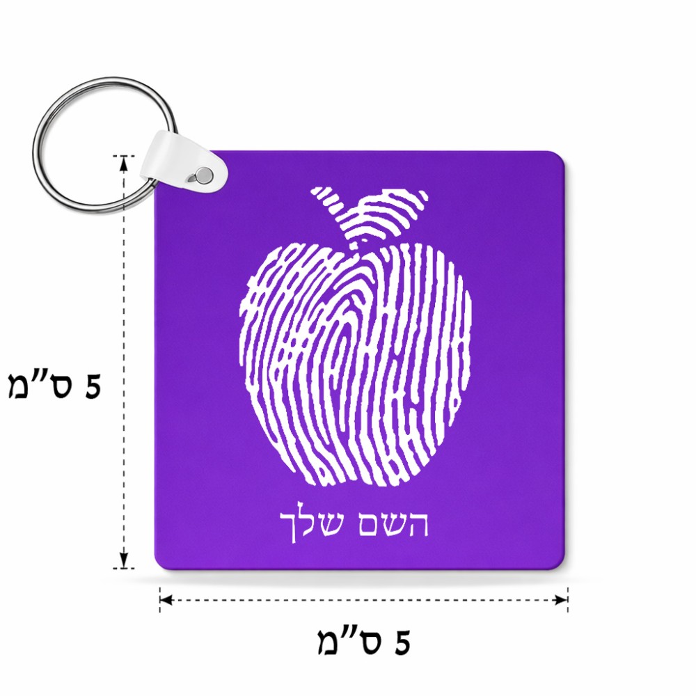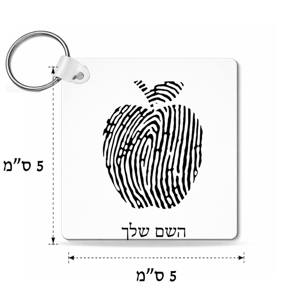מחזיק מפתחות בצורת ריבוע בעיצוב אישי עם השם שלך בעיצוב הדפס תפוח גודל המחזיק 5 × 5 ס"מ. את השם המבוקש ניתן לציין בהזמנה, אם לא צויין אנחנו ניצור קשר לבירור.