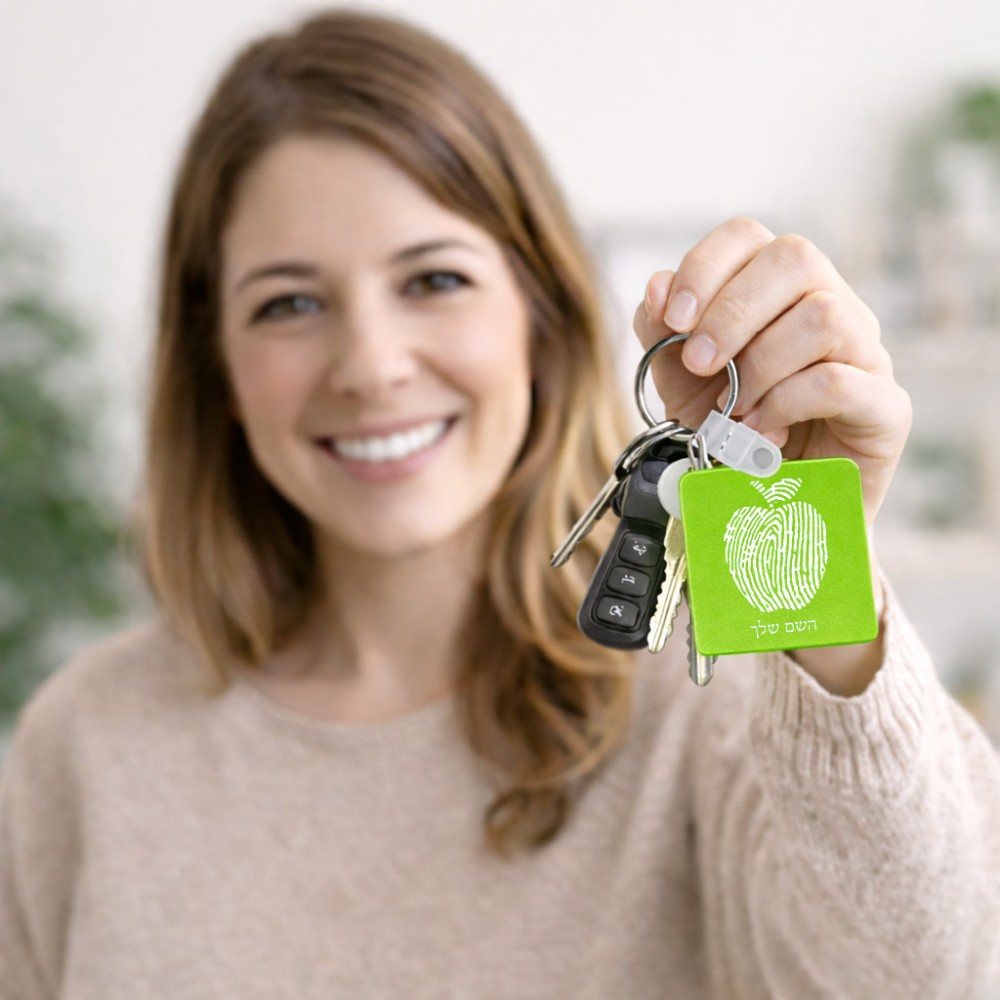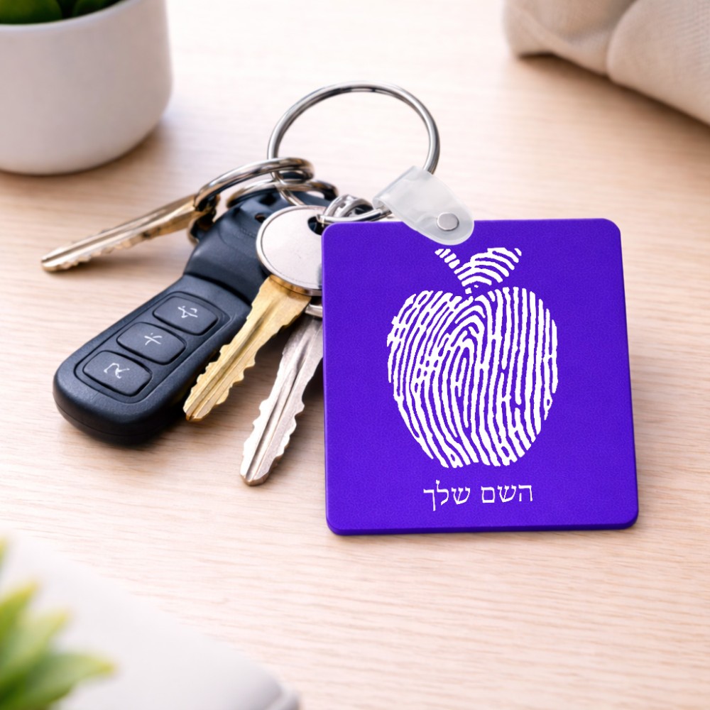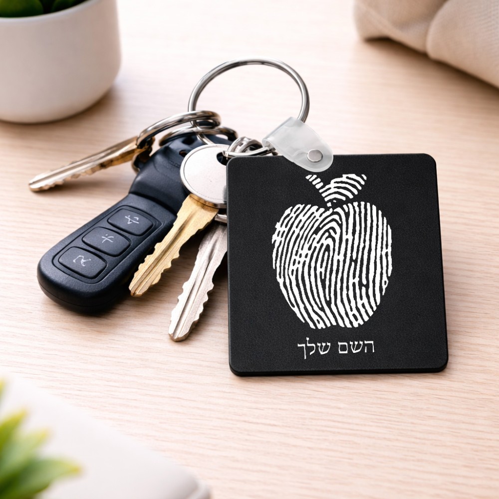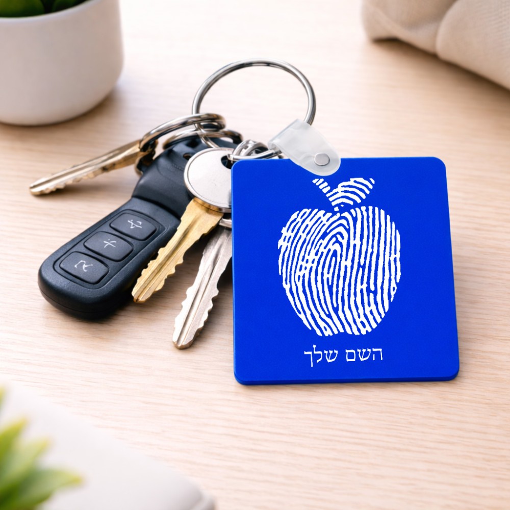 מחזיק מפתחות בצורת ריבוע בעיצוב אישי עם השם שלך בעיצוב הדפס תפוח גודל המחזיק 5 × 5 ס"מ. את השם המבוקש ניתן לציין בהזמנה, אם לא צויין אנחנו ניצור קשר לבירור.