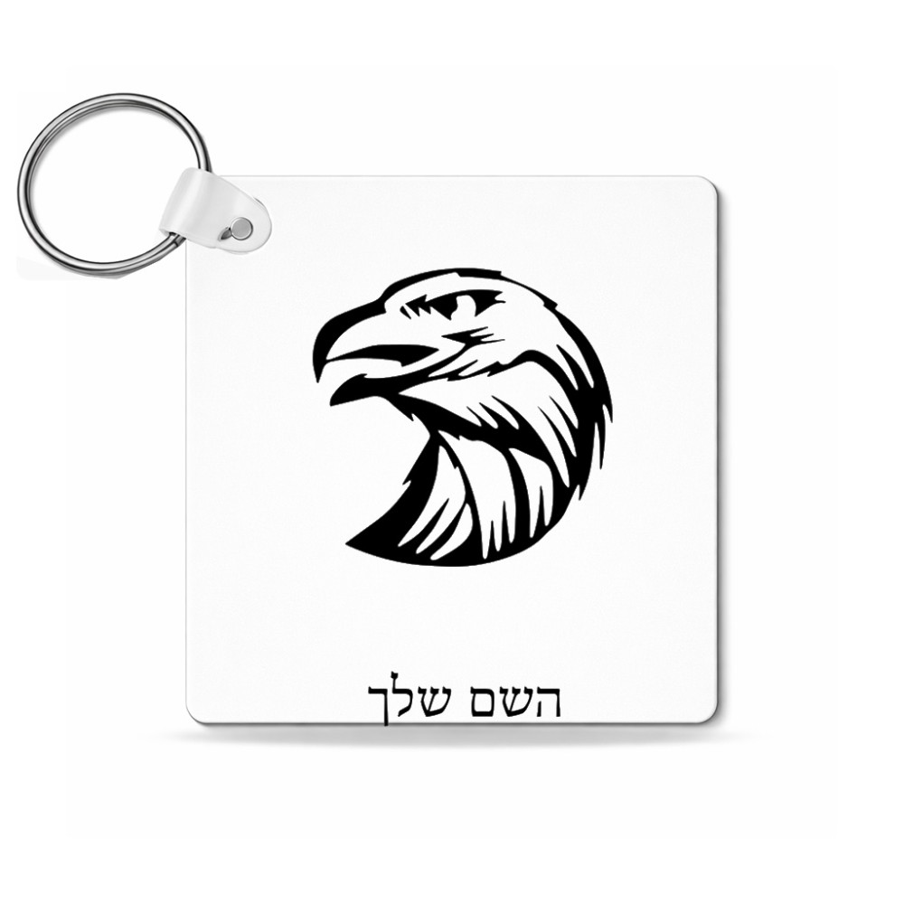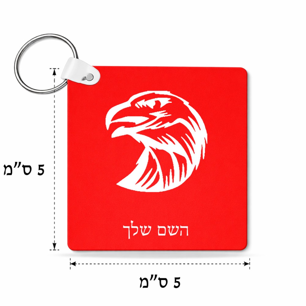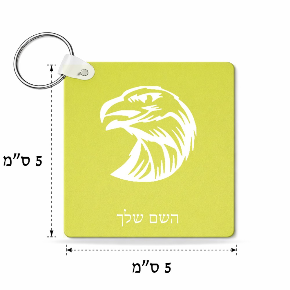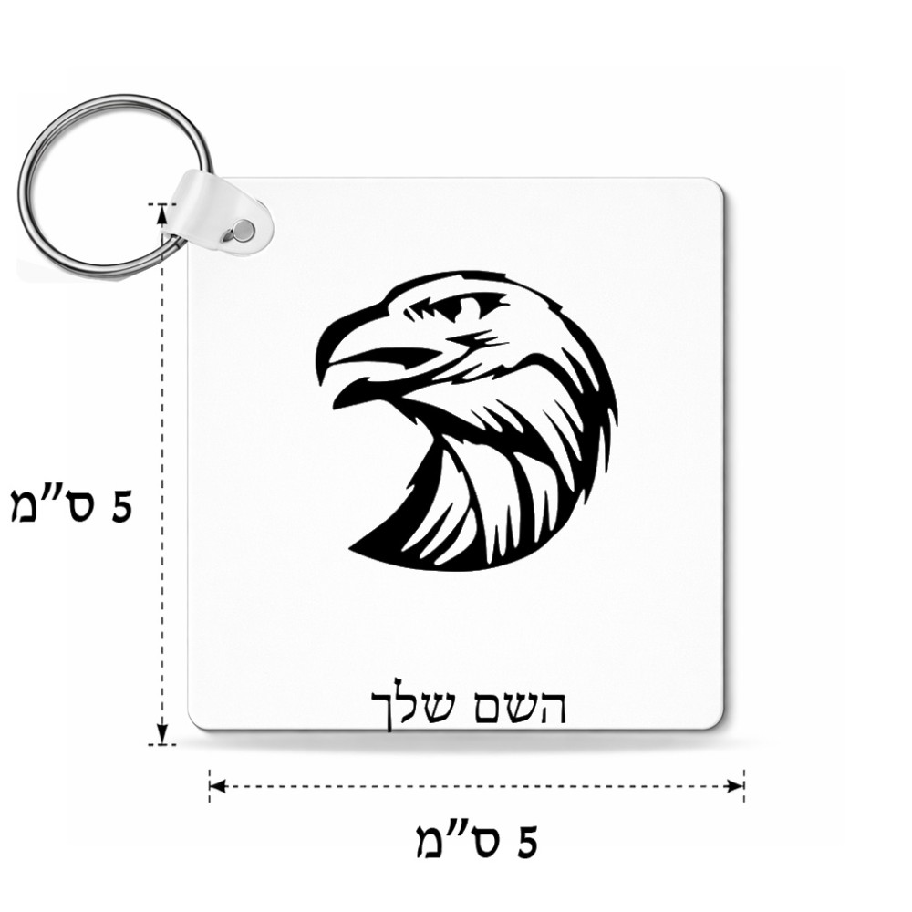מחזיק מפתחות בצורת ריבוע בעיצוב אישי עם השם שלך בעיצוב ראש נשר גודל המחזיק 5 × 5 ס"מ. את השם המבוקש ניתן לציין בהזמנה, אם לא צויין אנחנו ניצור קשר לבירור.