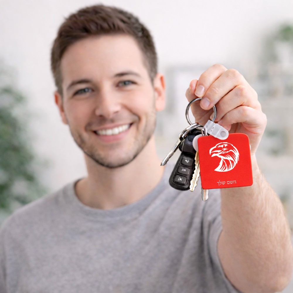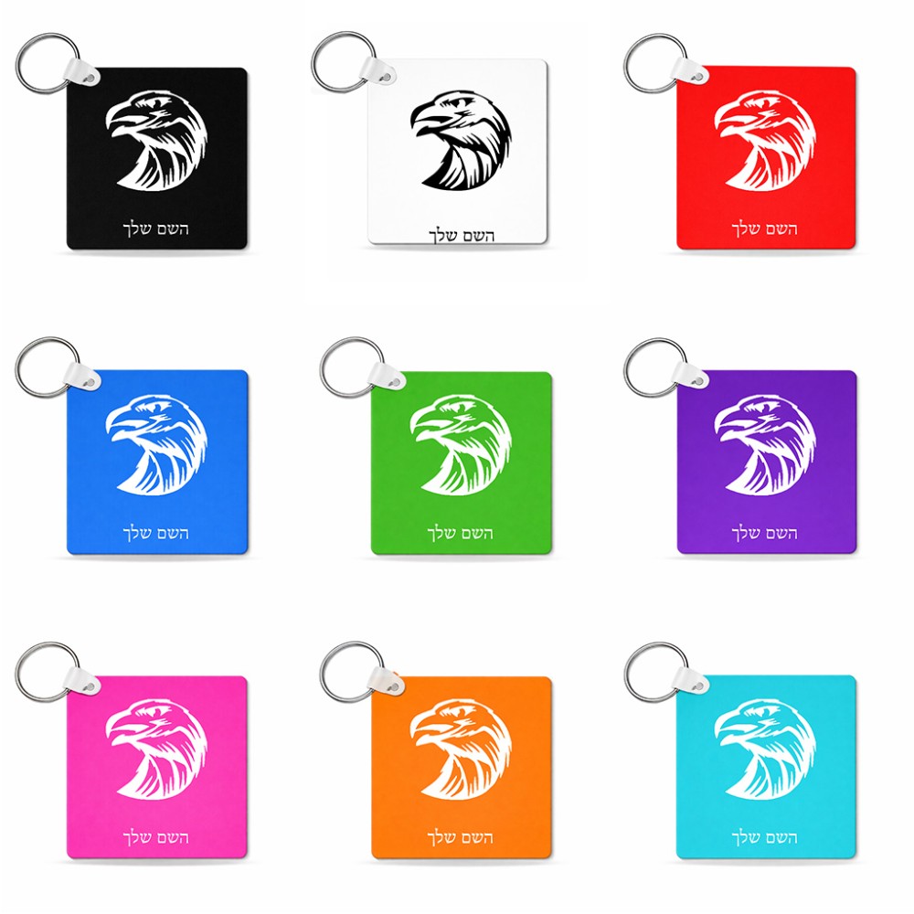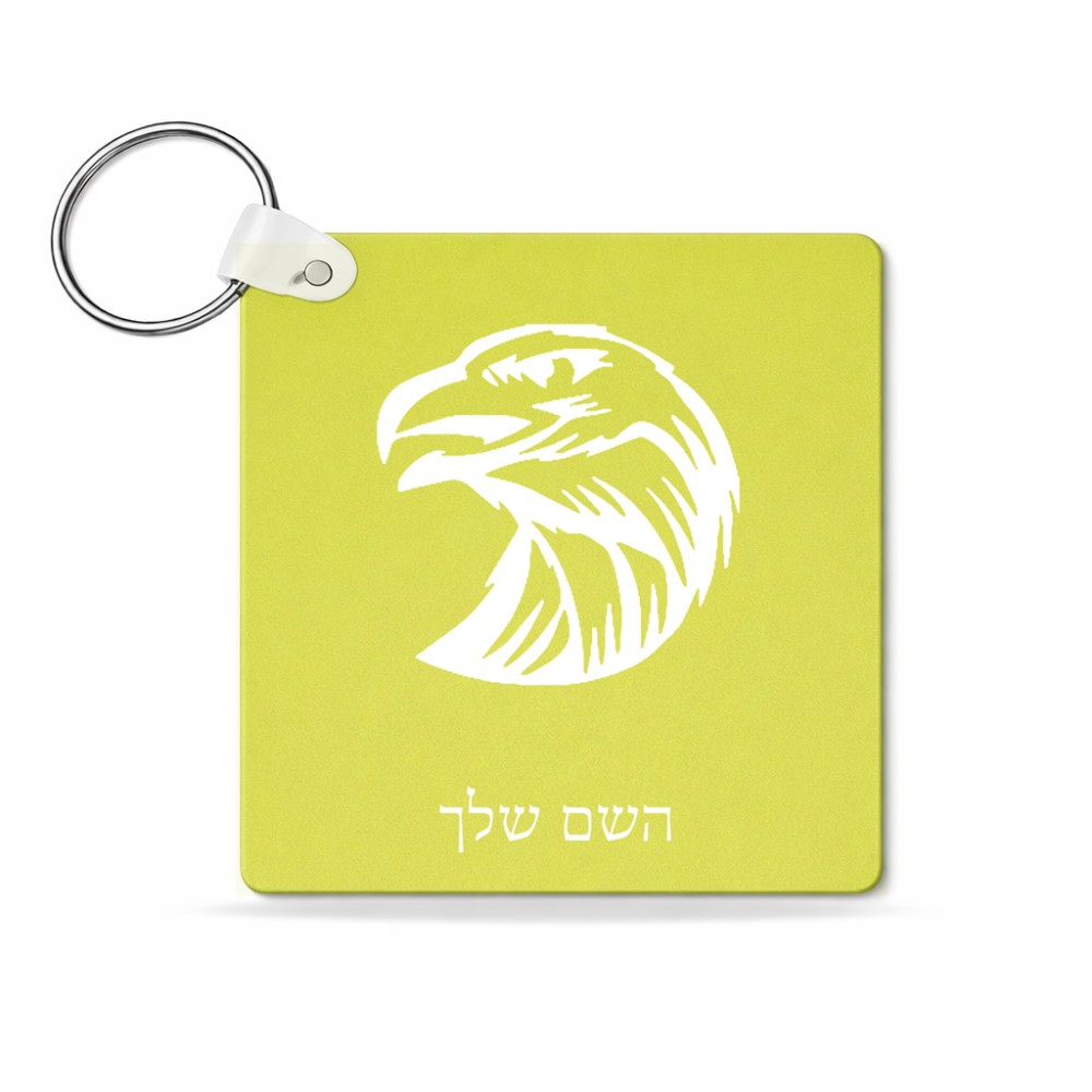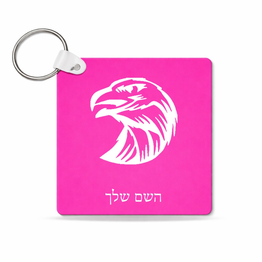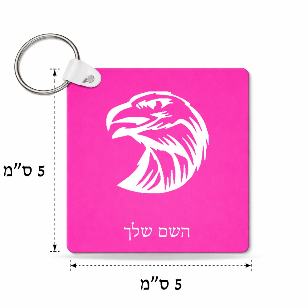 מחזיק מפתחות בצורת ריבוע בעיצוב אישי עם השם שלך בעיצוב ראש נשר גודל המחזיק 5 × 5 ס"מ. את השם המבוקש ניתן לציין בהזמנה, אם לא צויין אנחנו ניצור קשר לבירור.