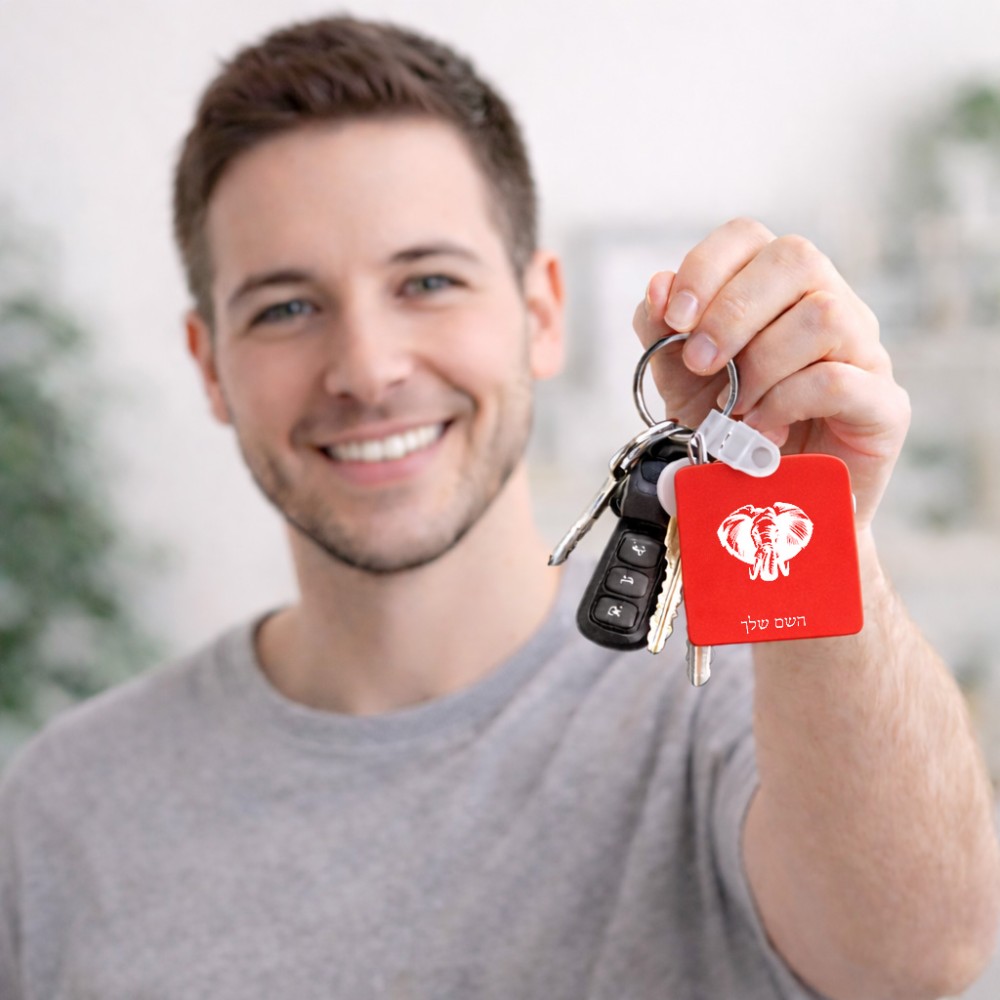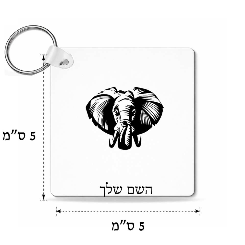 מחזיק מפתחות בצורת ריבוע בעיצוב אישי עם השם שלך בעיצוב ראש פיל גודל המחזיק 5 × 5 ס"מ. את השם המבוקש ניתן לציין בהזמנה, אם לא צויין אנחנו ניצור קשר לבירור.