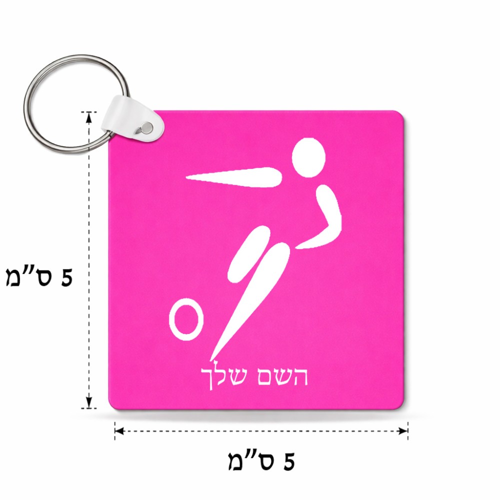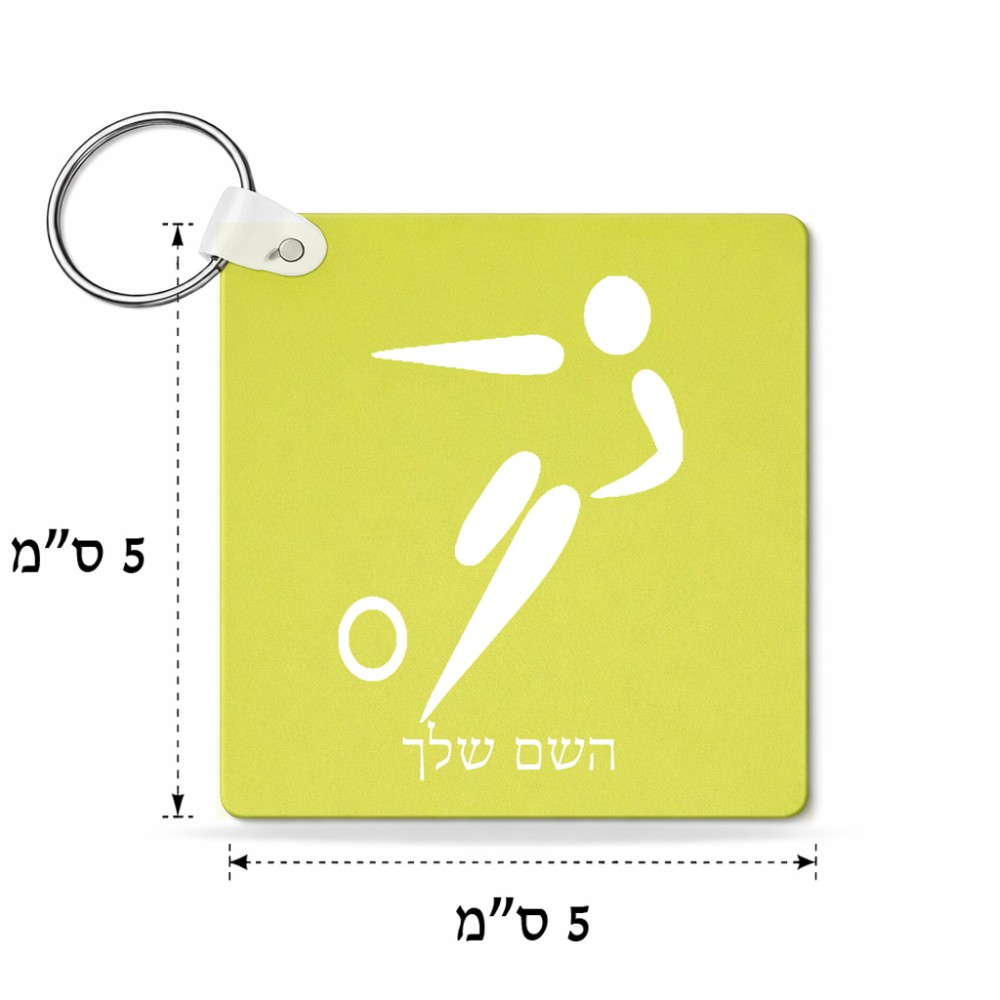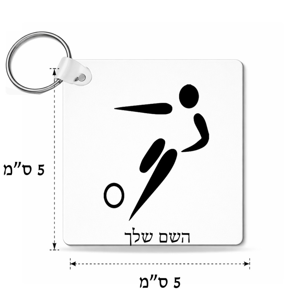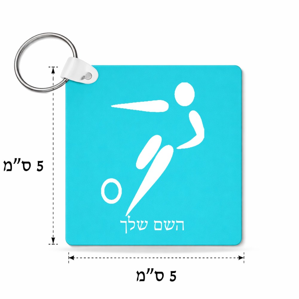 מחזיק מפתחות בצורת ריבוע בעיצוב אישי עם השם שלך בעיצוב כדורגל אולימפי גודל המחזיק 5 × 5 ס"מ