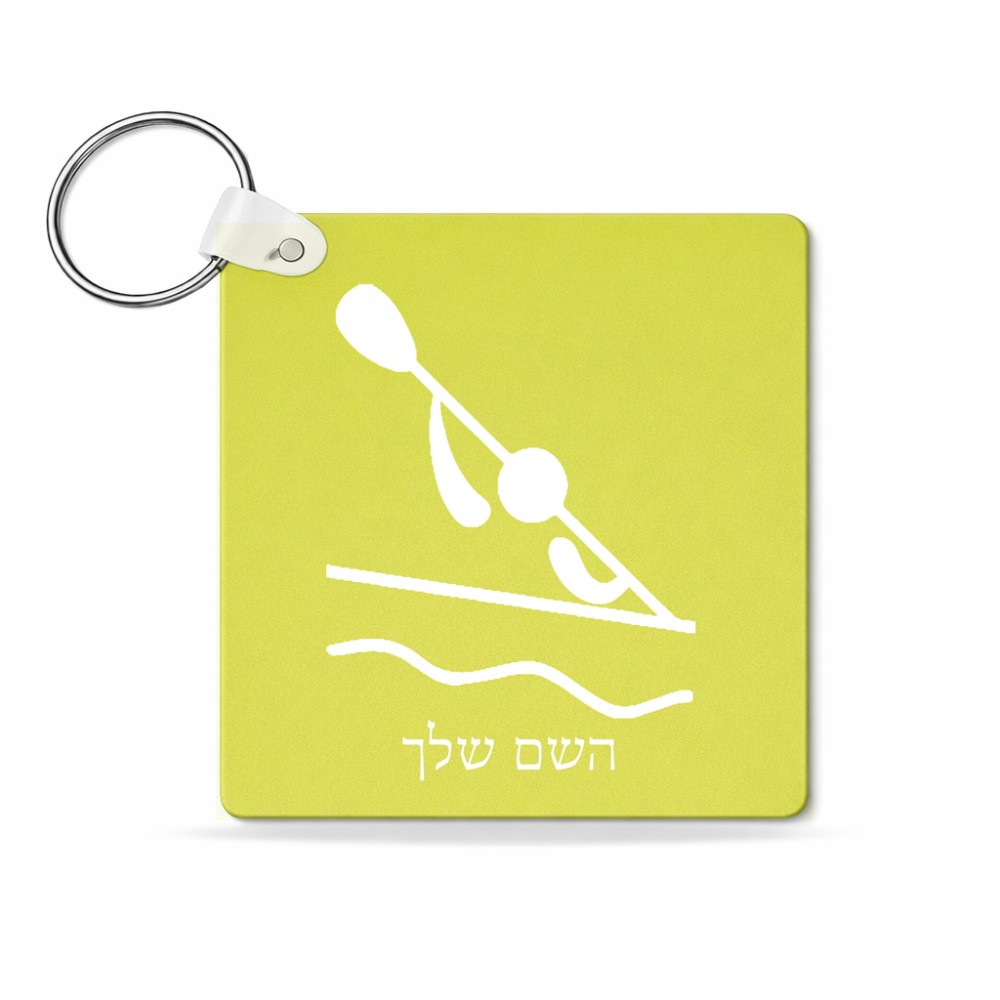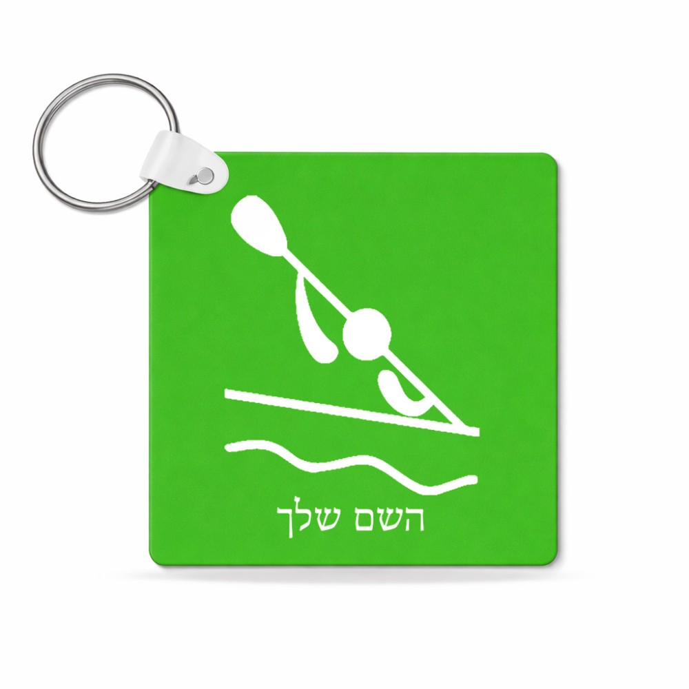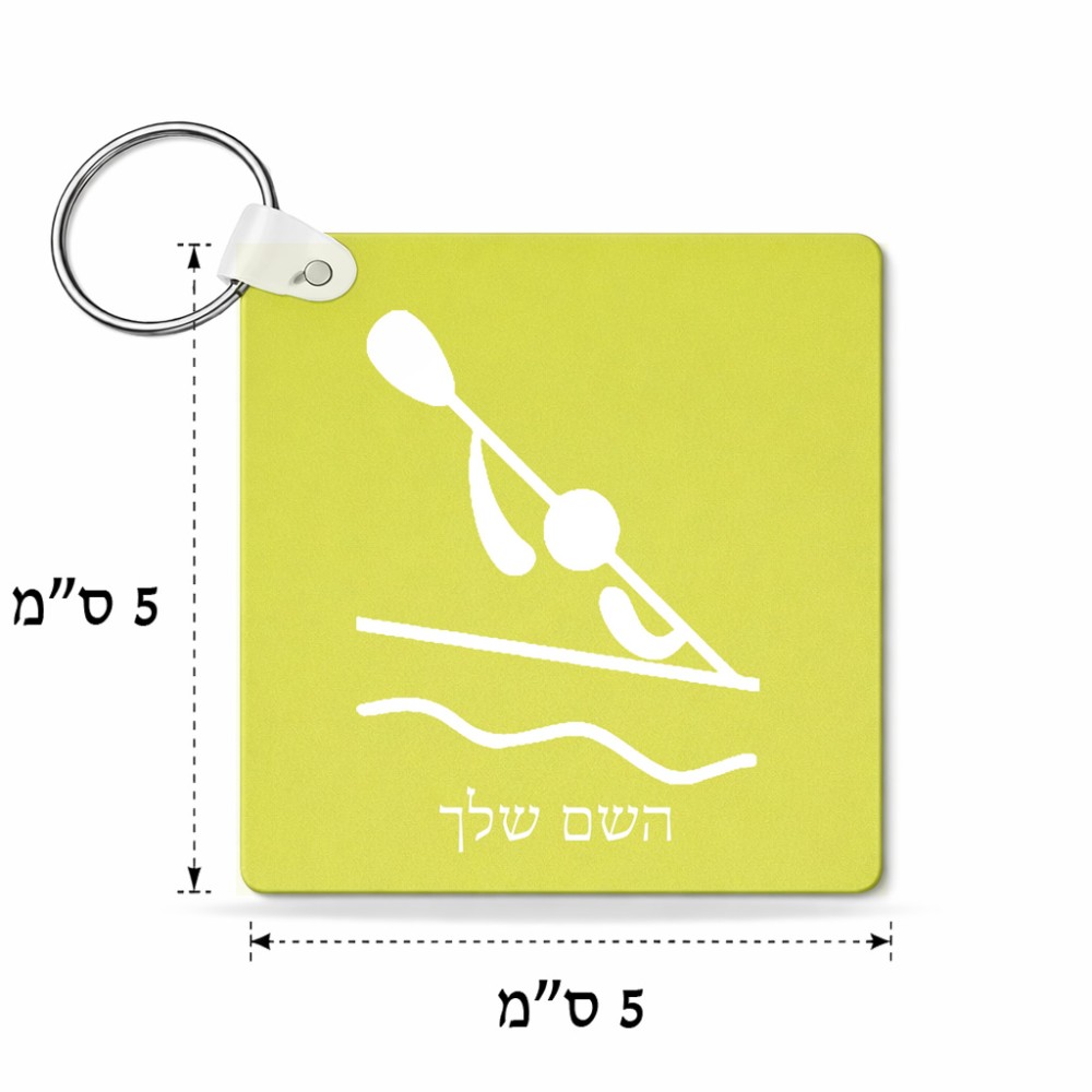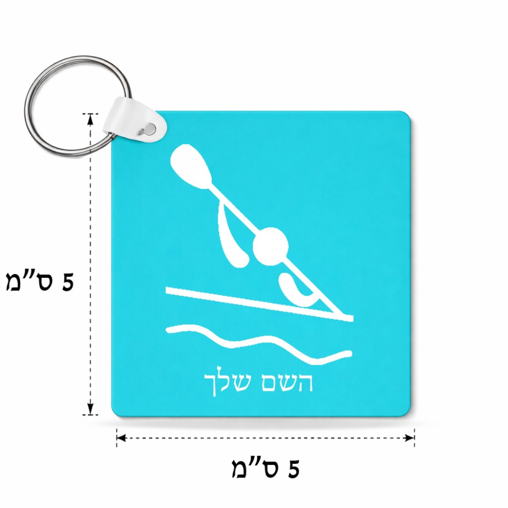מחזיק מפתחות בצורת ריבוע בעיצוב אישי עם השם שלך בעיצוב קיאק אולימפי גודל המחזיק 5 × 5 ס"מ. את השם המבוקש ניתן לציין בהזמנה, אם לא צויין אנחנו ניצור קשר לבירור.