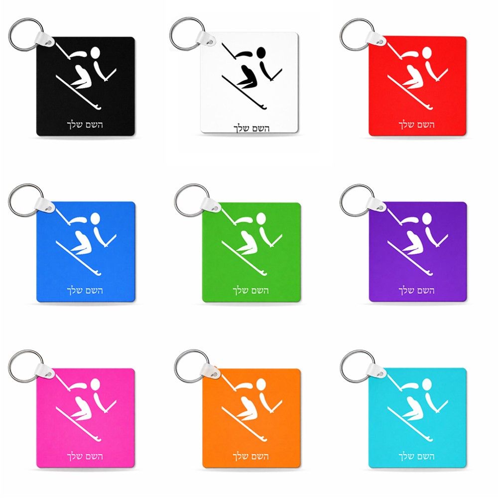 מחזיק מפתחות בצורת ריבוע בעיצוב אישי עם השם שלך בעיצוב סקי אולימפי גודל המחזיק 5 × 5 ס"מ. את השם המבוקש ניתן לציין בהזמנה, אם לא צויין אנחנו ניצור קשר לבירור.