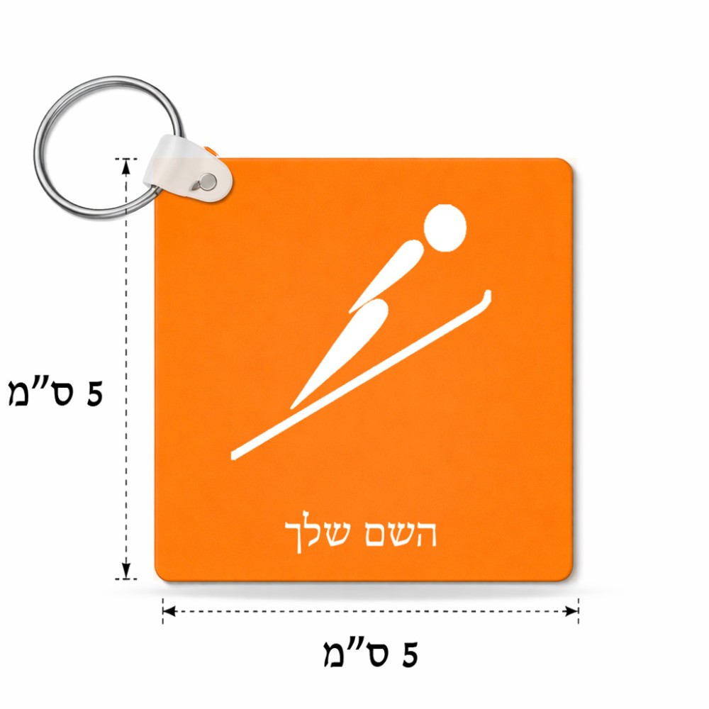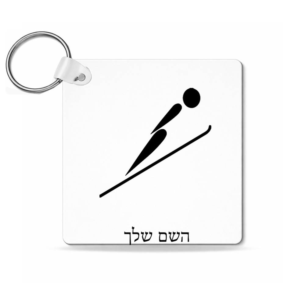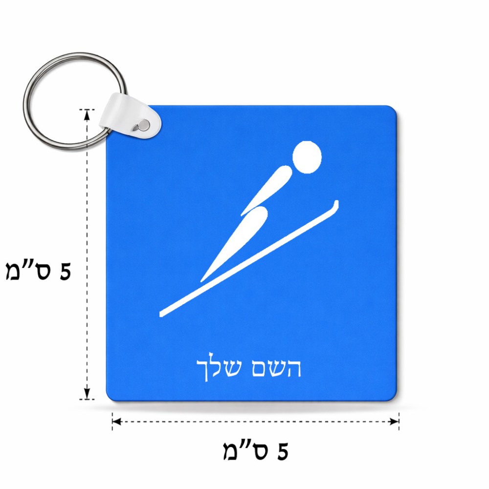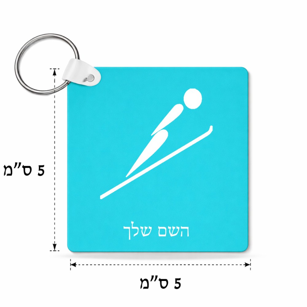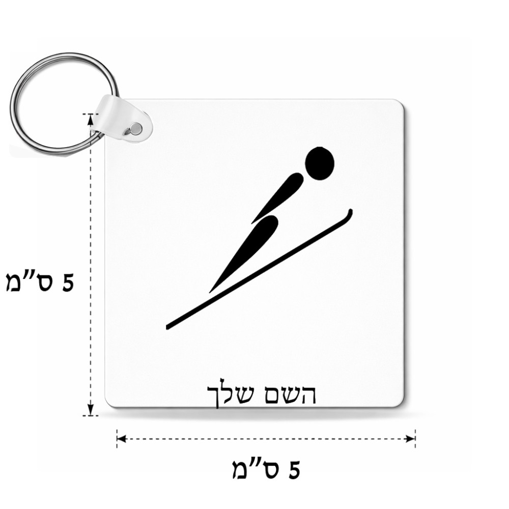 מחזיק מפתחות בצורת ריבוע בעיצוב אישי עם השם שלך בעיצוב קפיצת סקי אולימפית גודל המחזיק 5 × 5 ס"מ. את השם המבוקש ניתן לציין בהזמנה, אם לא צויין אנחנו ניצור קשר לבירור.